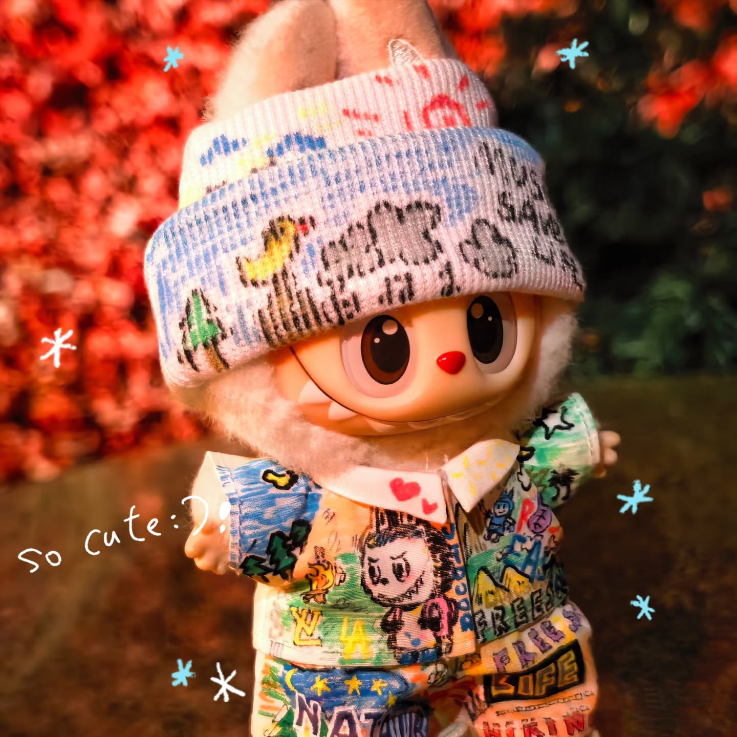 お出かけ注目率抜群!おしゃれ着こなしセット♥ 15-17cm labubu ラブブ デザイナーオリジナル グラフィティ衣装セット 一点物 お出かけ 注目 キュートでクール おしゃれ フィギュア服