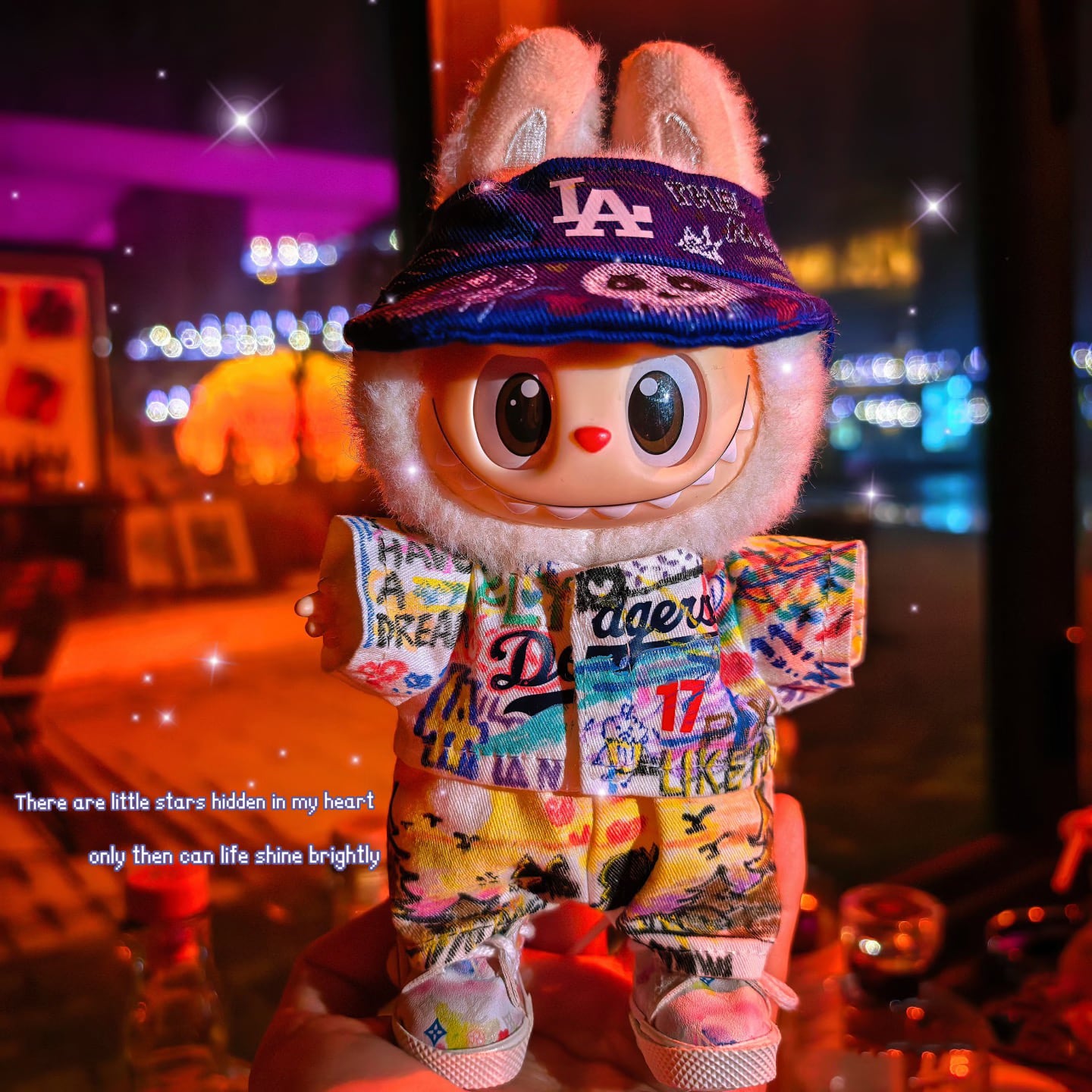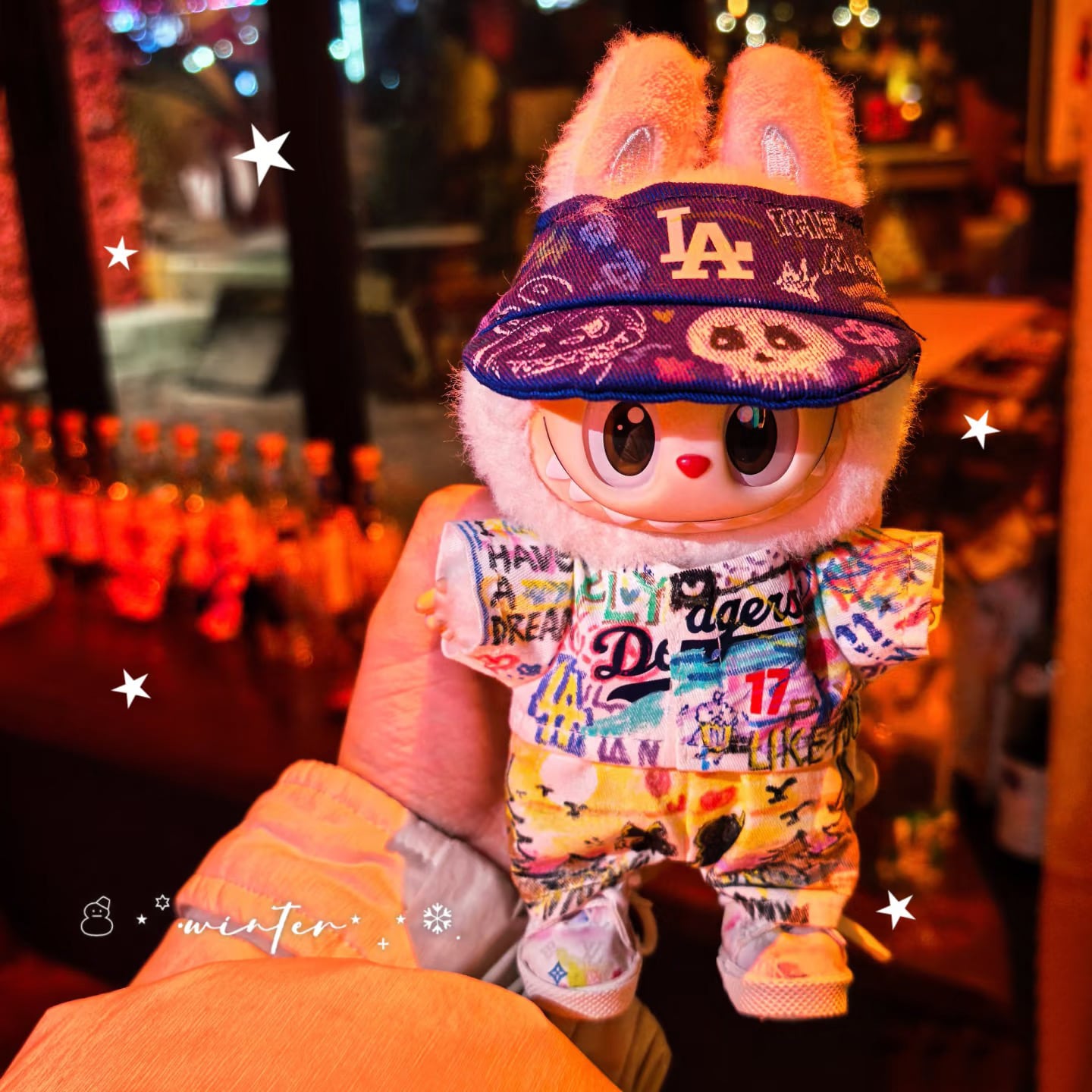 手描きベースボールテーマ labubu ラブブ専用コンプリートコスチューム (15-17cm) クールで可愛い一点物 職人仕上げの高品質