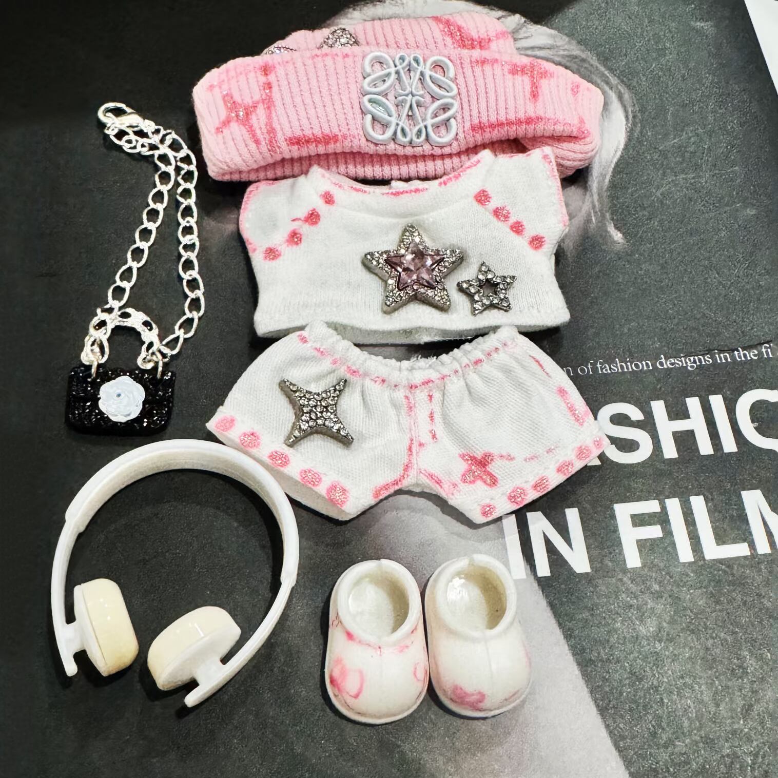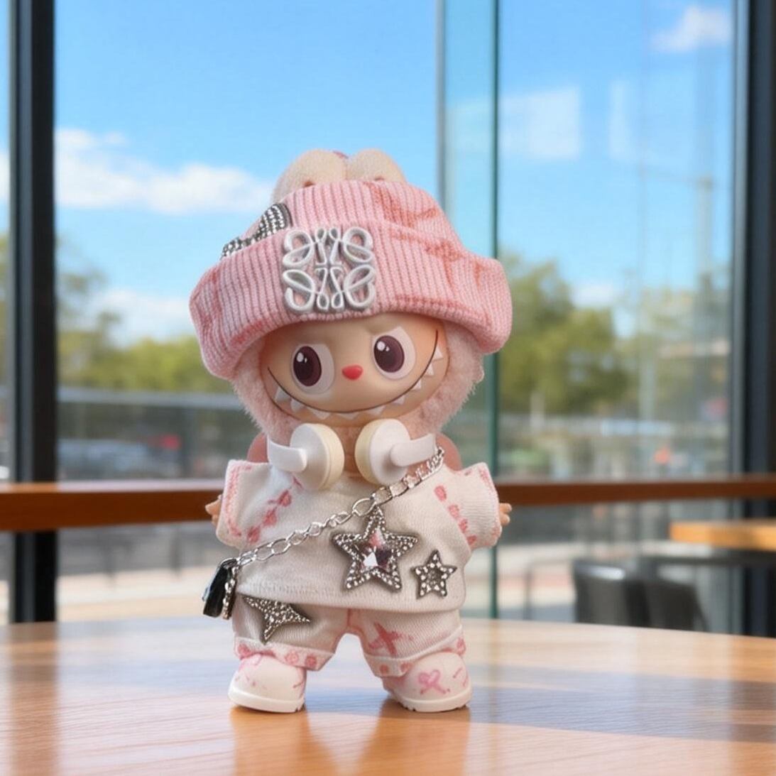 とびきり可愛いスタイル!おしゃれ ピンク×ホワイト スターコーデ labubu ラブブ4.0用 10cm 6点完全セット キュート the monsters 4.0