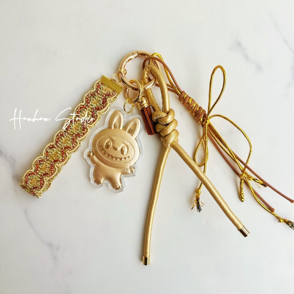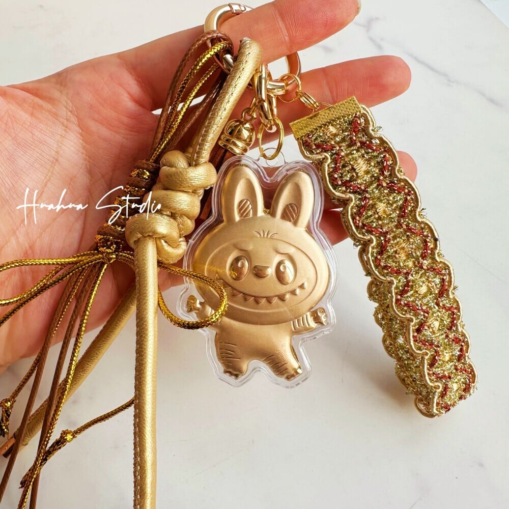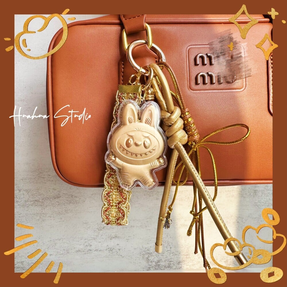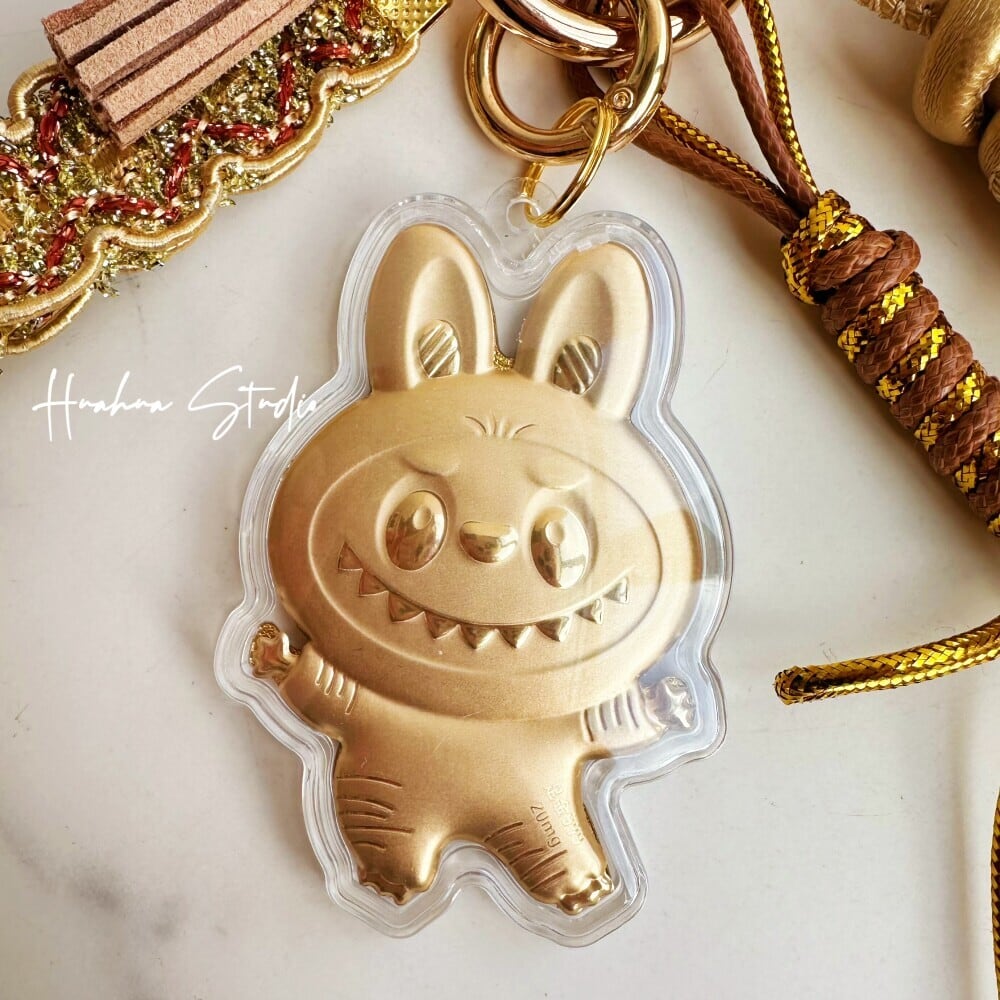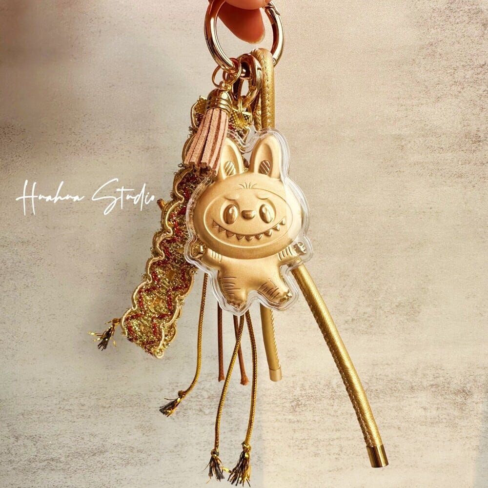 24K金製 20mg 新年限定「Labubu幸運キーホルダー」- 財運をもたらすデザイン|携帯ストラップ・バッグチャーム・車内アクセサリーに 高級感 ラブブ