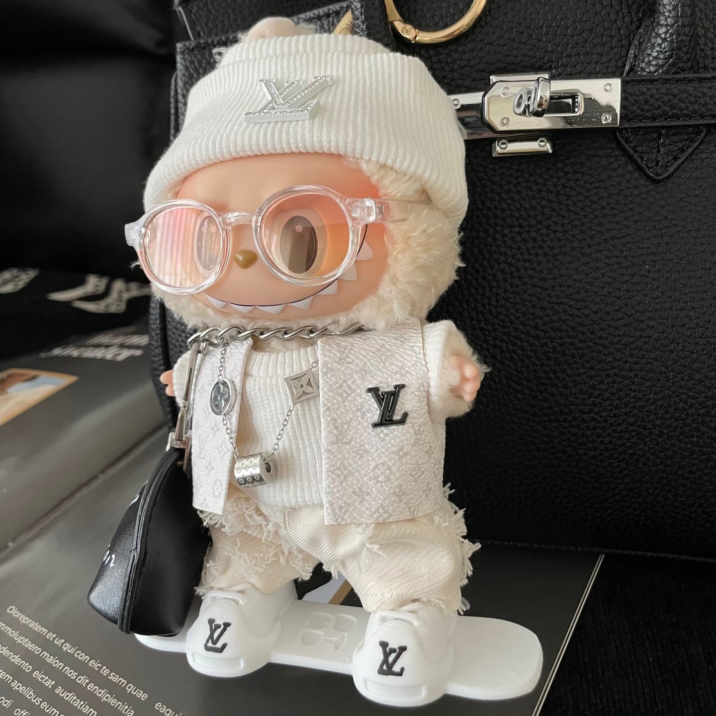 プレミアムモノクロセット!上質な8点フルコーデ♥ Labubu 15-17cm プレミアムセット 高級感のある白黒デザイン モノクロ こだわりの品質 人形服 ドール服 おしゃれな