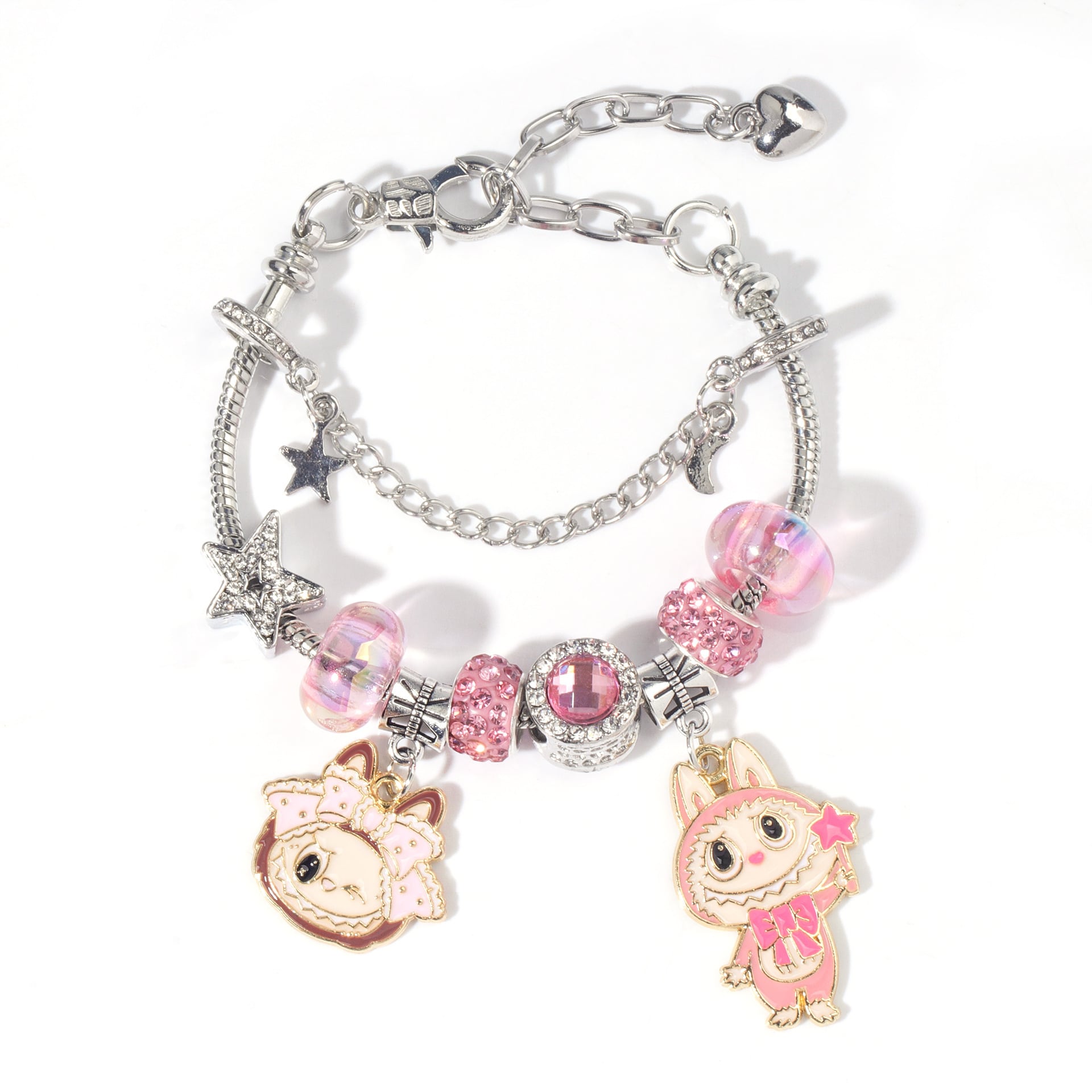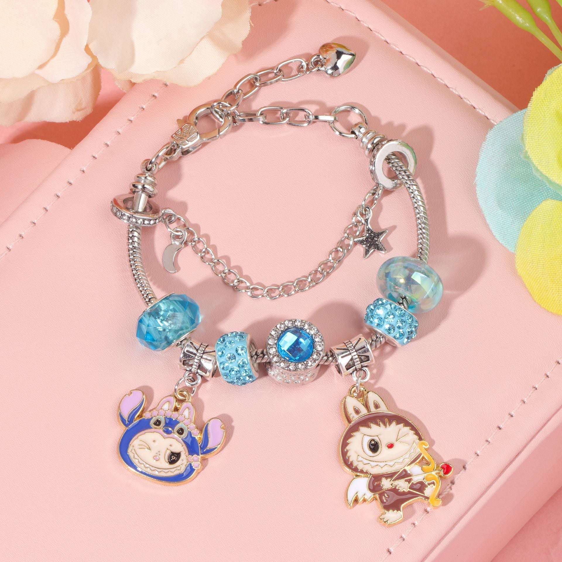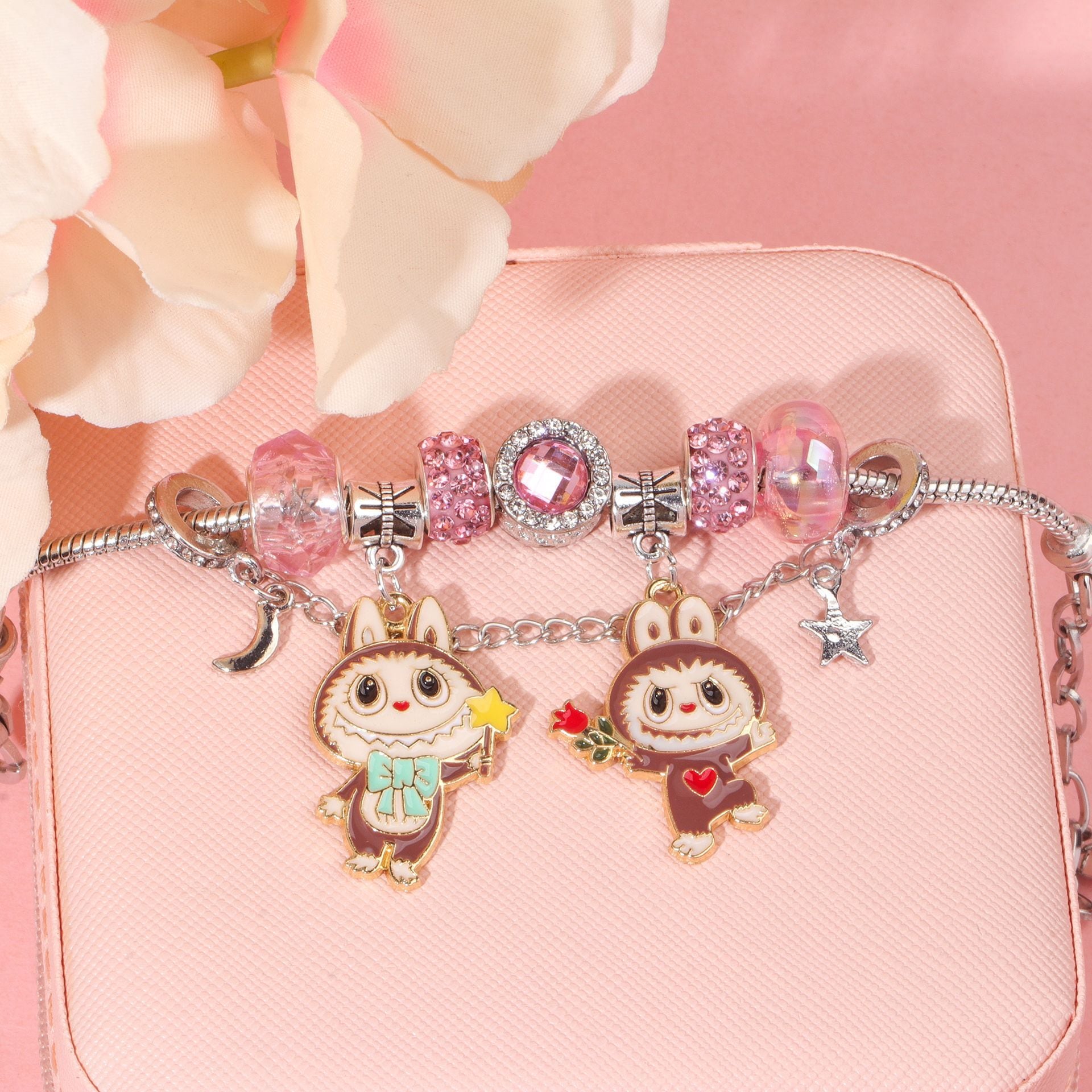 かわいいLabubuビーズブレスレット!サイズ調整可能でぴったりフィット♪ 16-21cm対応 可愛い 合金チャーム 女性用 アクセサリー 親友や彼女へのプレゼントに最適な一品