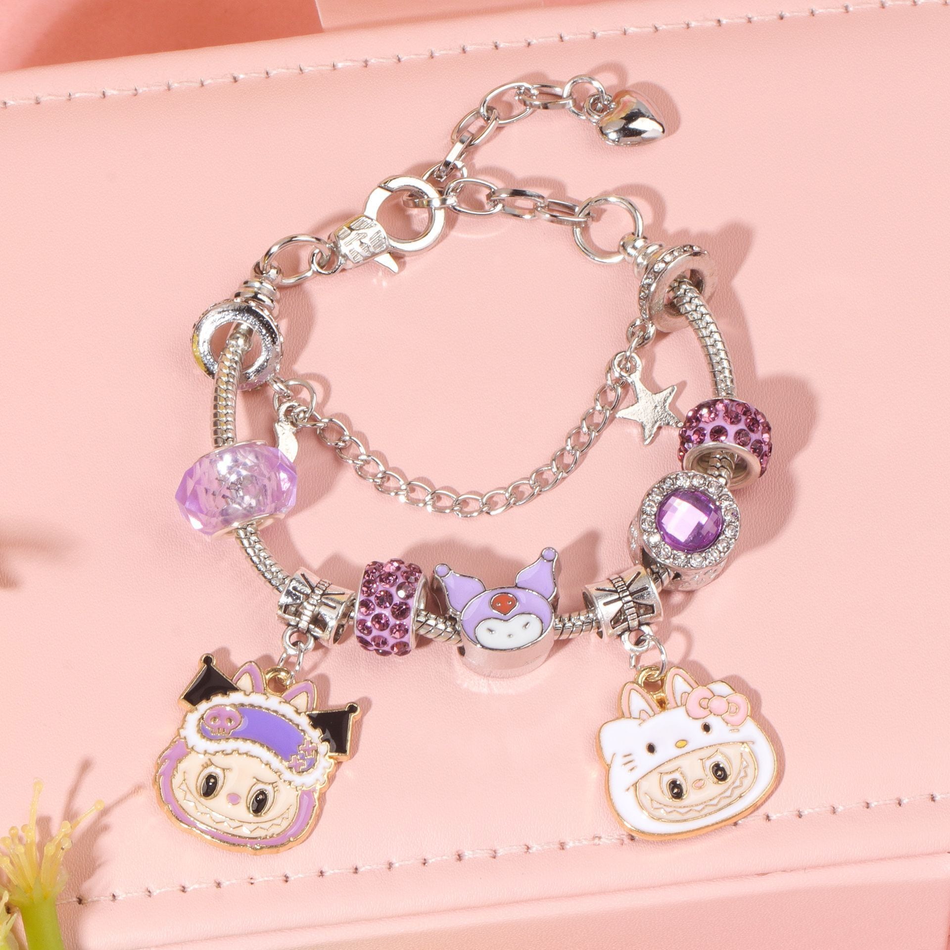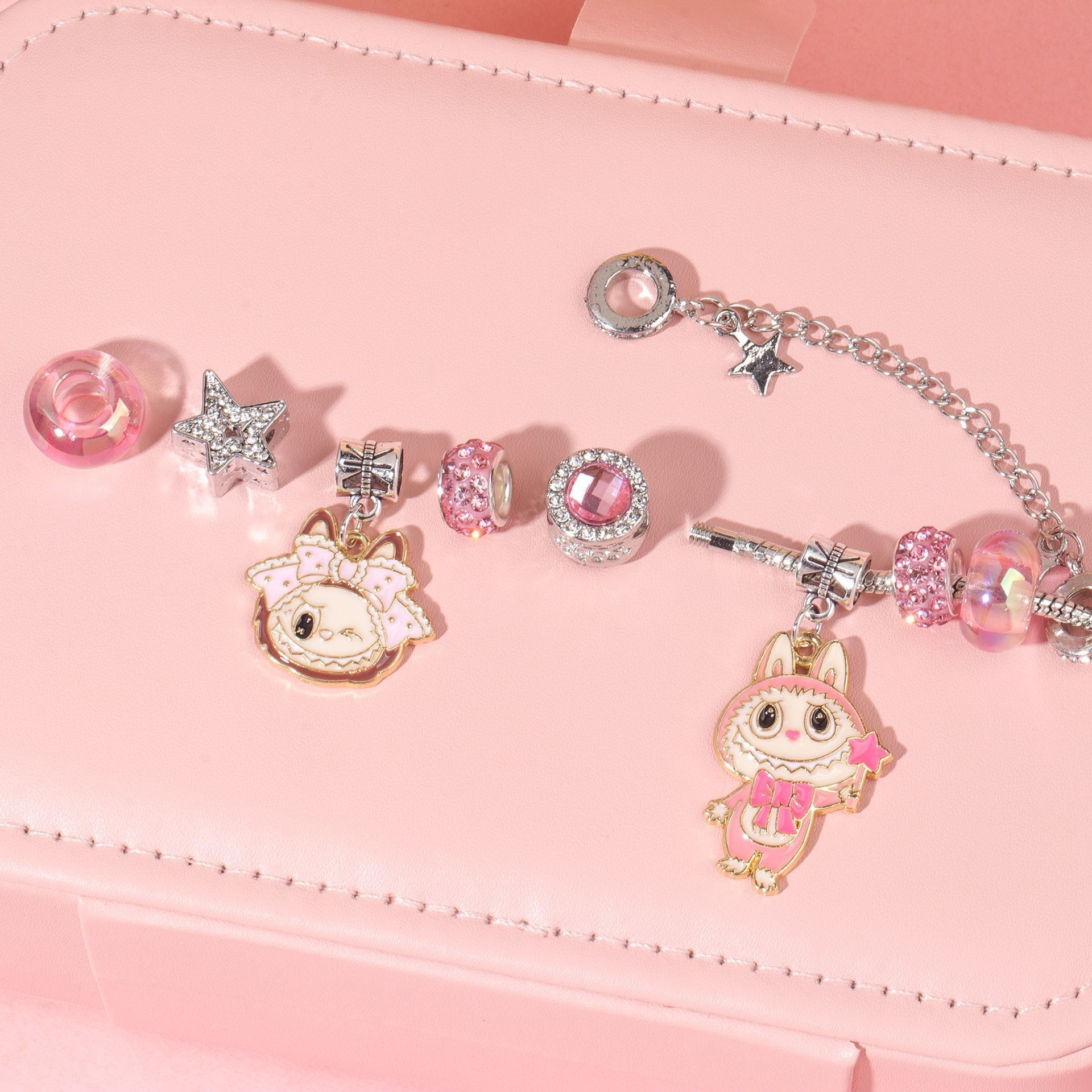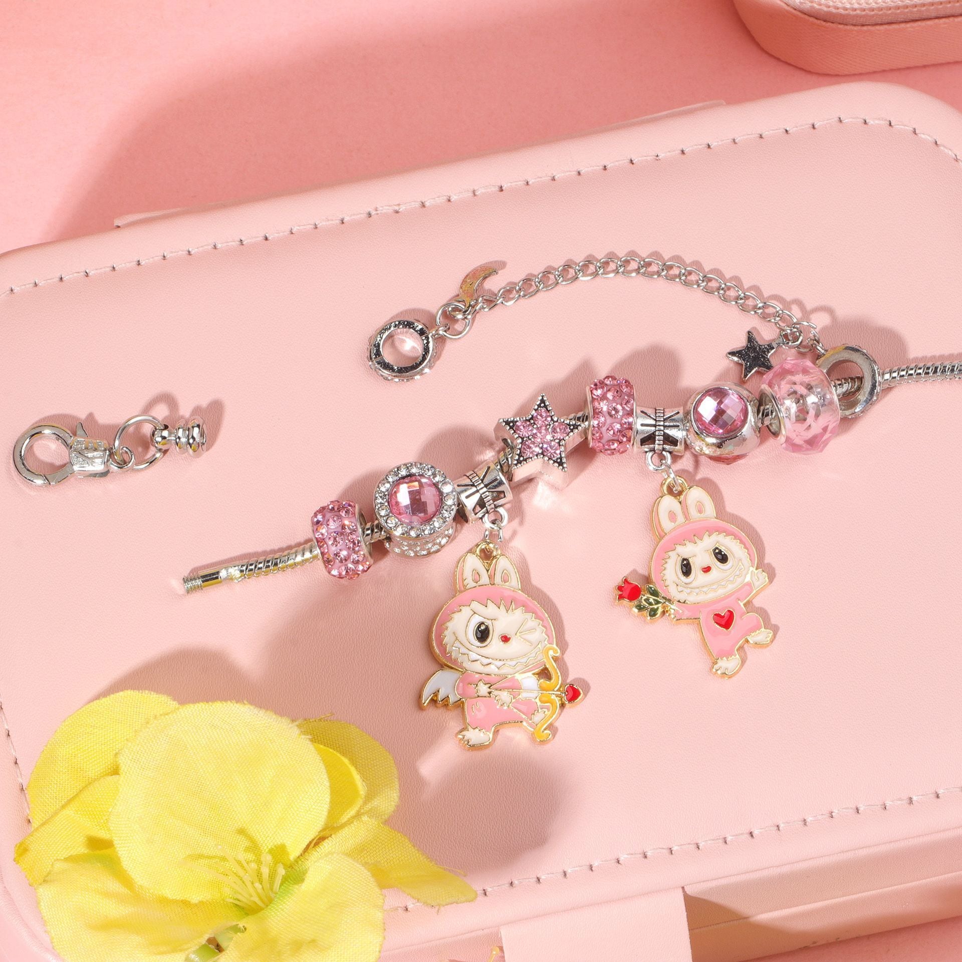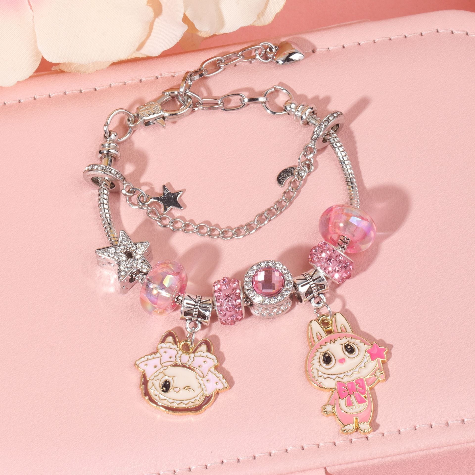 かわいいLabubuビーズブレスレット!サイズ調整可能でぴったりフィット♪ 16-21cm対応 可愛い 合金チャーム 女性用 アクセサリー 親友や彼女へのプレゼントに最適な一品