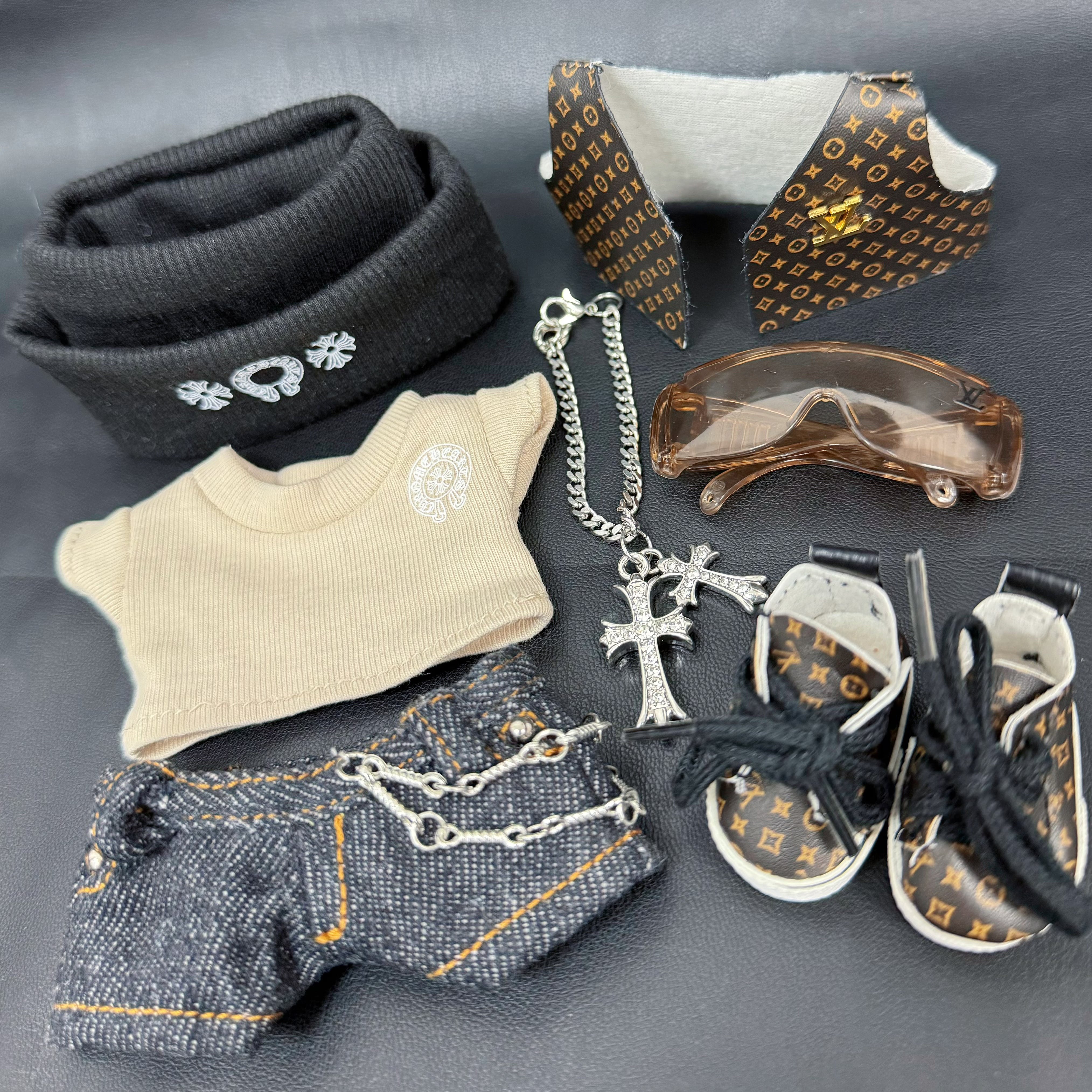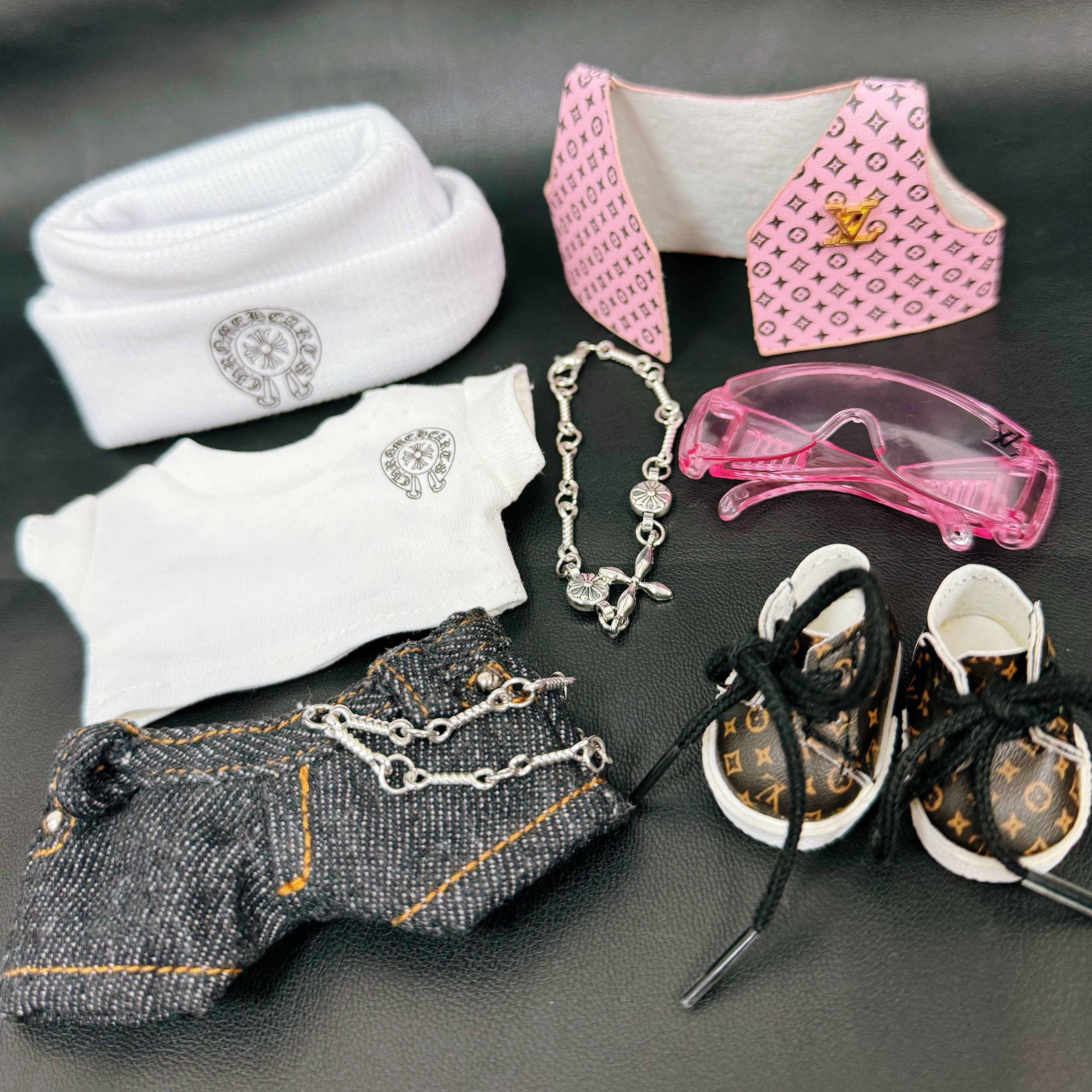 ネックレス&チェーン付き!クールで可愛い ファッションセット♥ハイエンド7点 Labubu ラブブ 15-17cm 用 オシャレで可愛い コーディネートセット 高品質 the monsters1.0 2.0 3.0