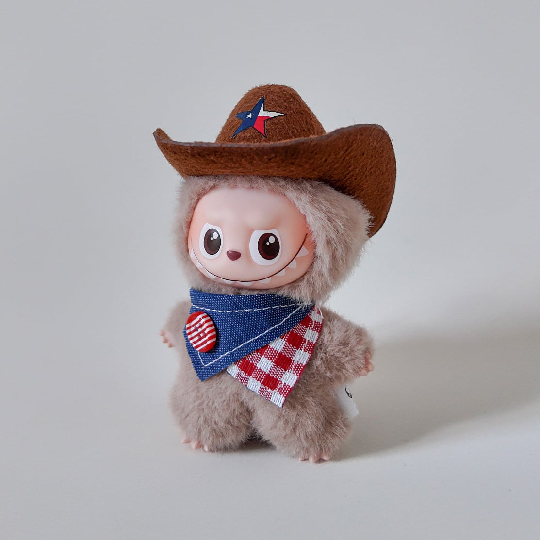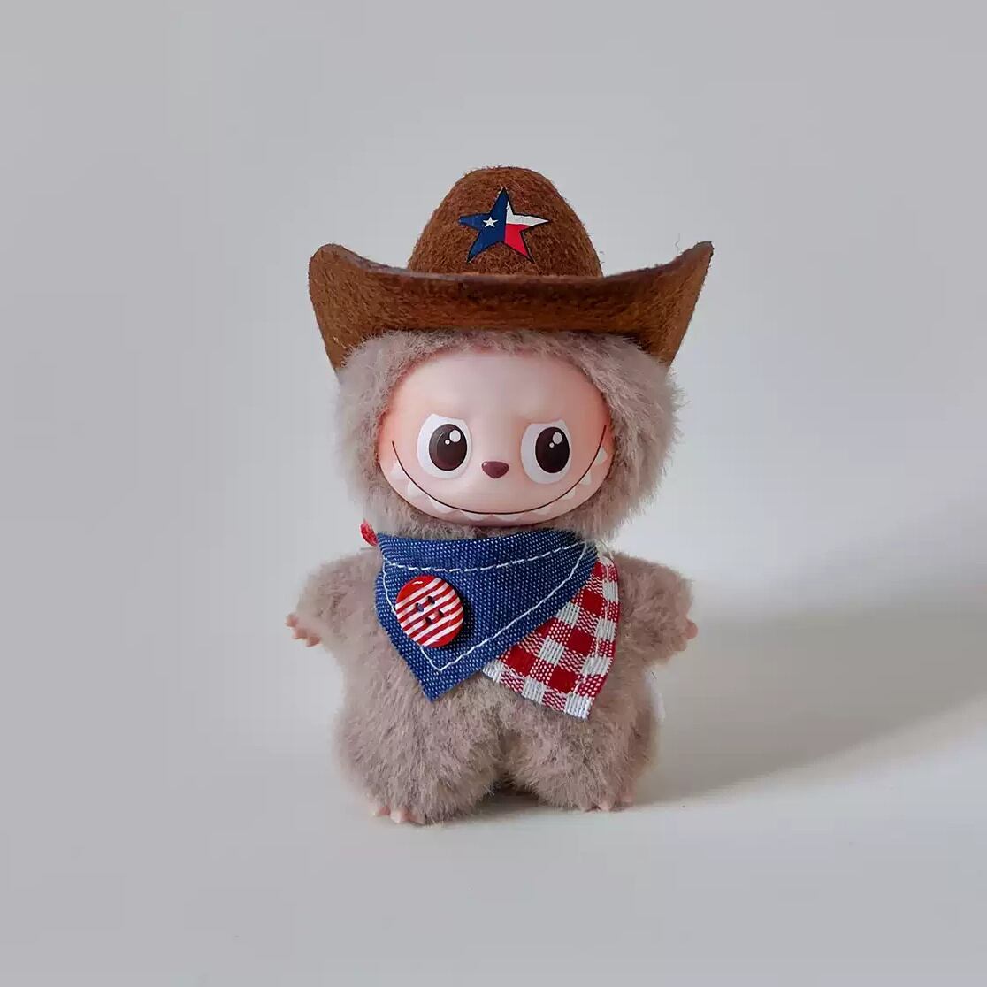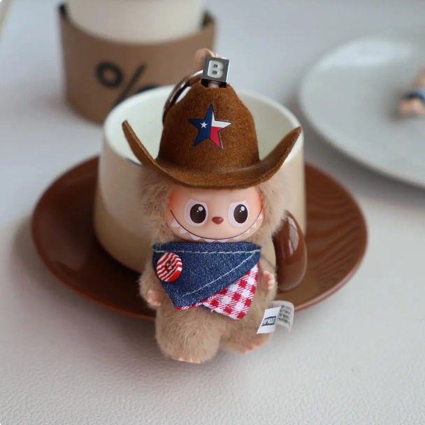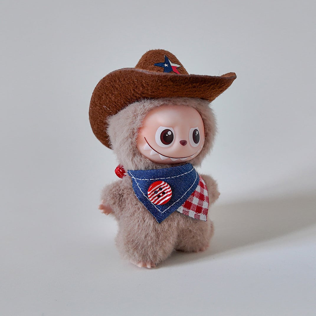 こだわりの手作りデニムハットが決め手!labubu ラブブ4.0用 上質なウェスタンコスチュームセット 10cm 細部まで可愛い仕上げ