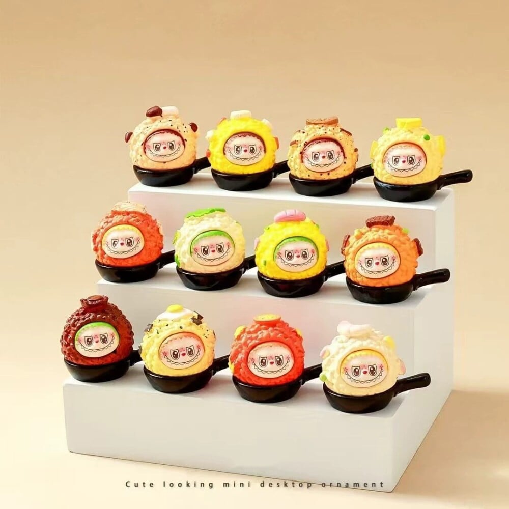 12個セット!食欲をそそる可愛さ!デスクやお店を楽しく飾る♡ Labubuのチャーハンとパイナップルライス デックス・車載 可愛い 食品サンプル風 置き物