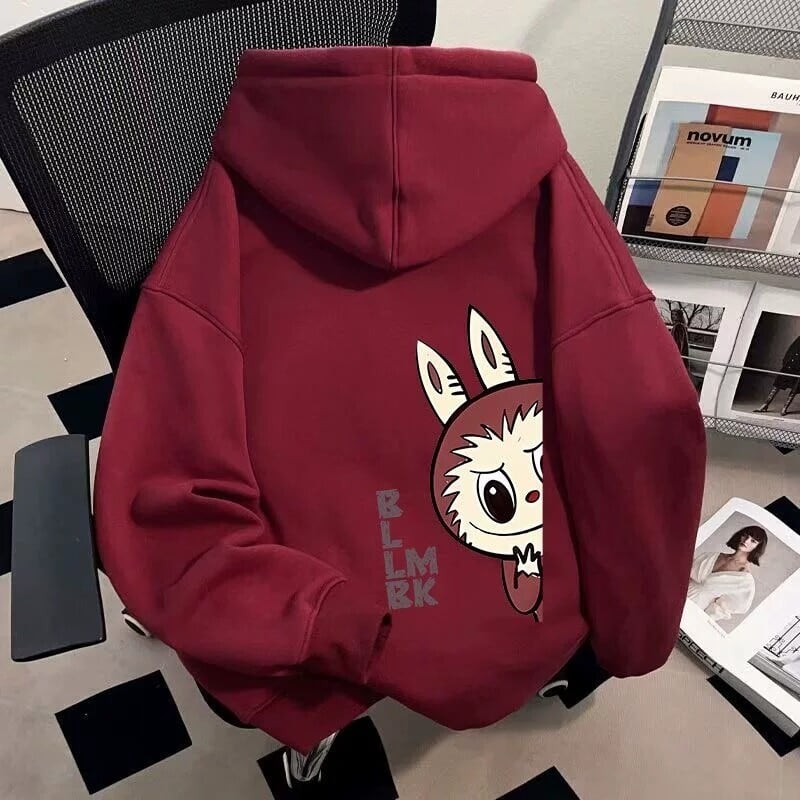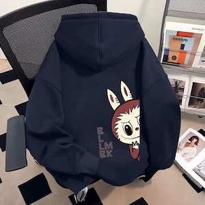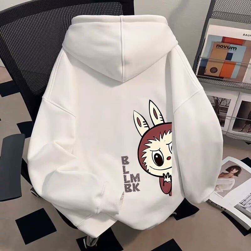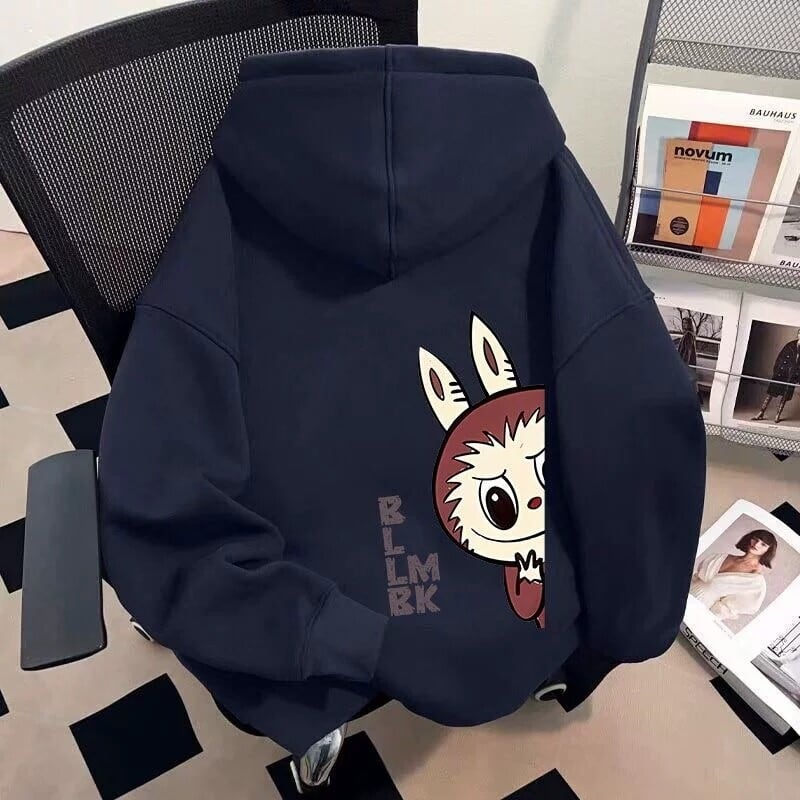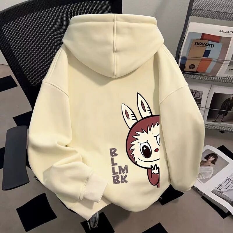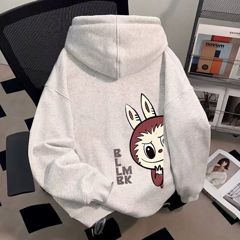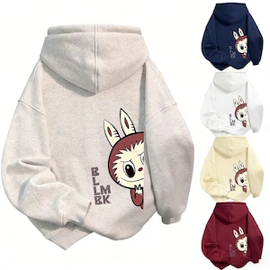 カップルで揃えよう!薄手/裏起毛も選べる♡ 男女兼用 LABUBU ラブブ プリント パーカー 秋冬 ゆったり ストリート ウエア S-4L カップル おしゃれ 可愛い