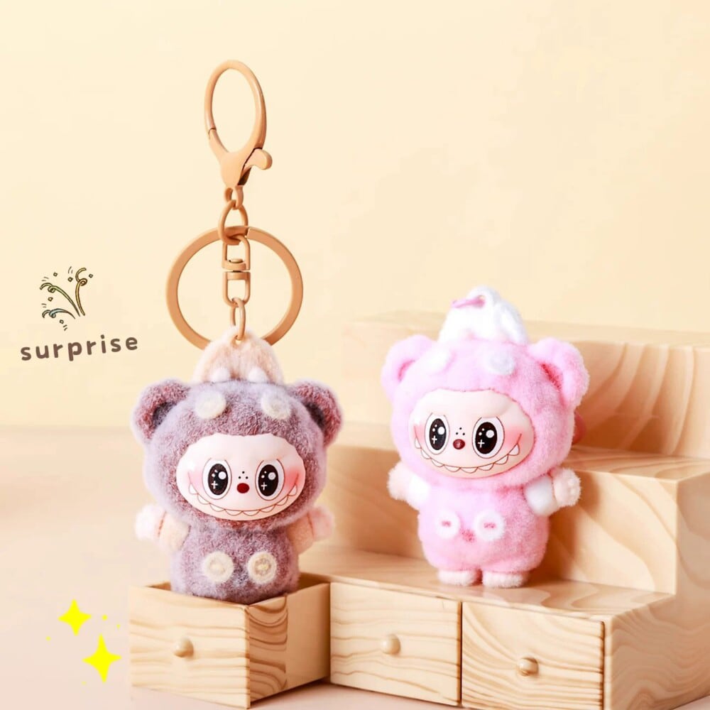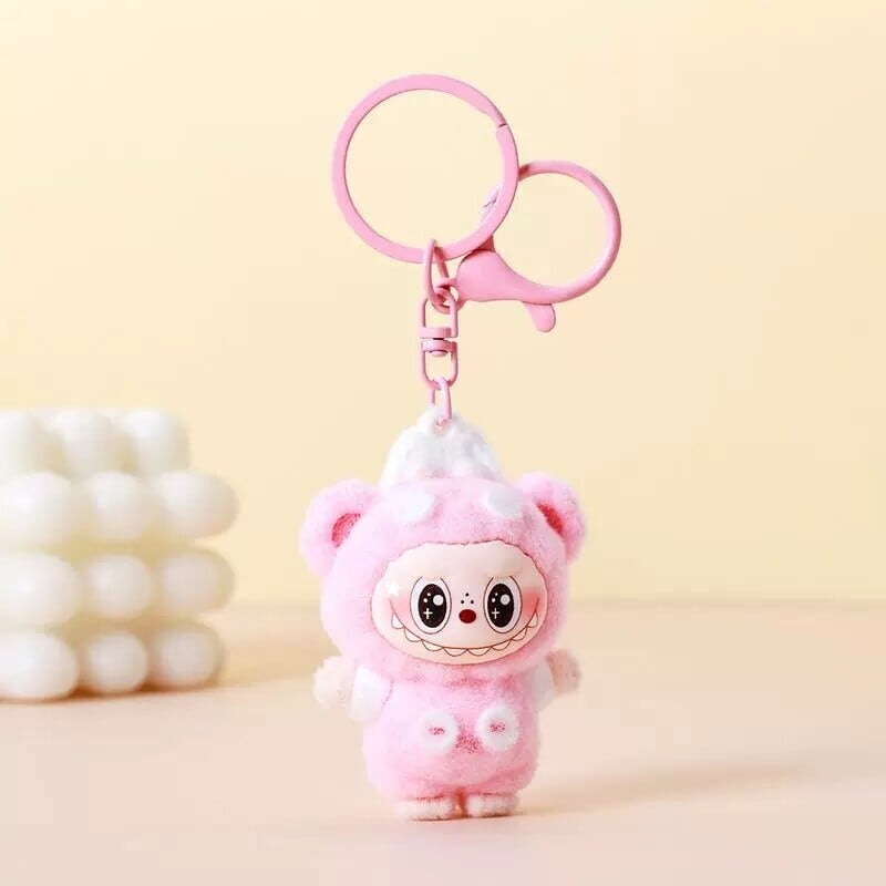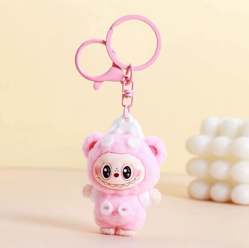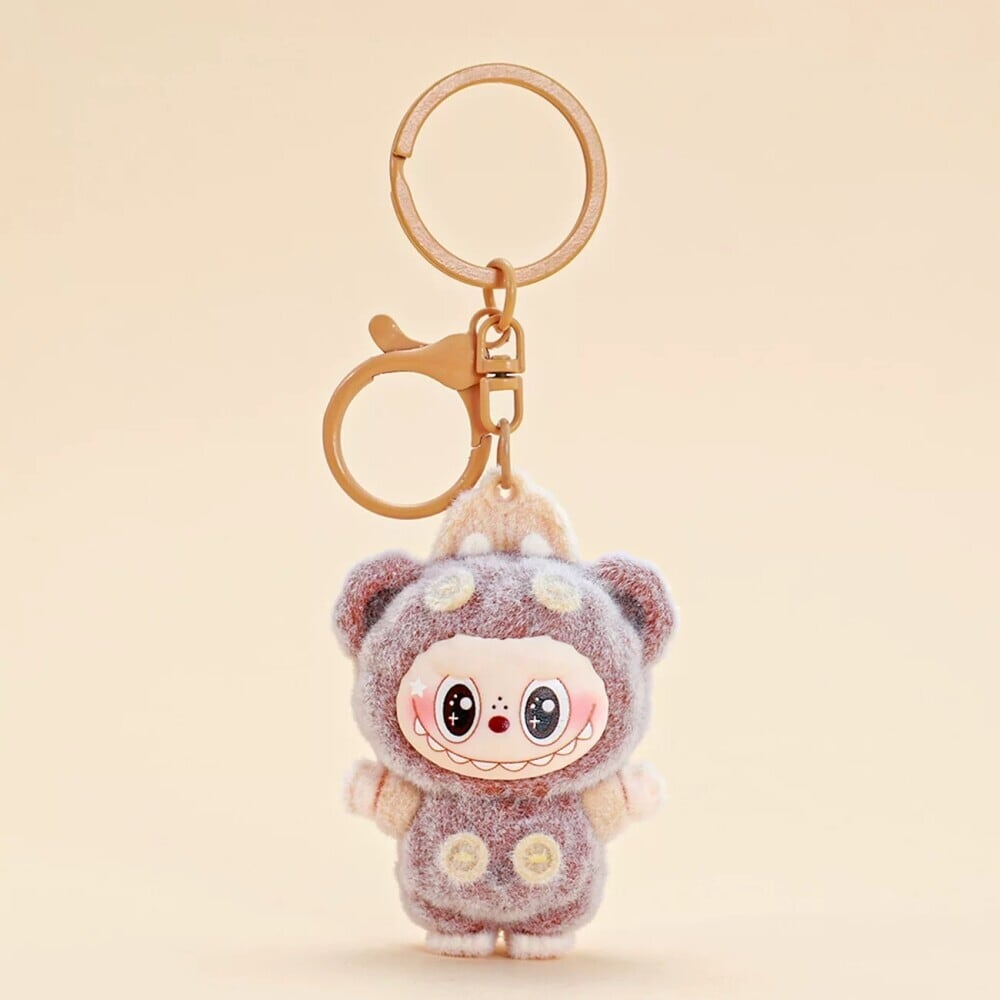 もちもち癒し系!めちゃ萌え♥ labubu ラブブ 可愛い バッグチャーム キーホルダー くま オーバーオールデザイン ギフトに カップル・親友へ