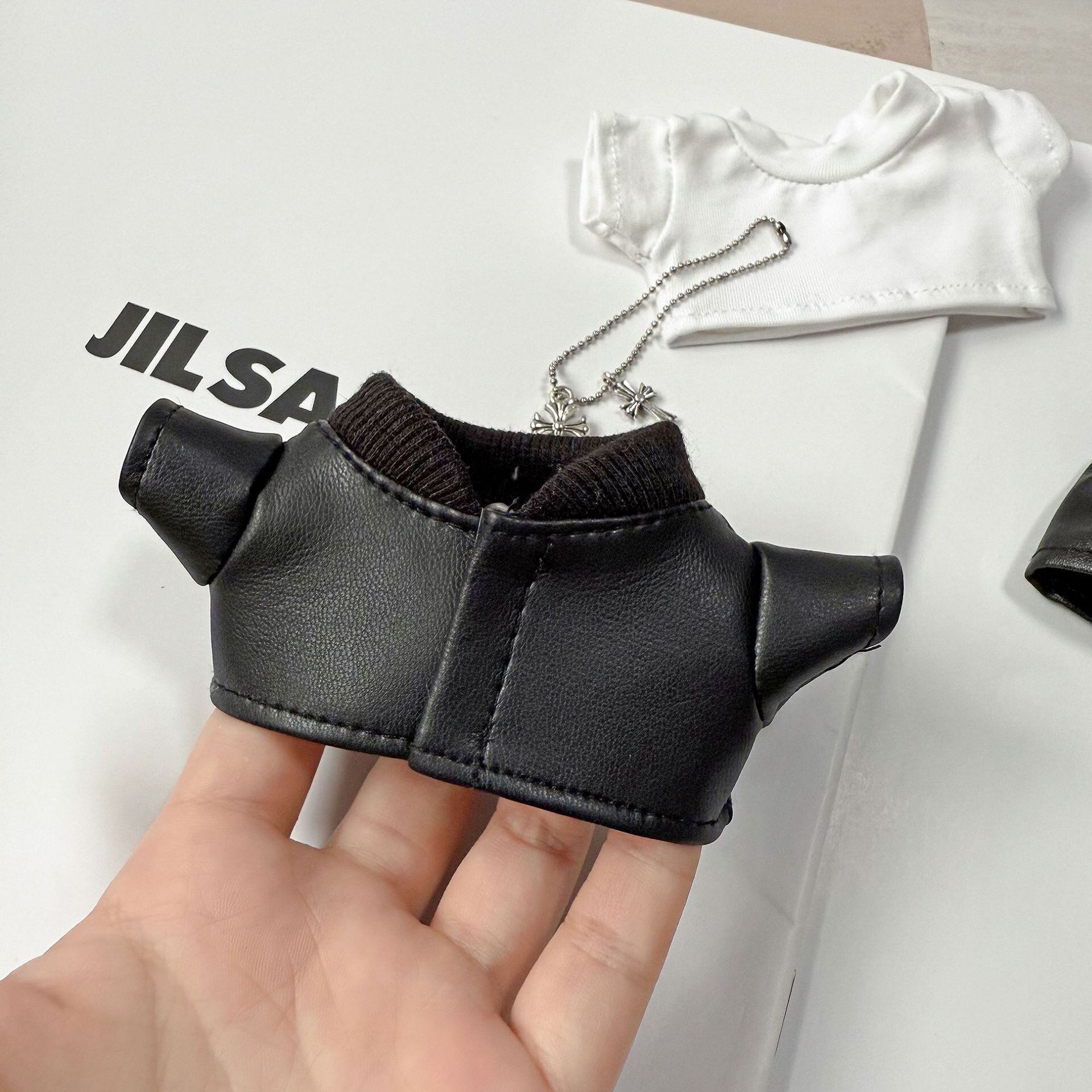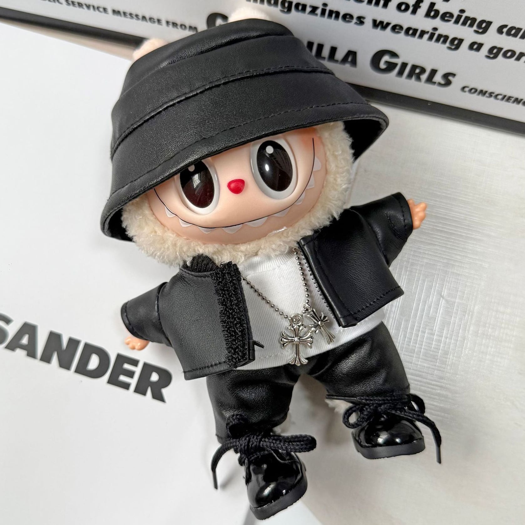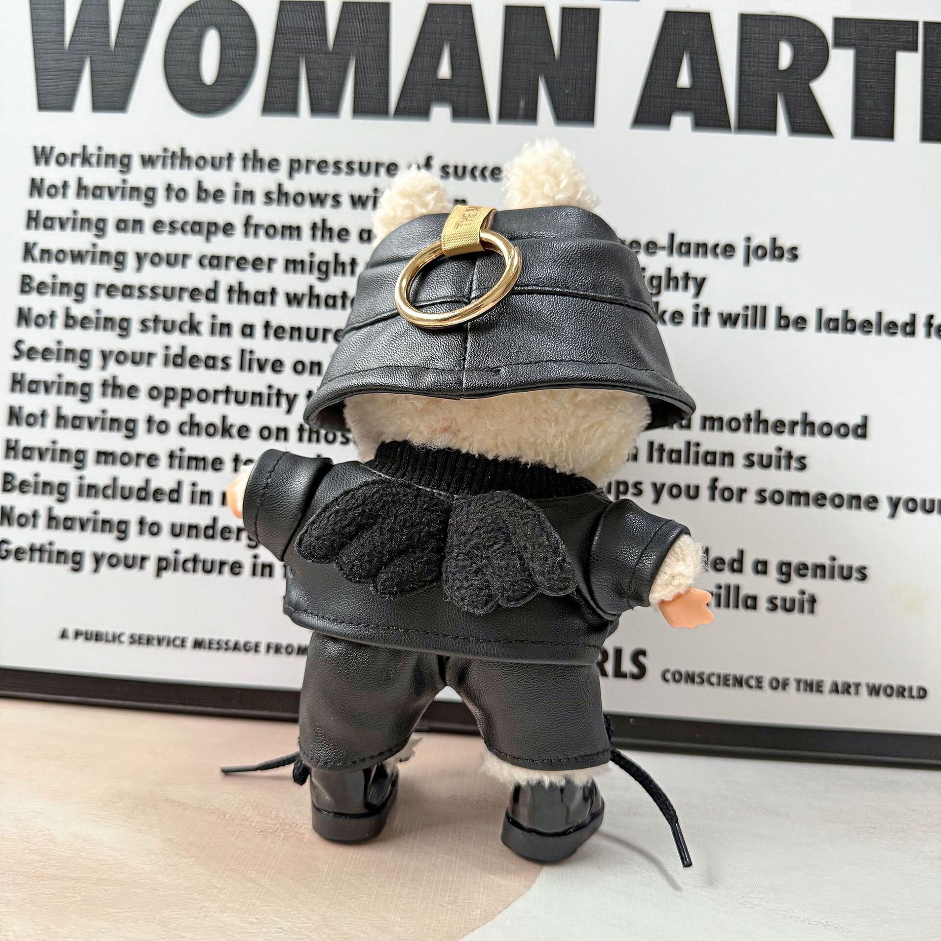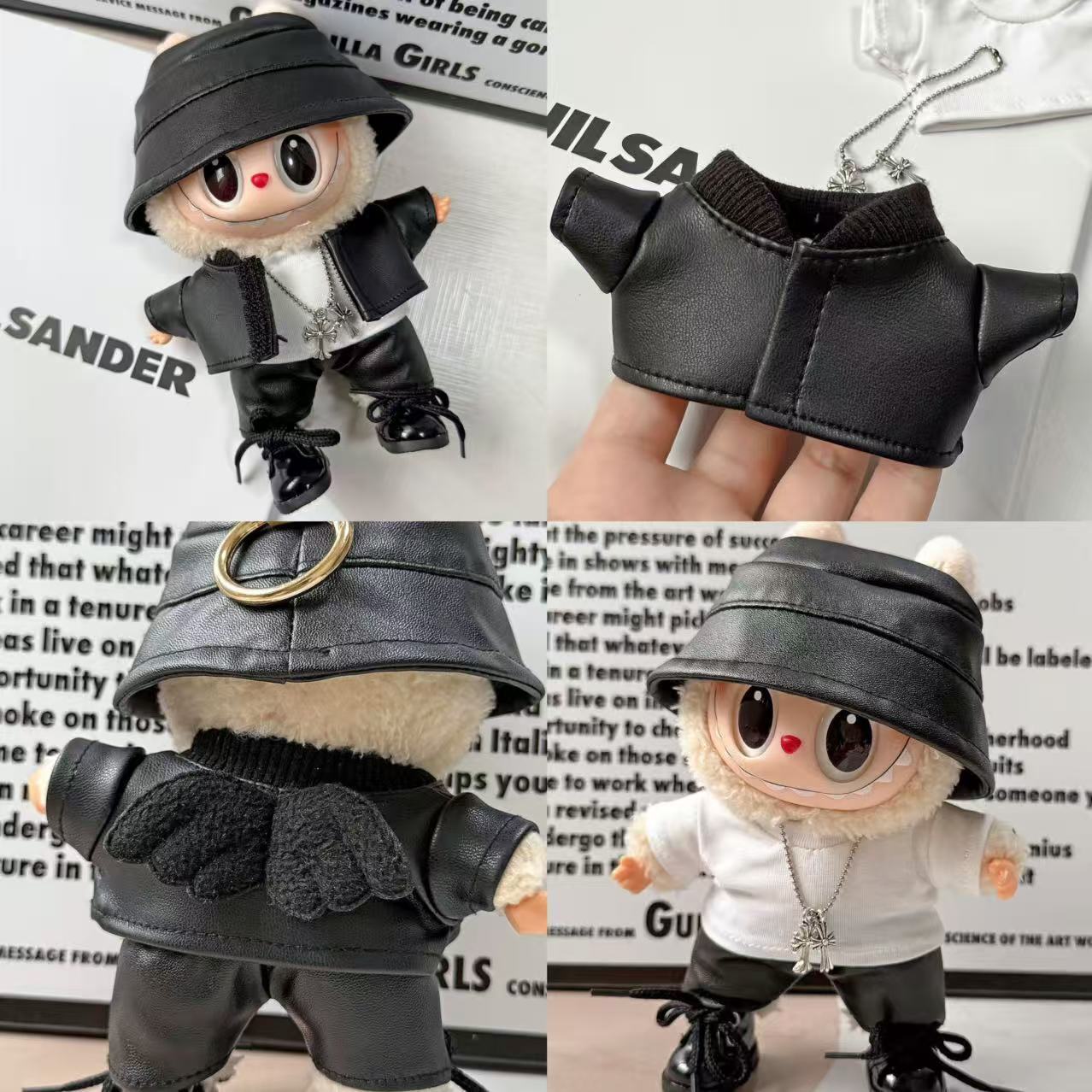 翼が特徴のレザージャケット!高級感あるモノクロコーデ♡ 厚手 15-17cm labubu ラブブ 1-3世代 ドール服 着替えセット モノクロ おしゃれ themonsters1.0 2.0 3.0