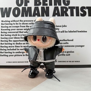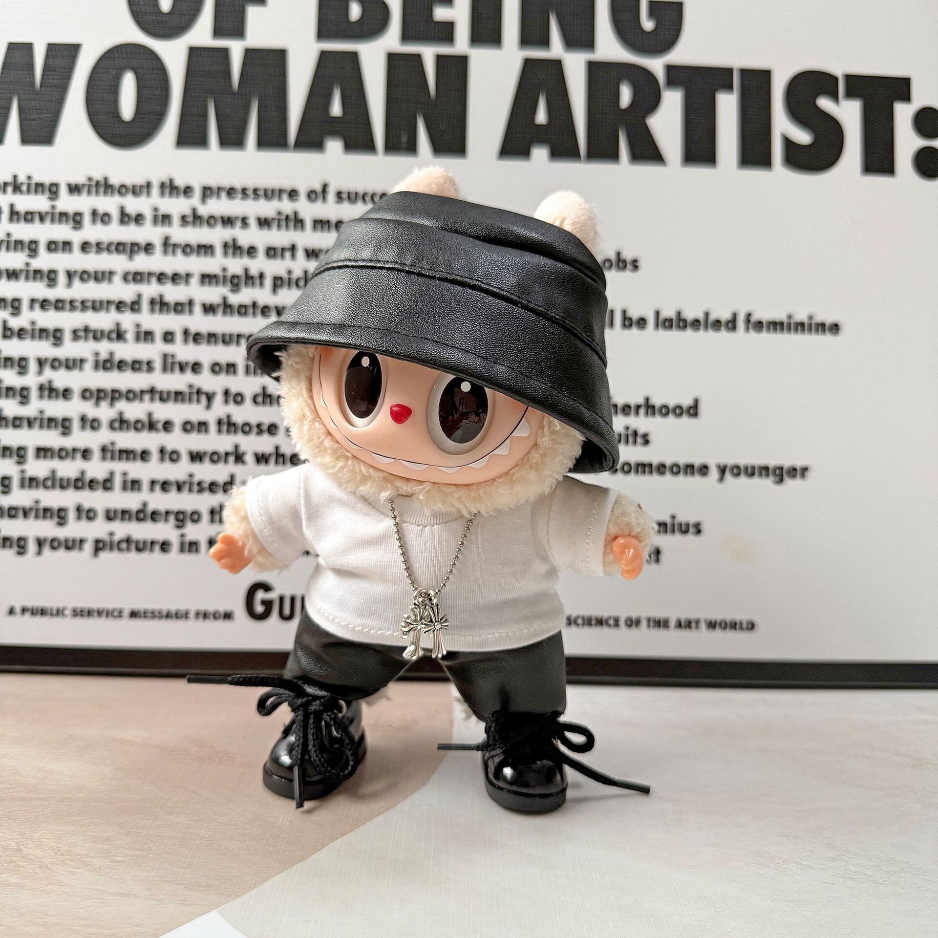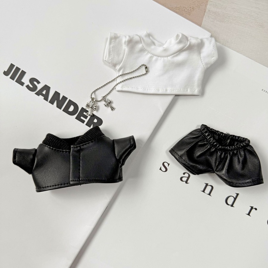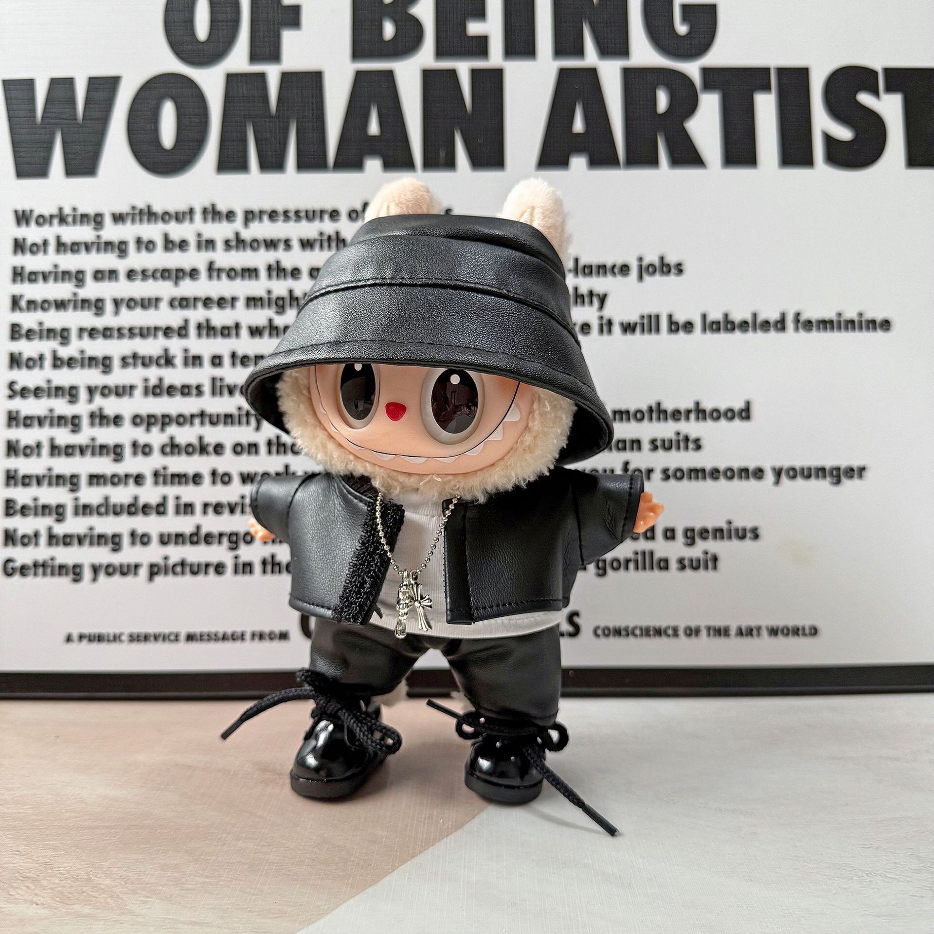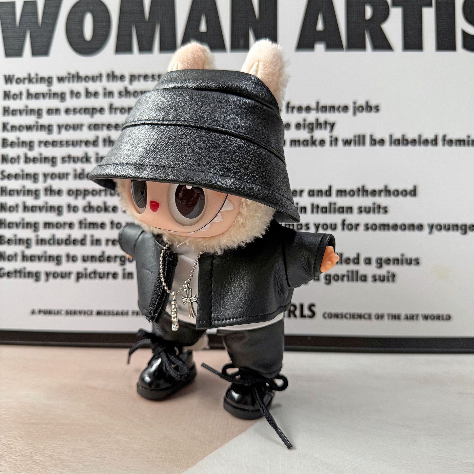 翼が特徴のレザージャケット!高級感あるモノクロコーデ♡ 厚手 15-17cm labubu ラブブ 1-3世代 ドール服 着替えセット モノクロ おしゃれ themonsters1.0 2.0 3.0