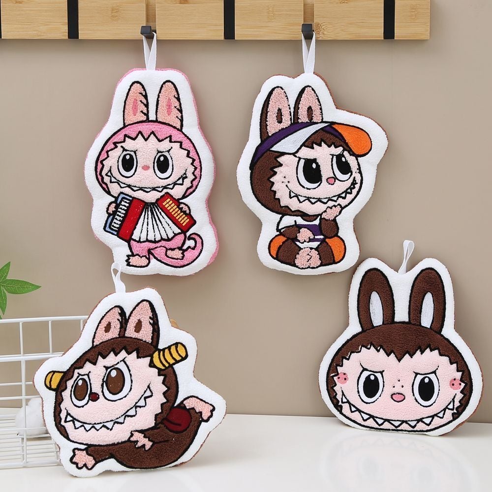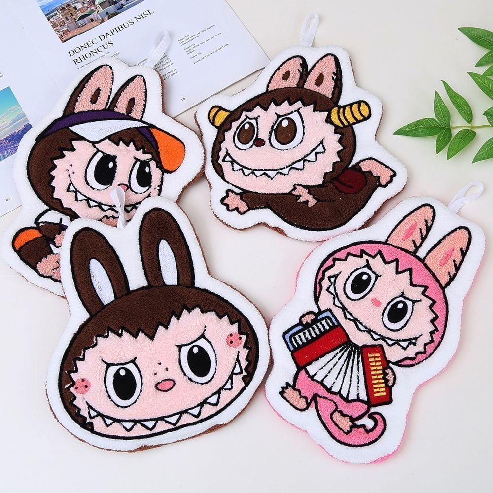 激安!4枚入り!labubu ラブブ 可愛い ハンドタオル 吸水速乾 厚手 キッチンタオル 多用途 4枚セット 吸水速乾 キッチン・洗面所用 厚手で可愛い お得用