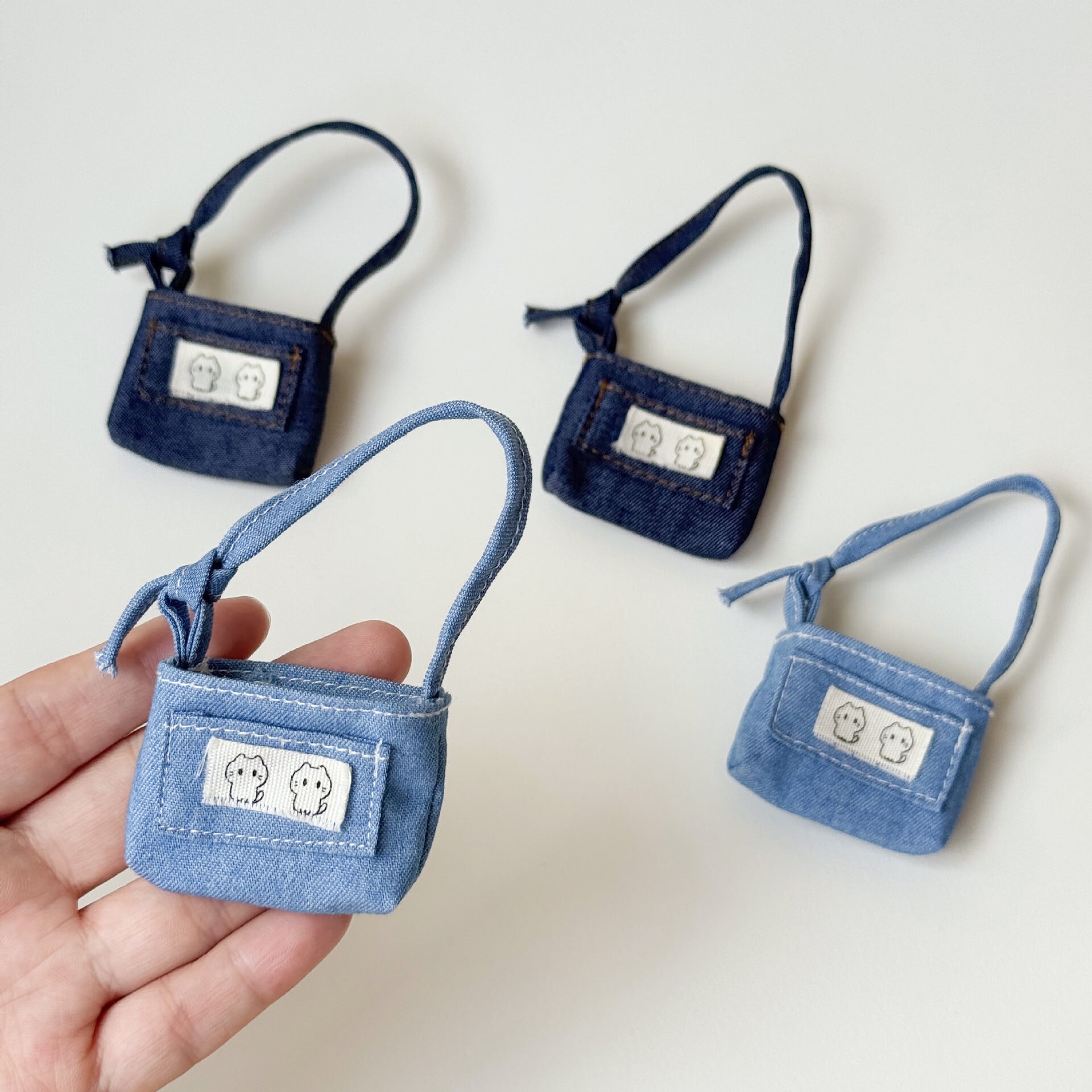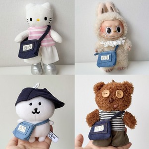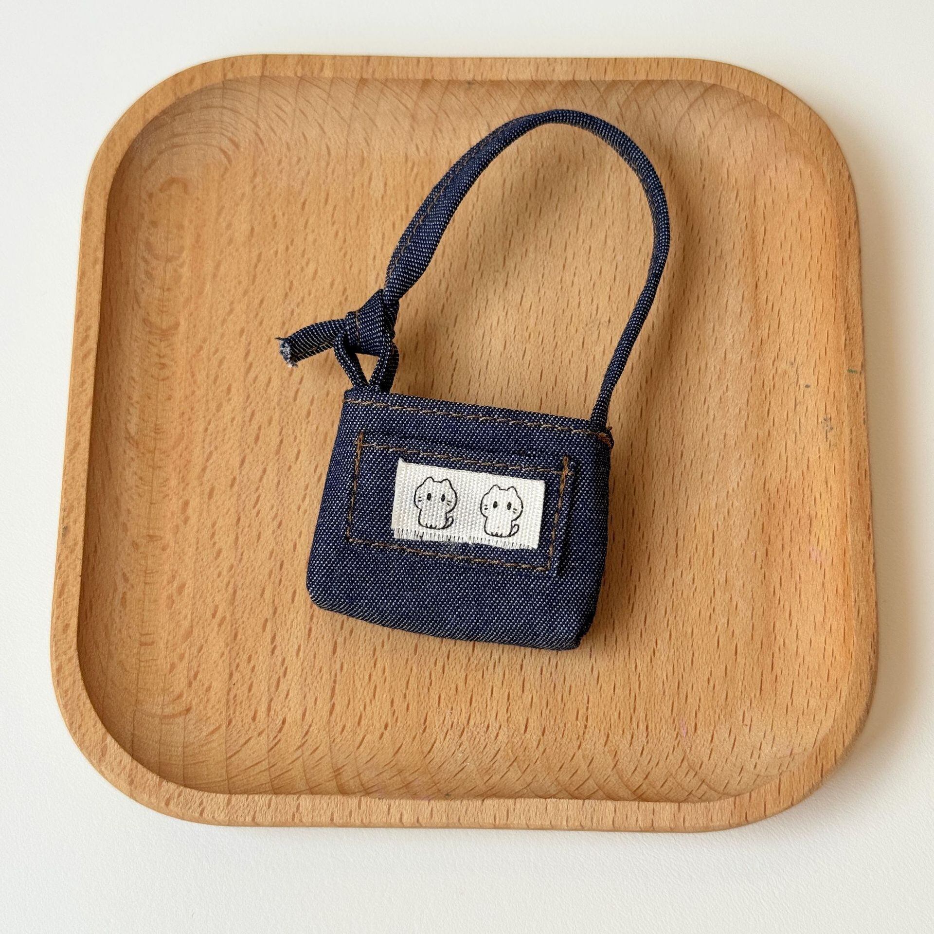 猫アップリケが可愛い!labubu ラブブ用 デニム ミニショルダーバッグ 猫アップリケ付き 可愛い 小さな斜め掛けバッグ ドール用 Labubuのおしゃれ小物