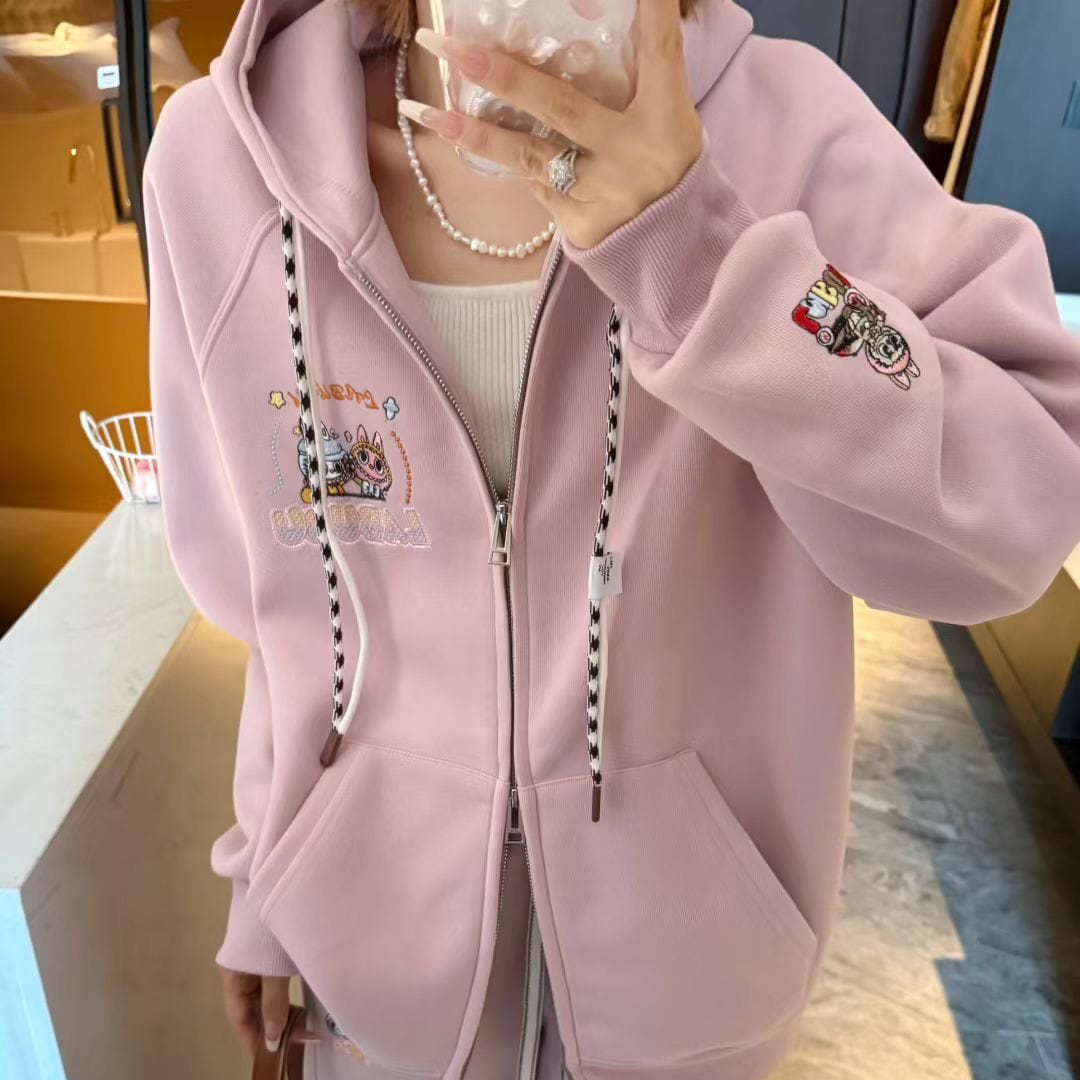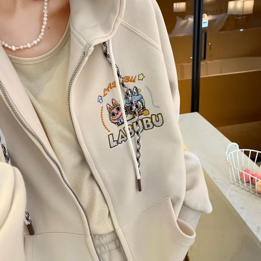 【おしゃれの新作5色】着心地良 合わせやすい 刺繍パーカー labubu レディース ゆったり 高品質 着心地最高 カジュアルアウター ラブブ the monsters