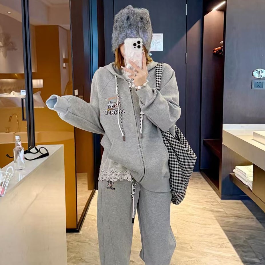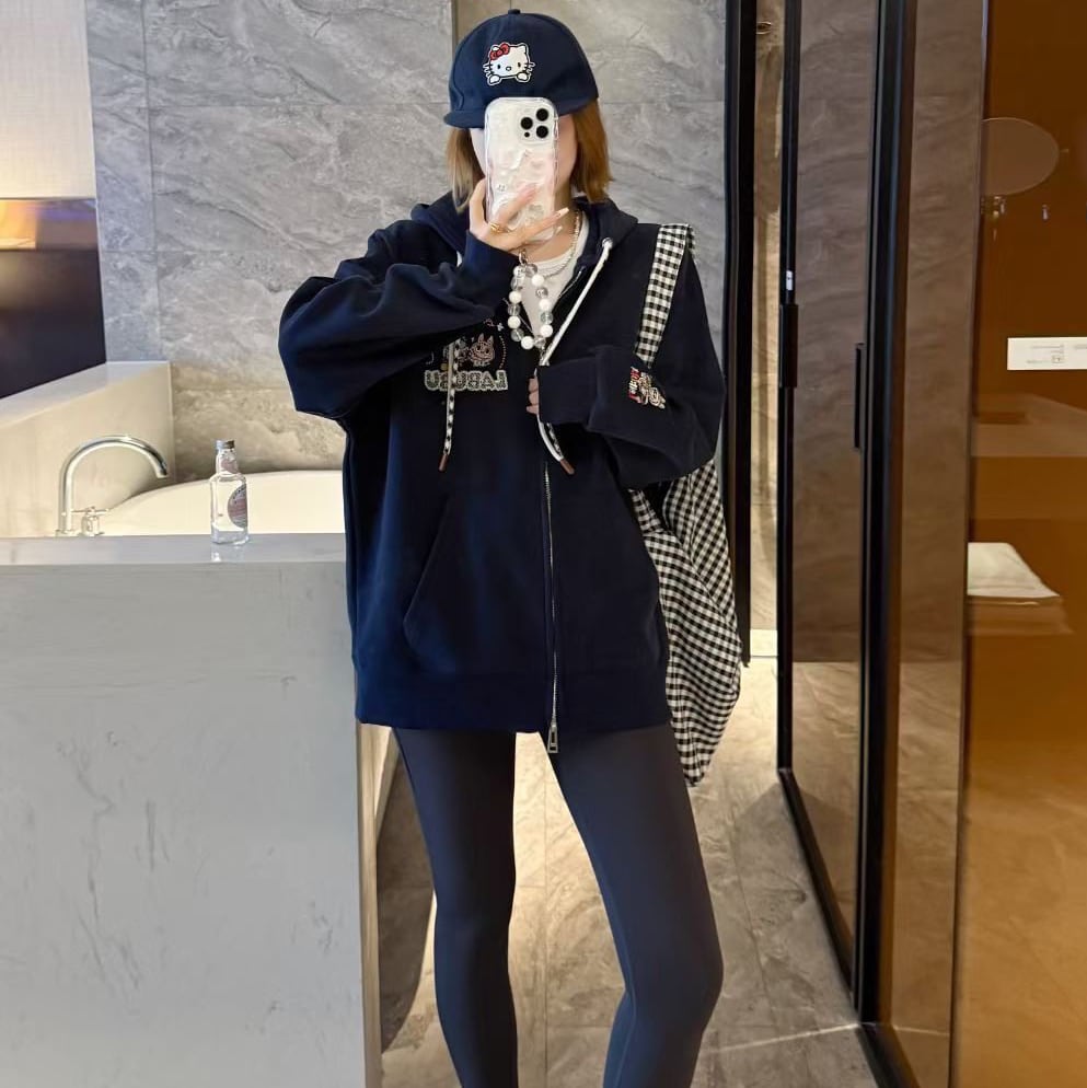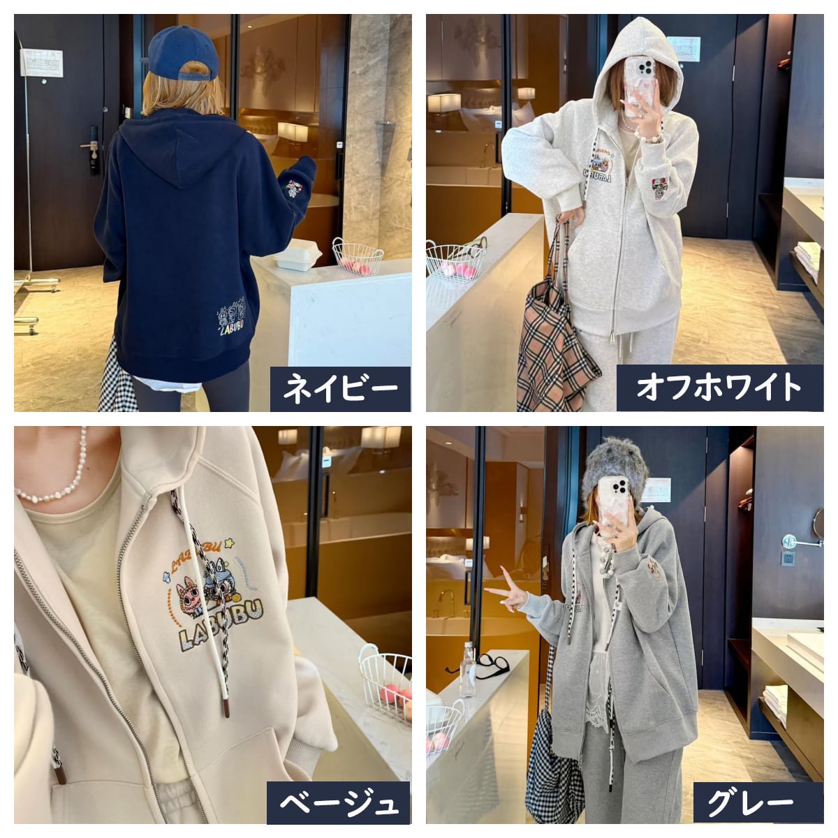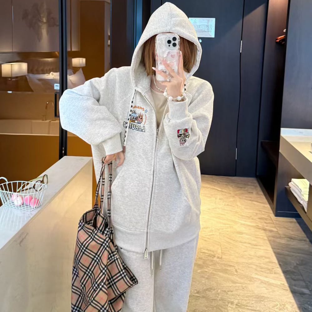 【商品名】【おしゃれの新作5色】着心地良 合わせやすい 刺繍パーカー labubu レディース ゆったり 高品質 着心地最高 カジュアルアウター ラブブ the monsters