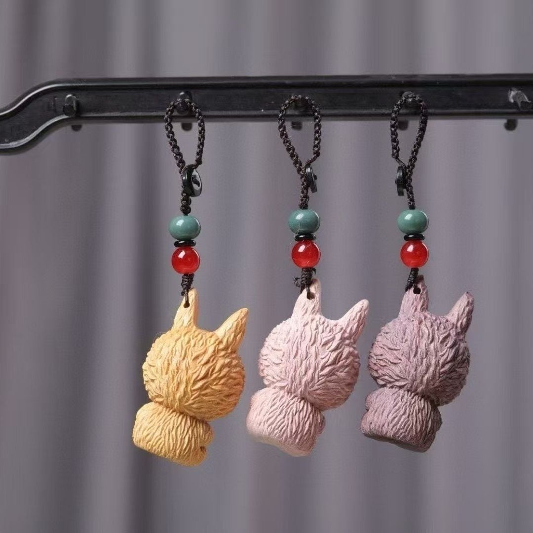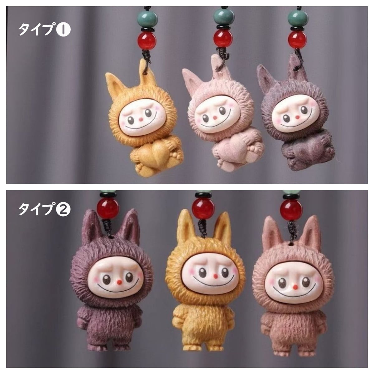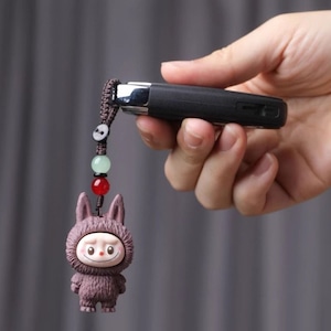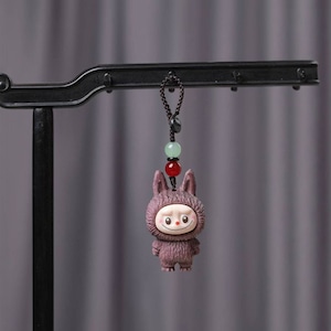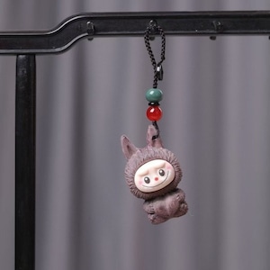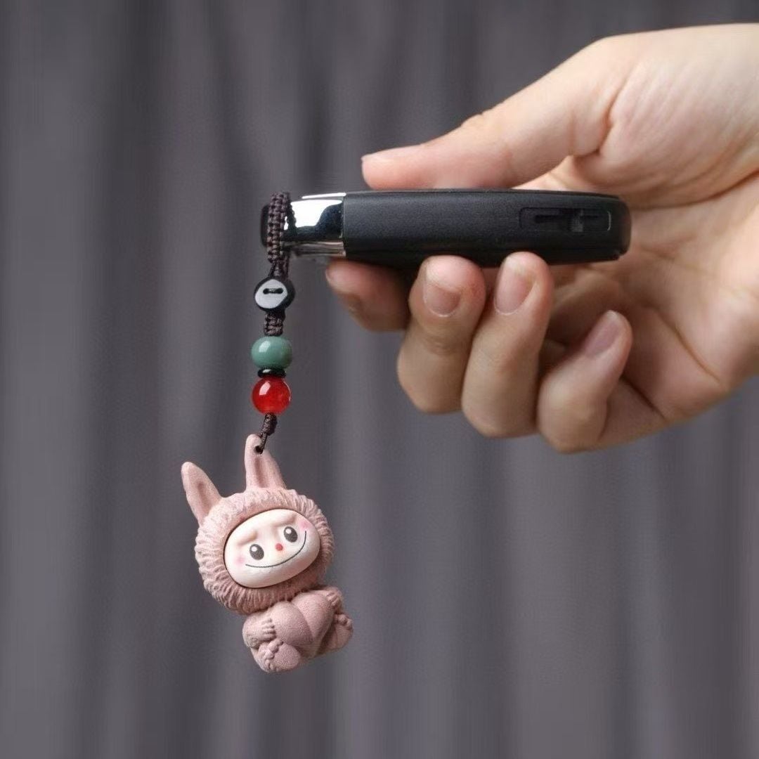 激カワの木彫り「ラブブ」ちゃんキーホルダー!シタン木彫り 可愛いlabubu 立体キーホルダー ストラップ 可愛い キャラ バッグチャーム 車 プレゼント ユニーク