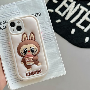 【商品名】ピンク&ホワイト 立体ラブブ iPhoneケース 14Plus/13/15ProMax対応 耐衝撃 ソフトシリコン製 ふんわり可愛い labubu