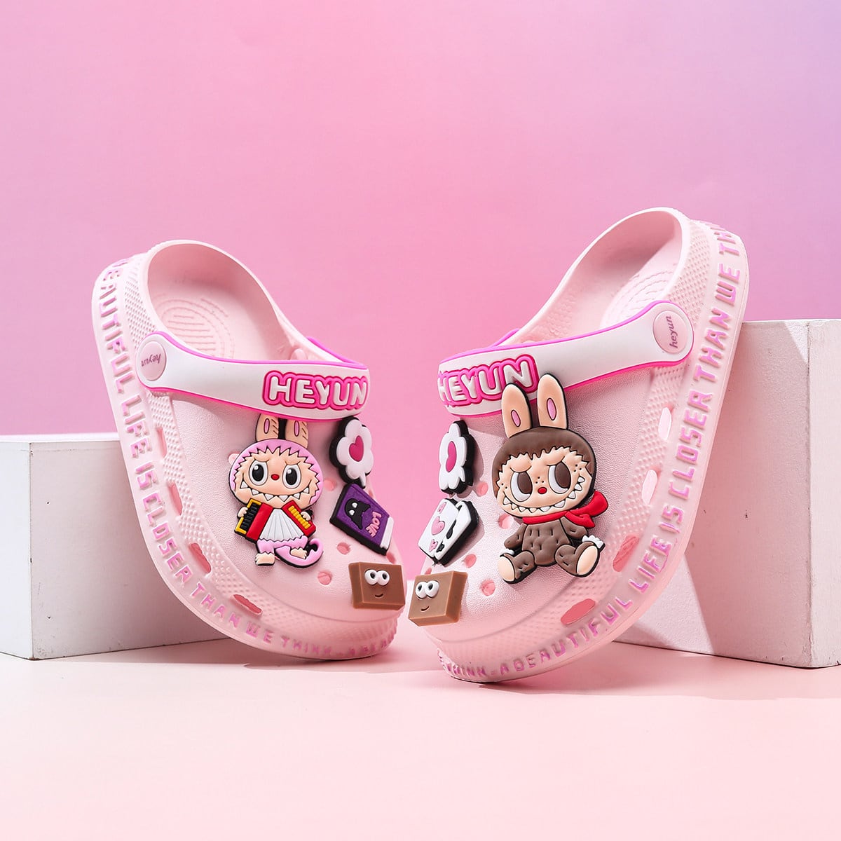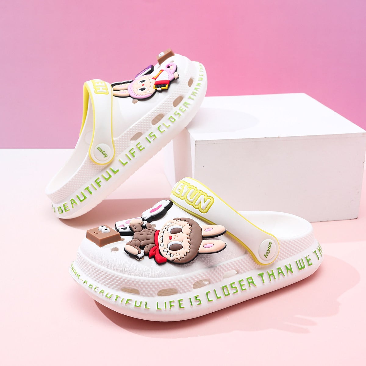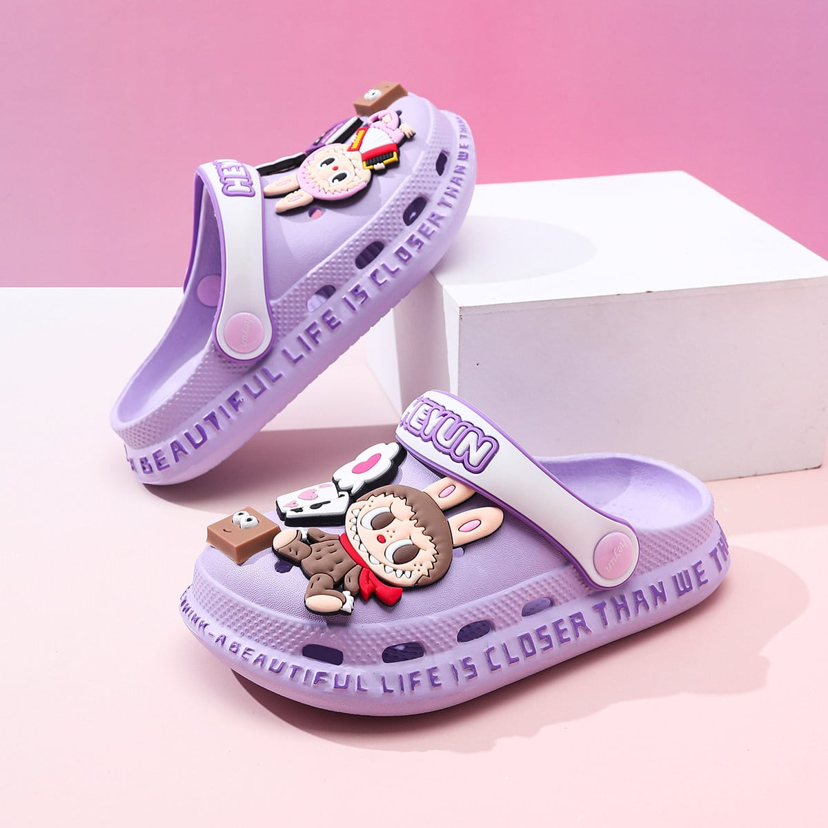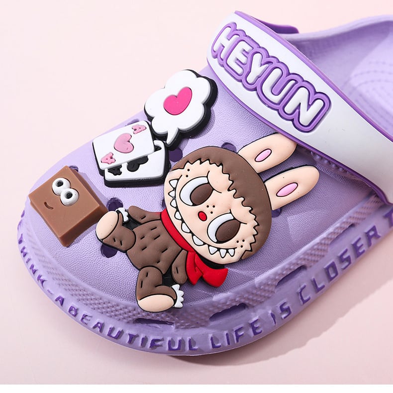 【滑り止め&極軟底】labubu ラブブ 子供用ビーチサンダル 夏 軽量 かわいい プール 水遊び 室内外兼用 かわいい 子供用クロックス 履き心地良い