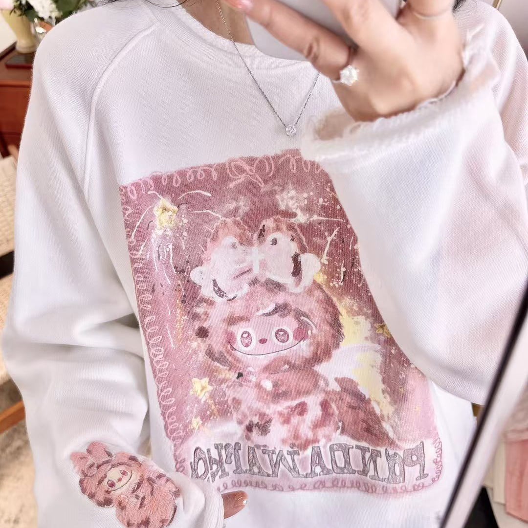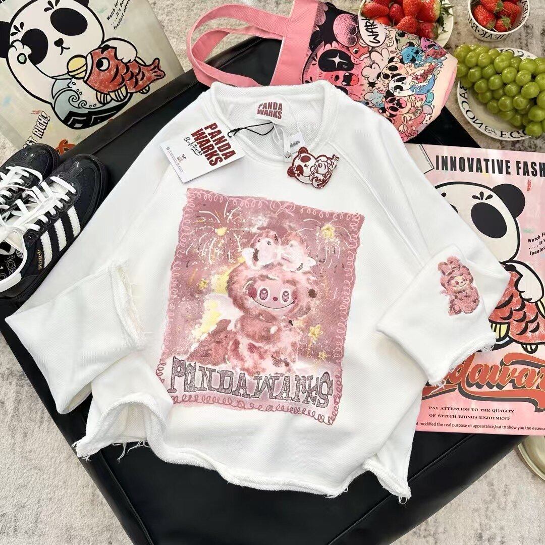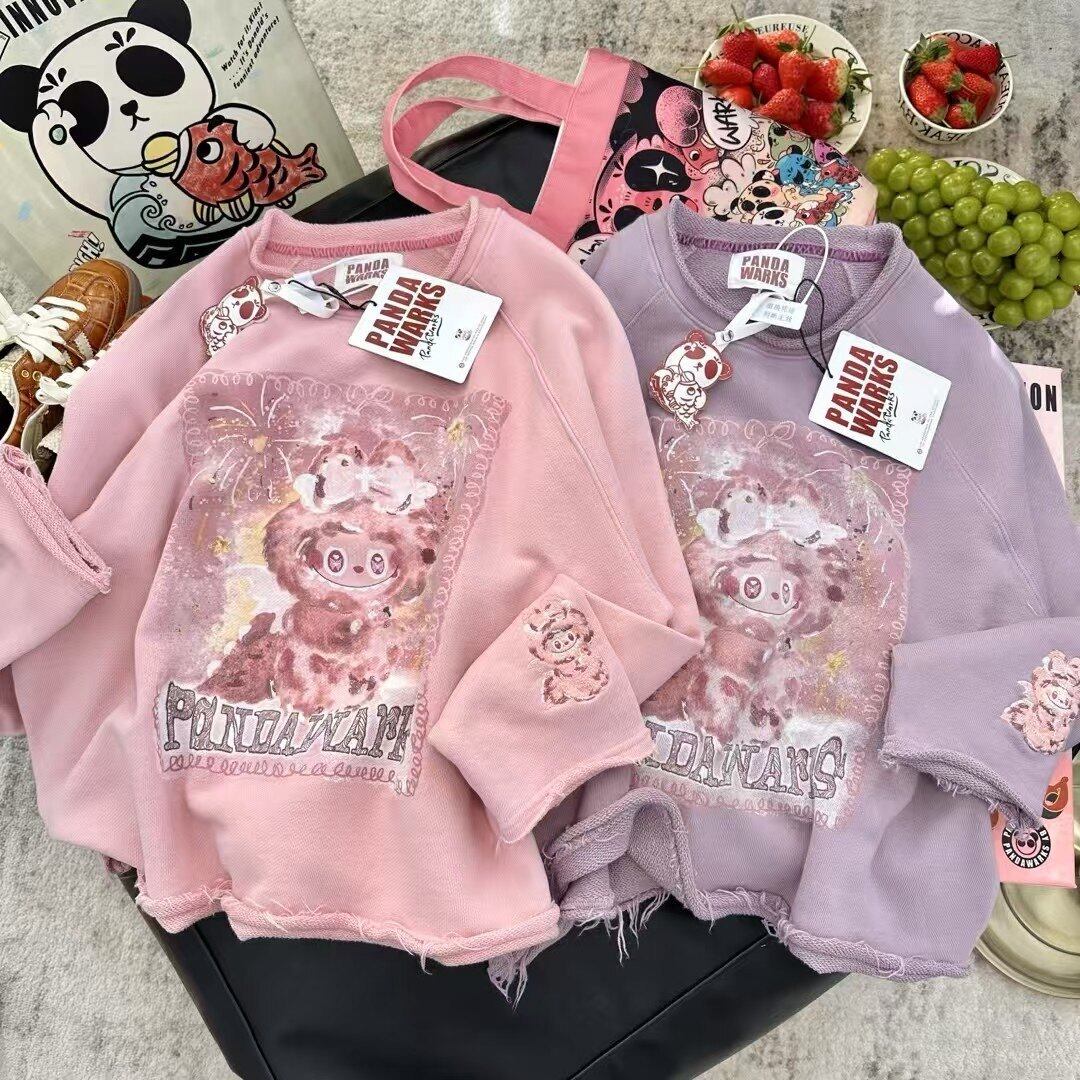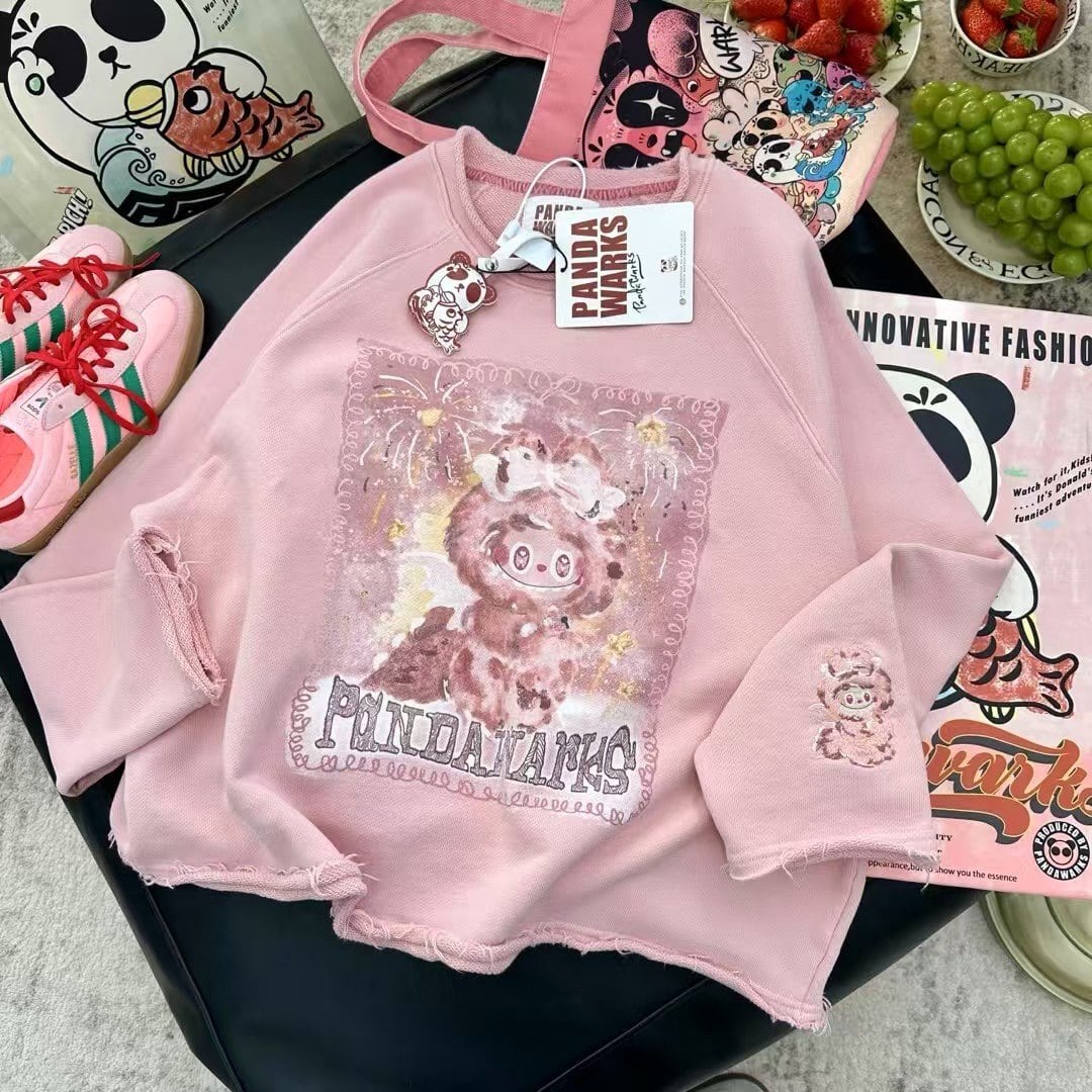 Pandaworks×LABUBU「夢花火の大天使」デザイン スウェット|高密度コットン ウォッシュ加工 こだわり仕様 可愛い おしゃれ