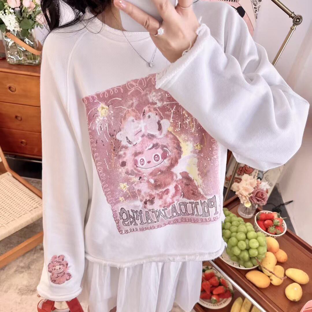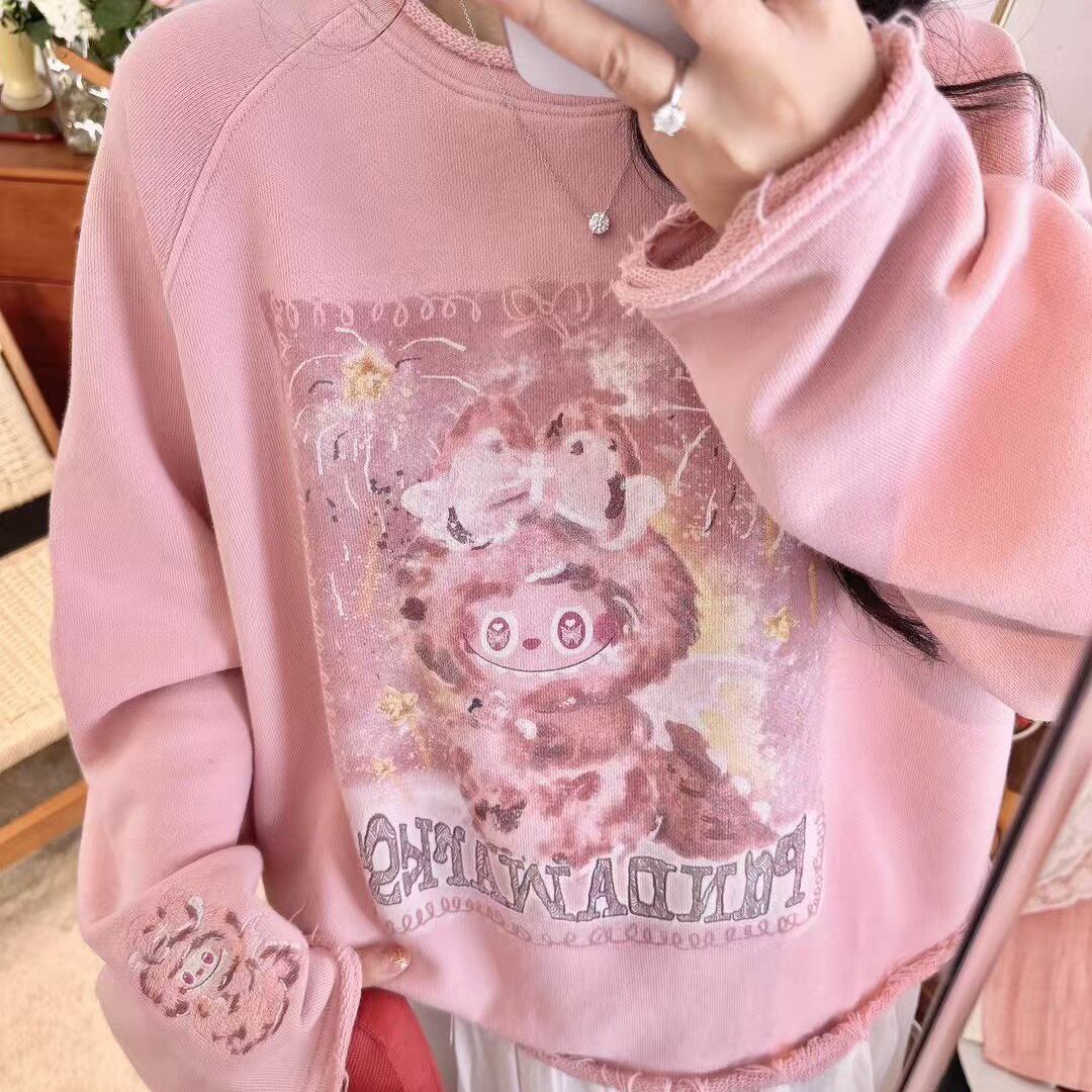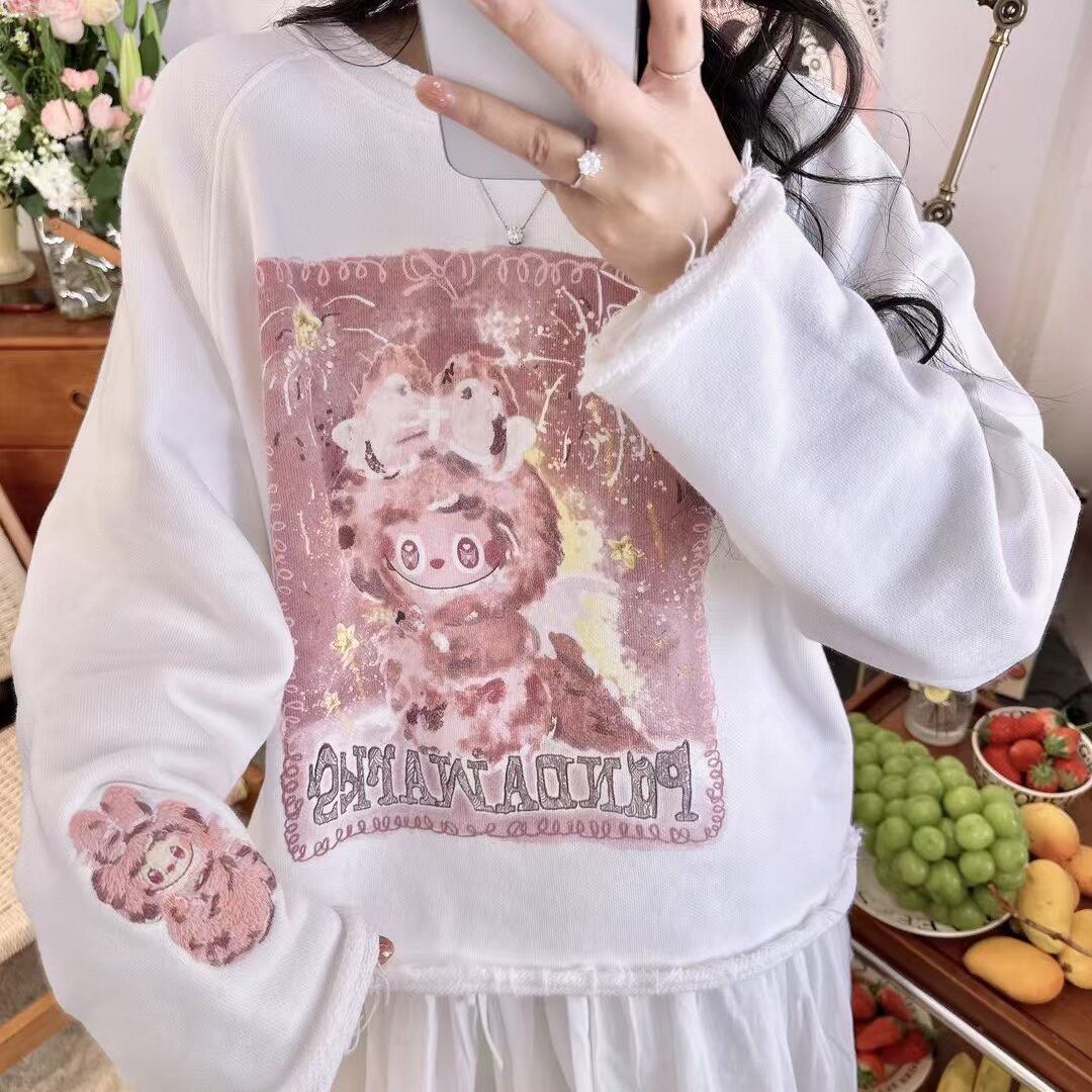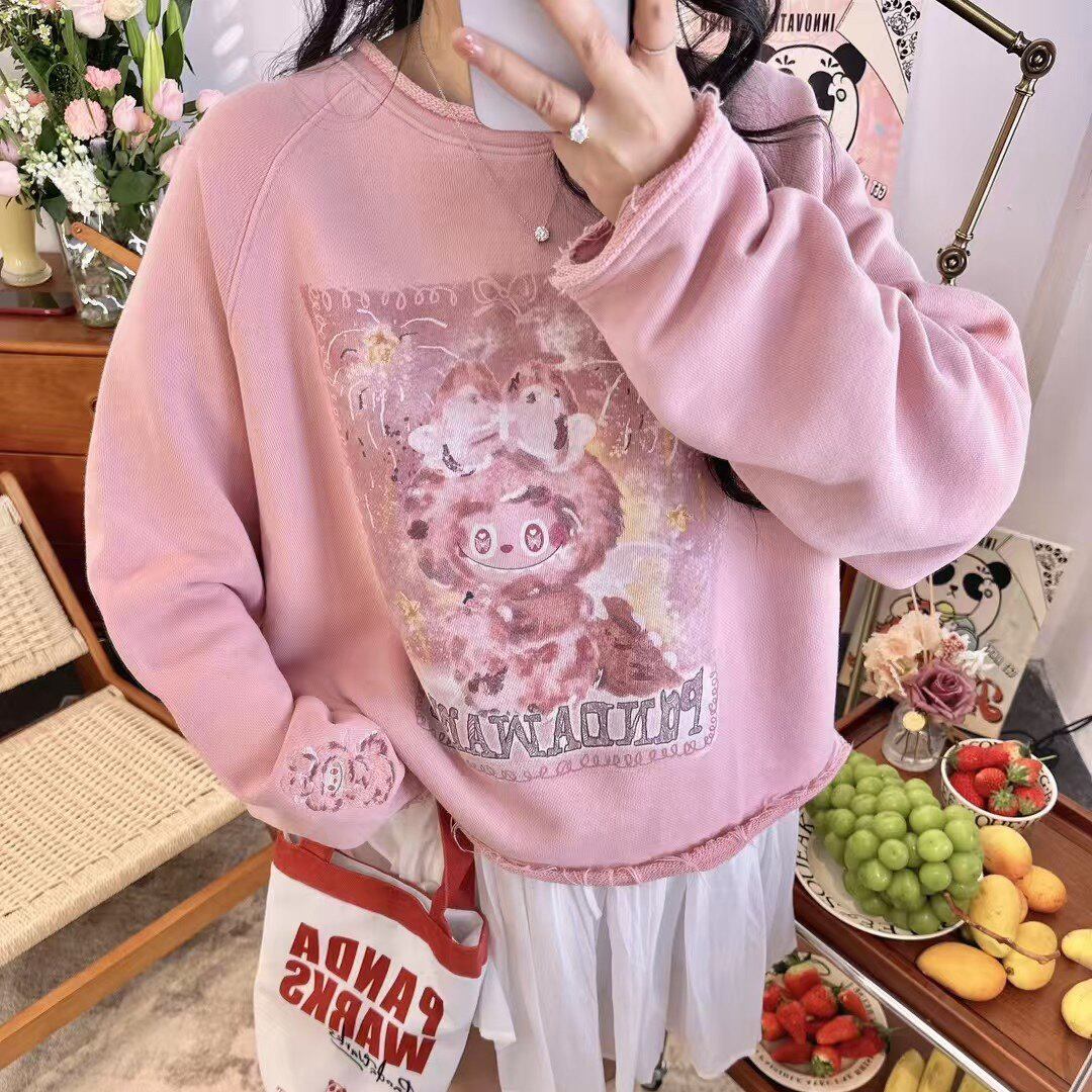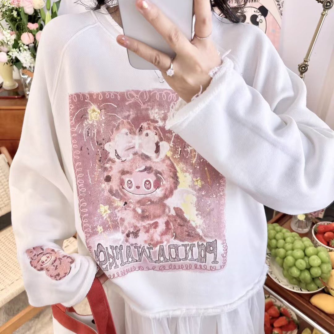 Pandaworks×LABUBU「夢花火の大天使」デザイン スウェット|高密度コットン ウォッシュ加工 こだわり仕様 可愛い おしゃれ
