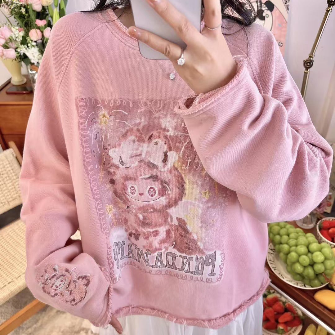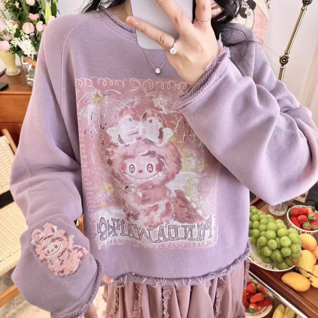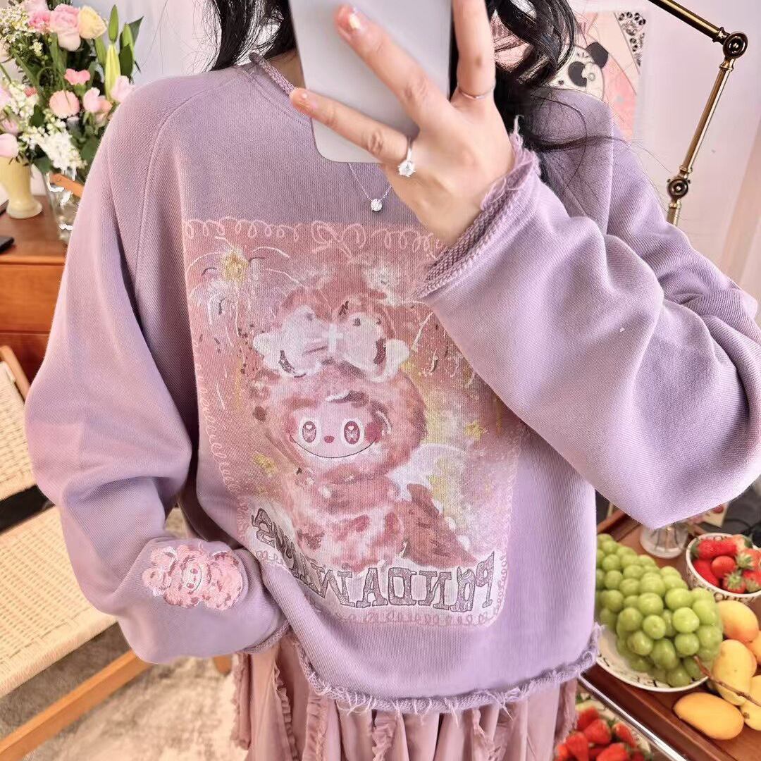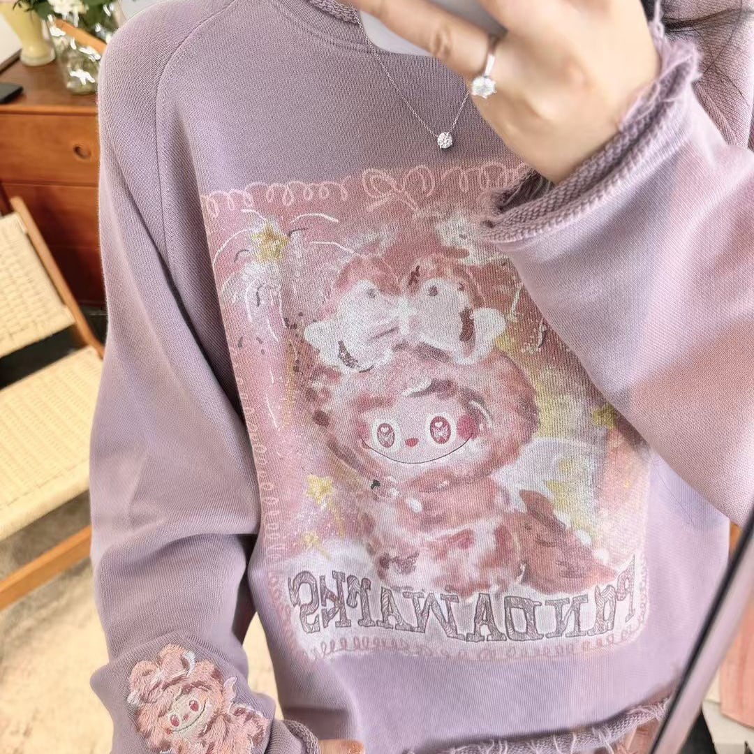 Pandaworks×LABUBU「夢花火の大天使」デザイン スウェット|高密度コットン ウォッシュ加工 こだわり仕様 可愛い おしゃれ