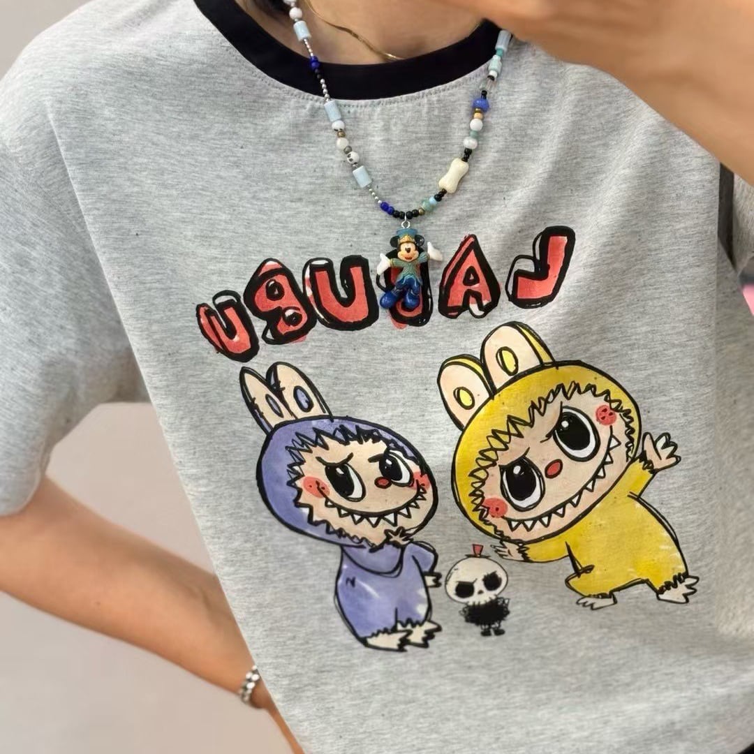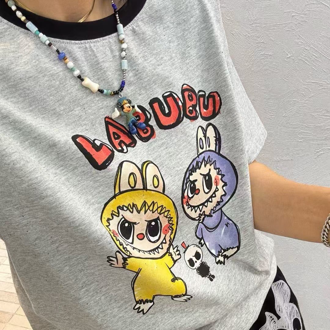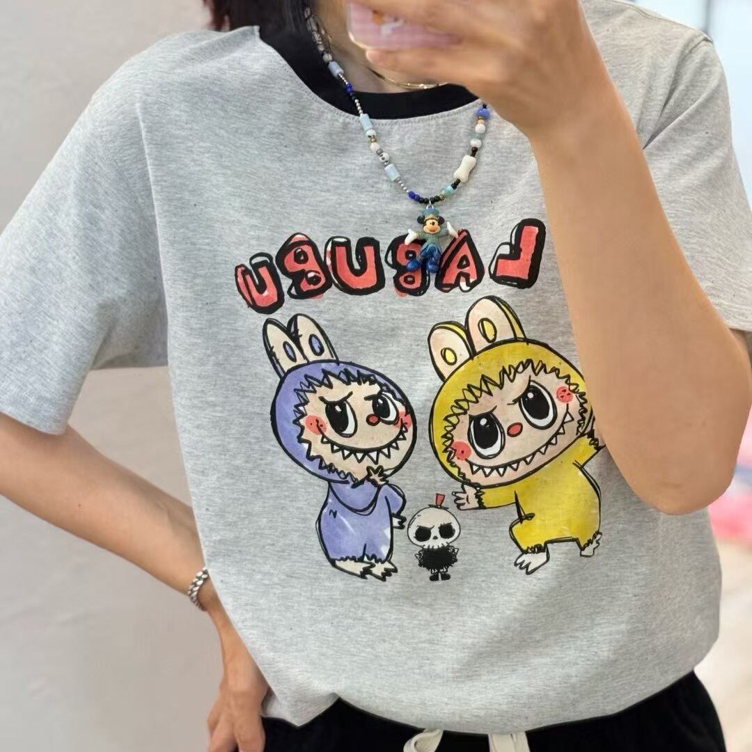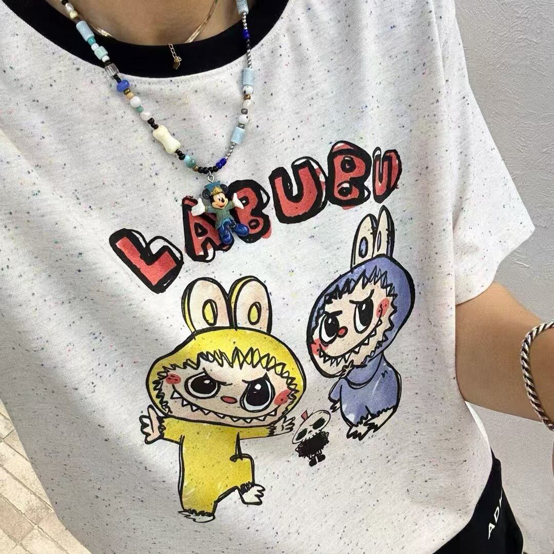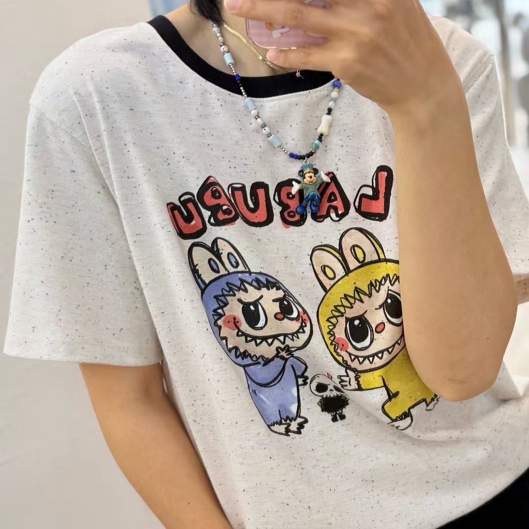 A.D.Khal×LABUBU カラーポイントコットン 無感プリントTシャツ 230gふんわり肌触り 中版シルエット 日常の可愛い一枚