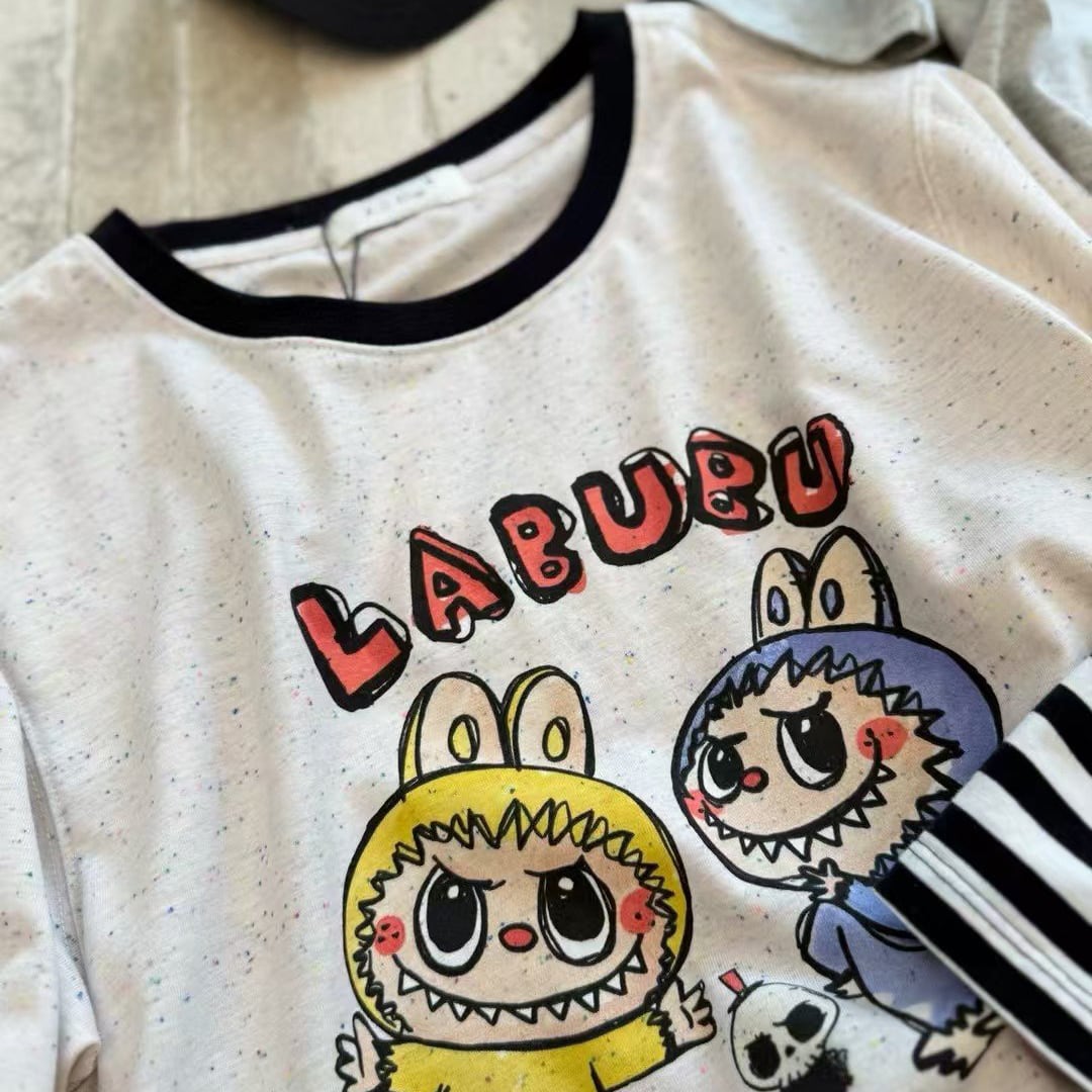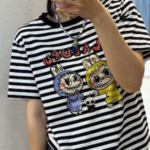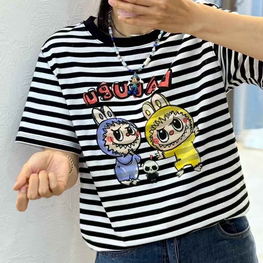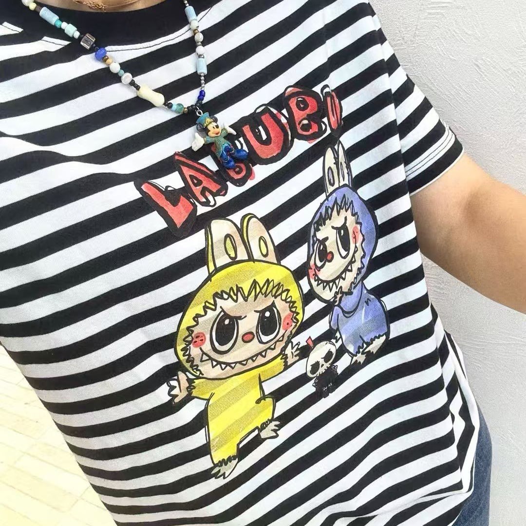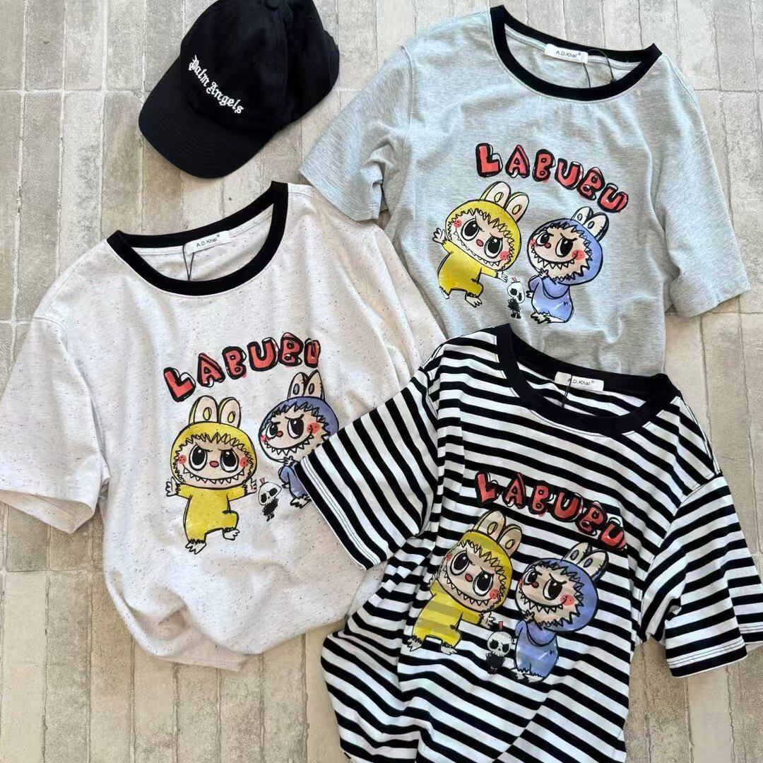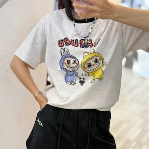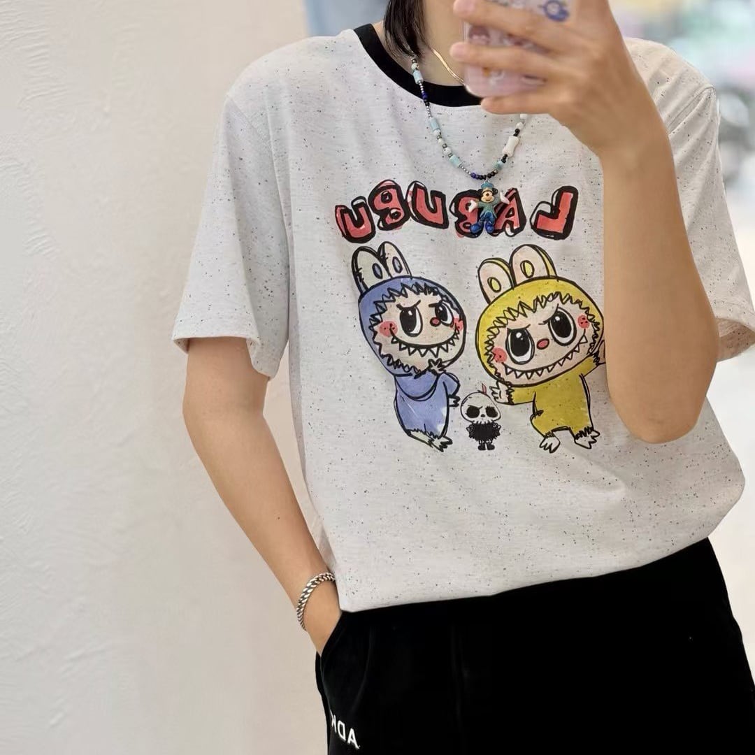 A.D.Khal×LABUBU カラーポイントコットン 無感プリントTシャツ 230gふんわり肌触り 中版シルエット 日常の可愛い一枚