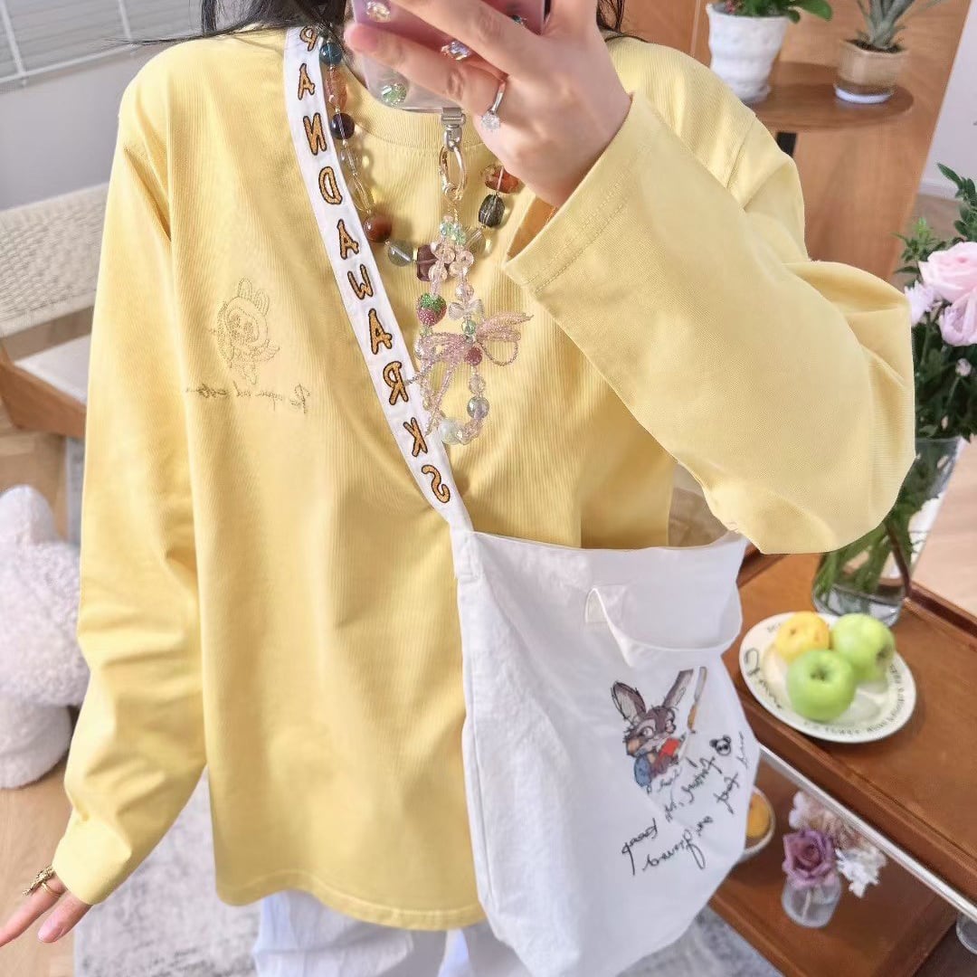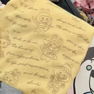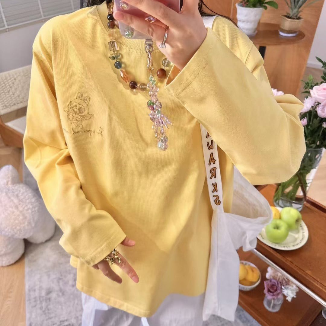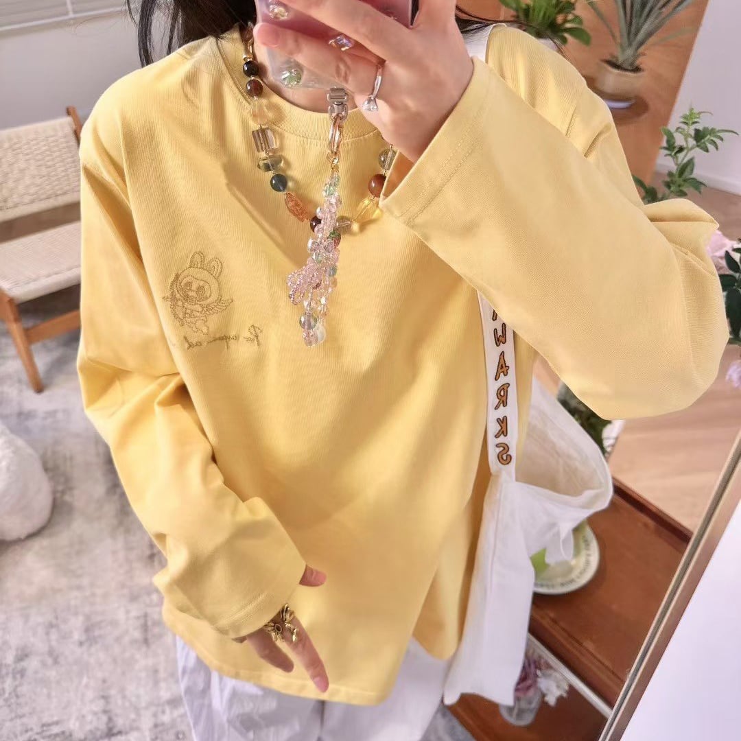 Pandawarks×LABUBU「キューピッドラブブ」長袖Tシャツ シンプル刺繍パーカー|全面レタリング・線画刺繍 高級綿素材 可愛いデザイン ふんわり肌触り