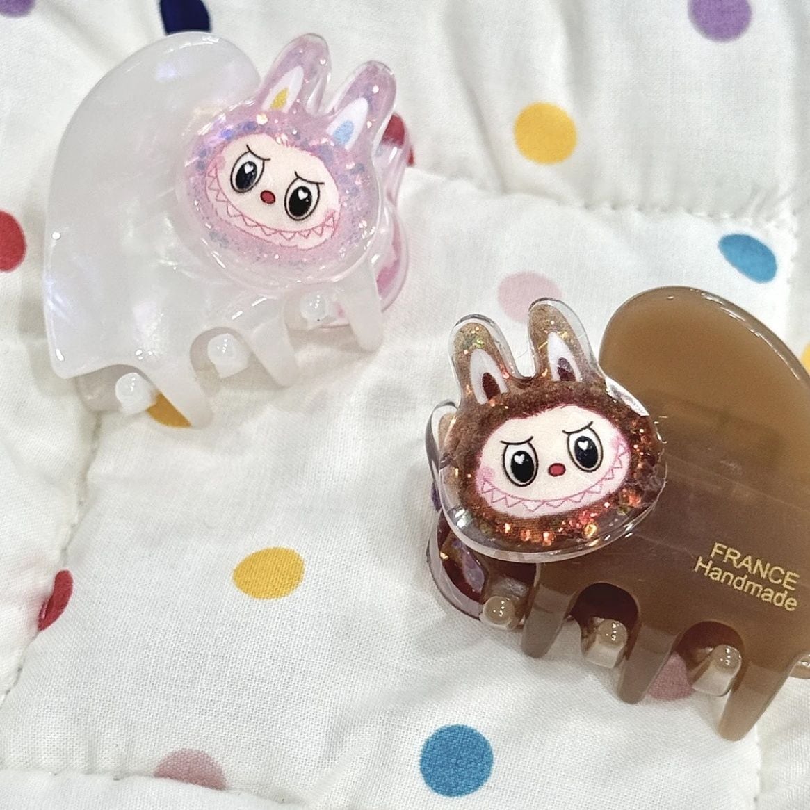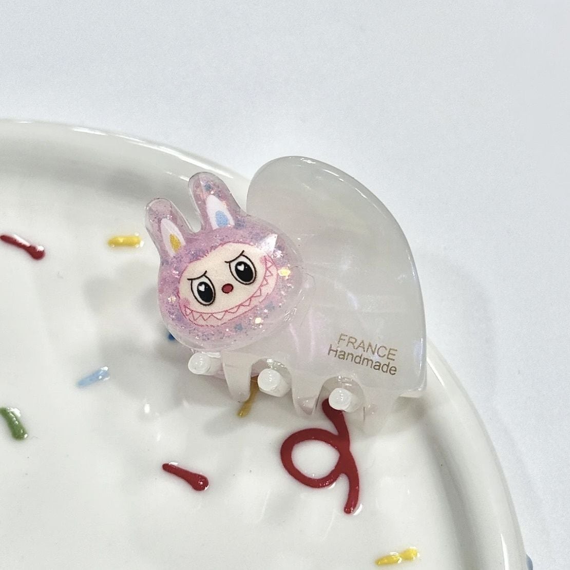 アセテート素材で軽やか、前髪・サイド髪のワンポイントに!Labubu ラブブ ヘアクリップ 前髪ピン サイドクリップ グリッター アセテート 小さい 可愛い ヘアアイテム ヘアゴム 髪飾り