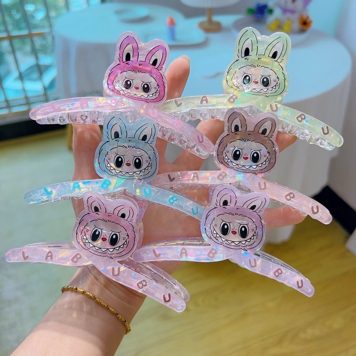 【商品名】激安!6個入り♥ labubu ラブブ シャーククリップ マーメイドカラー 人魚姫 まとめ髪 アップスタイル 大きめヘアクリップ 可愛い ヘアアクセサリー