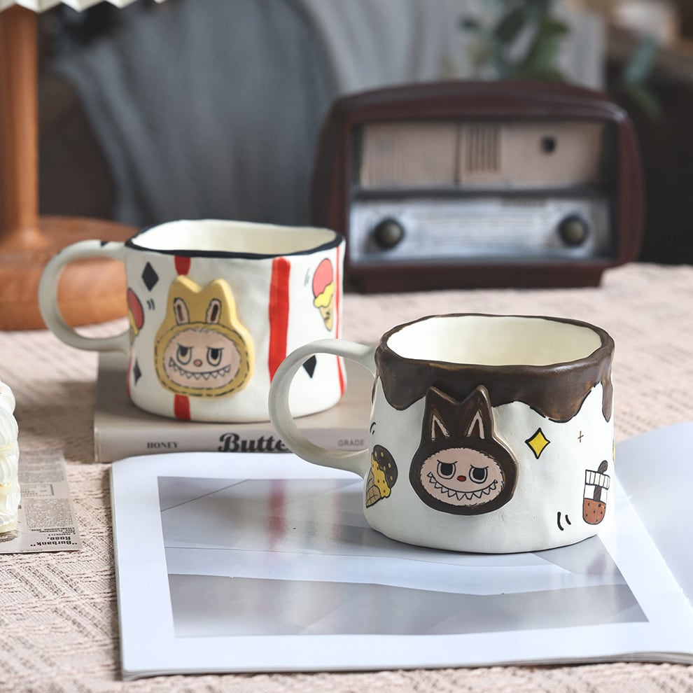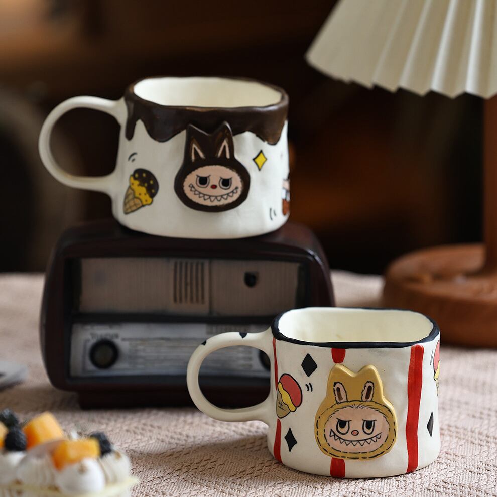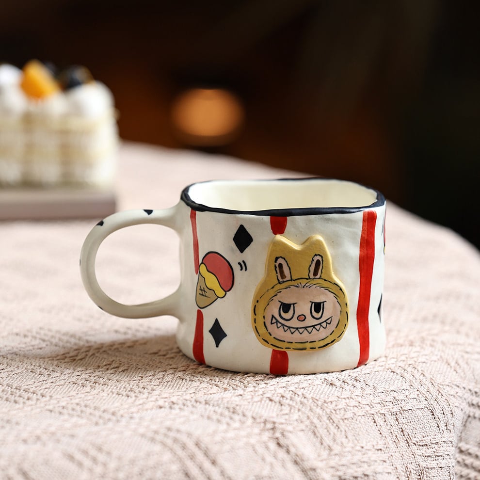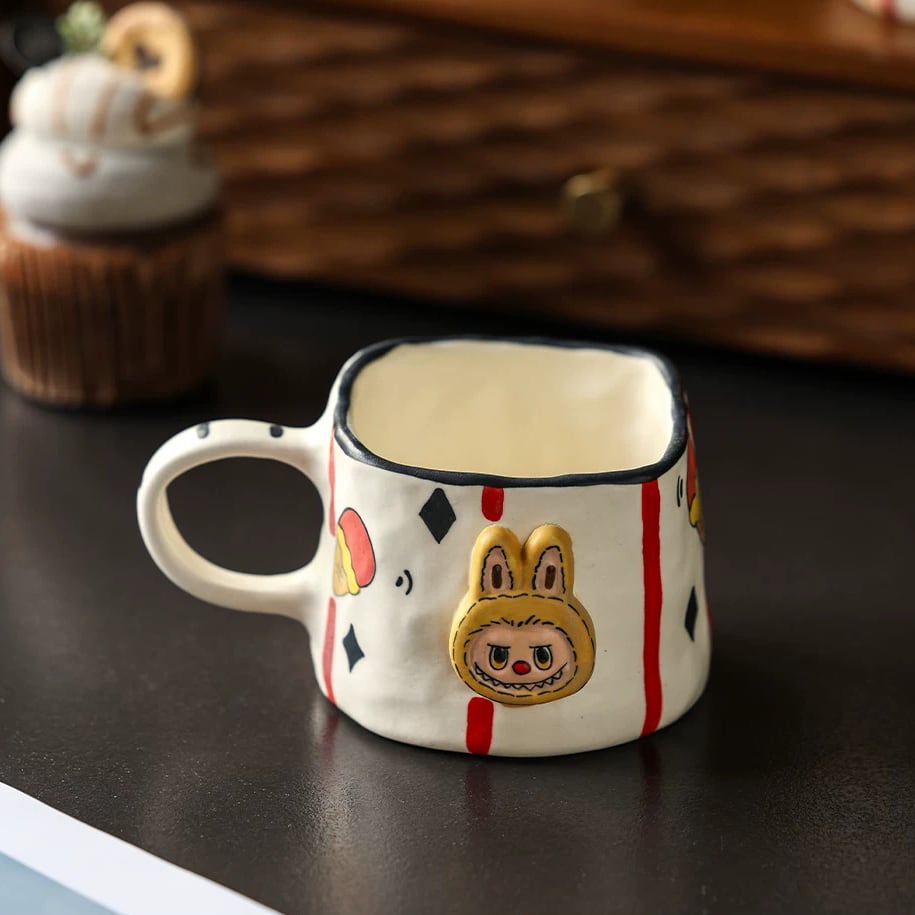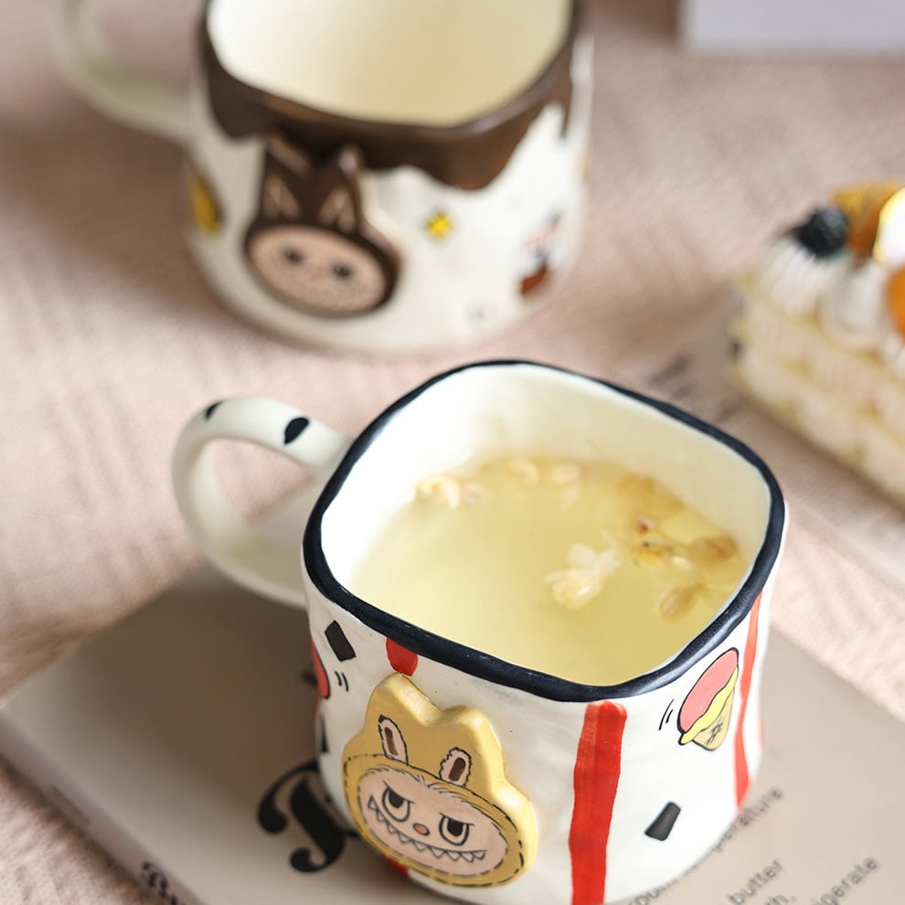 オフィスでほっこり。スクエア型がユニーク!labubu ラブブの陶器マグカップ|アートのような可愛さ オフィスギフトにも 大人可愛いラブブデザイン
