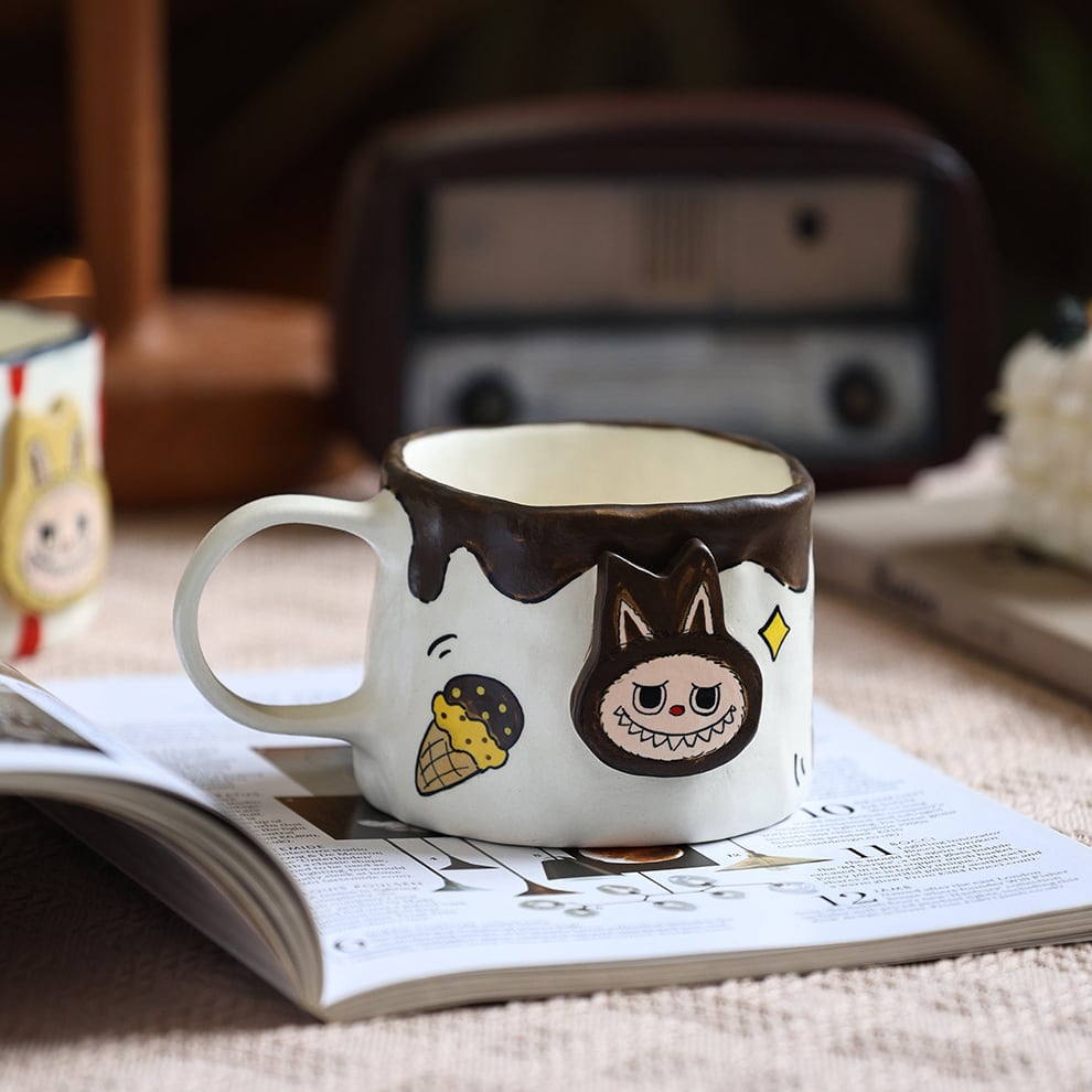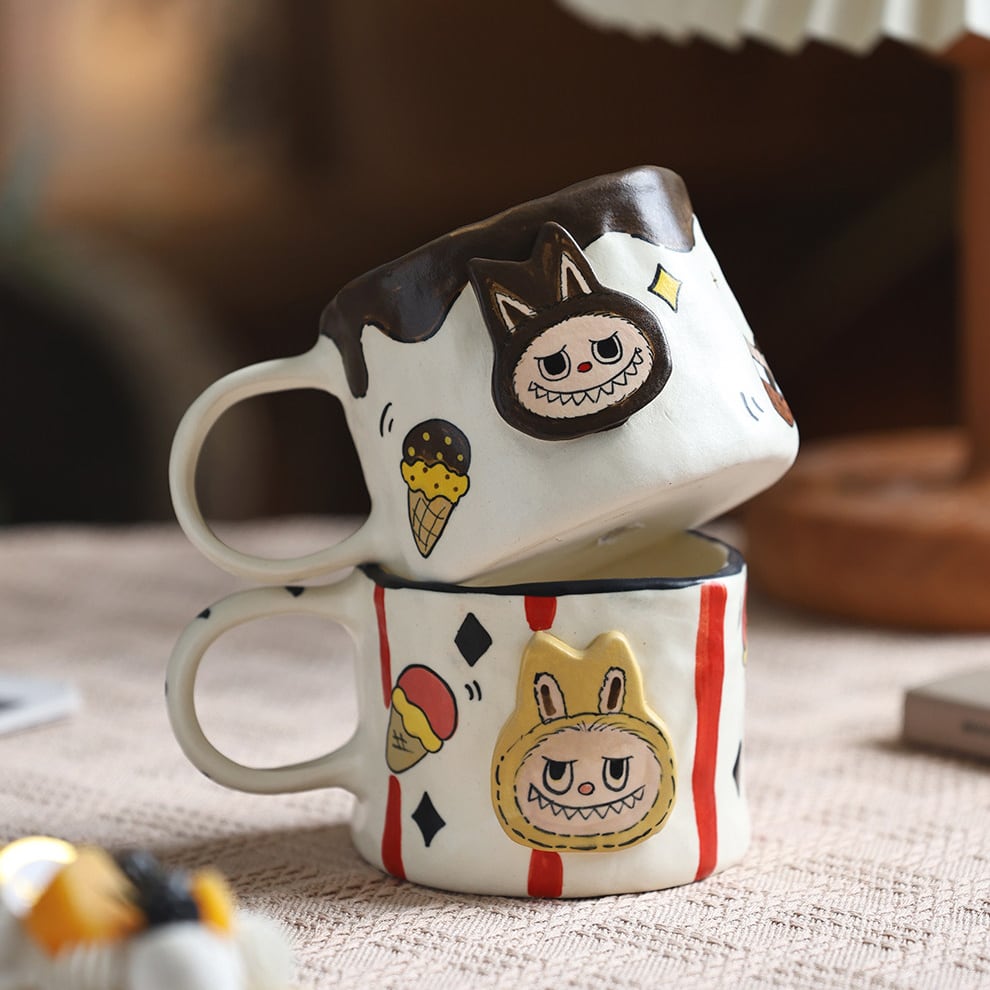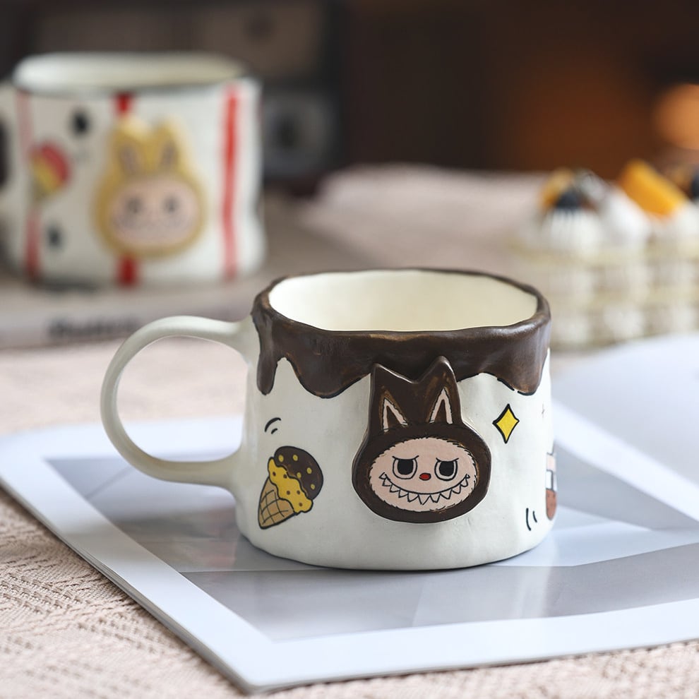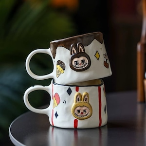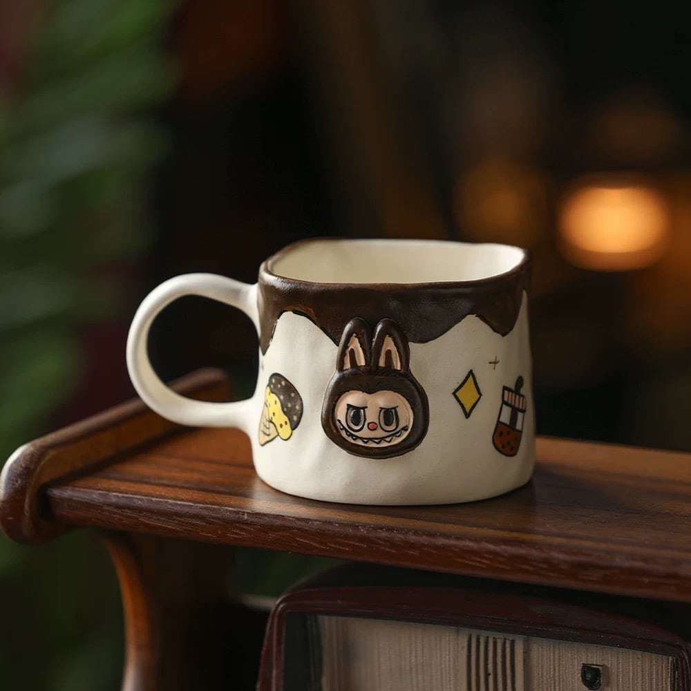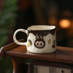 オフィスでほっこり。スクエア型がユニーク!labubu ラブブの陶器マグカップ|アートのような可愛さ オフィスギフトにも 大人可愛いラブブデザイン