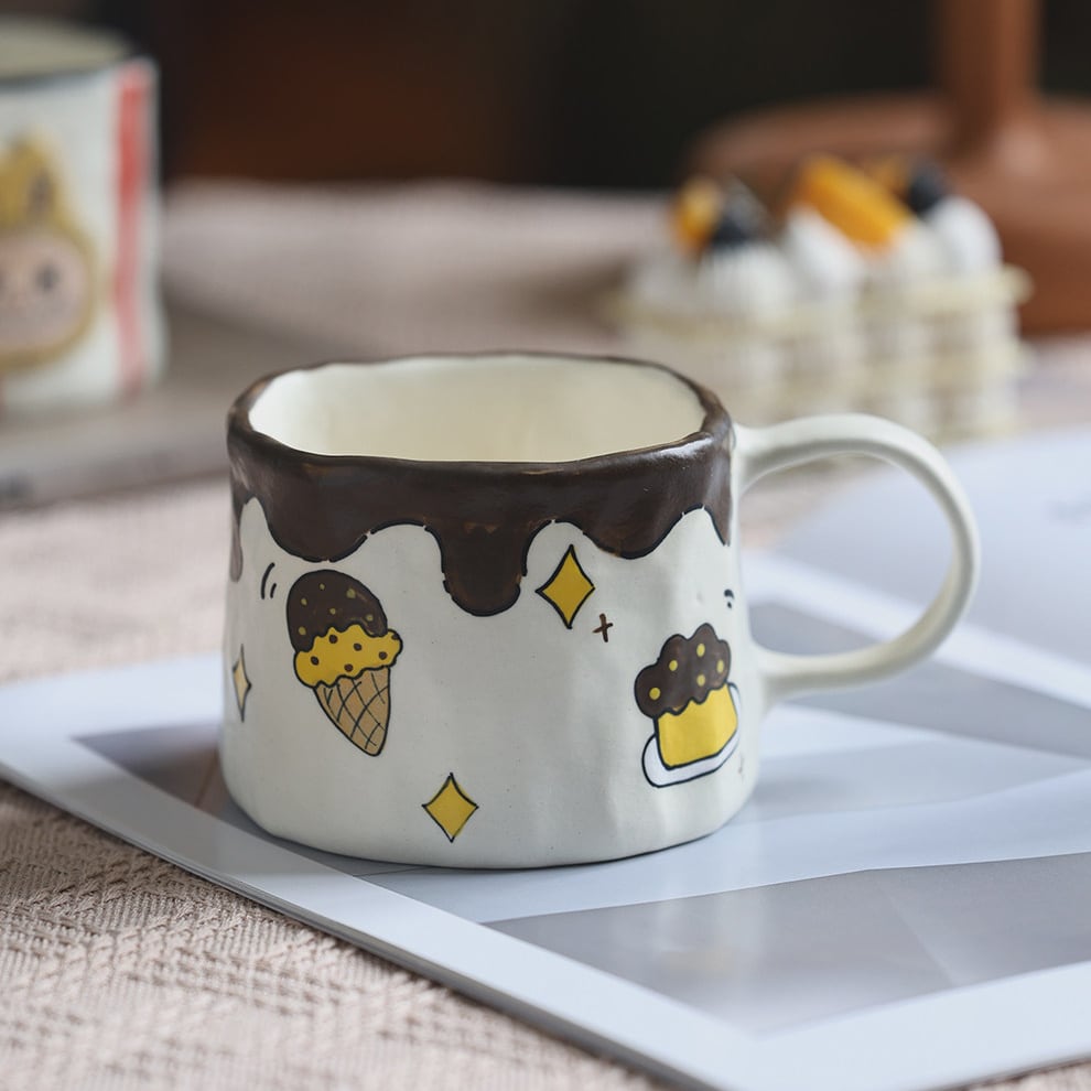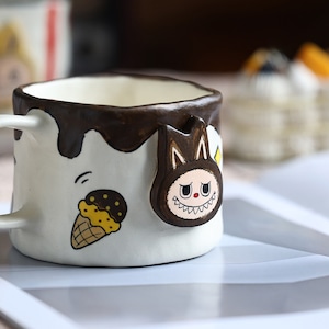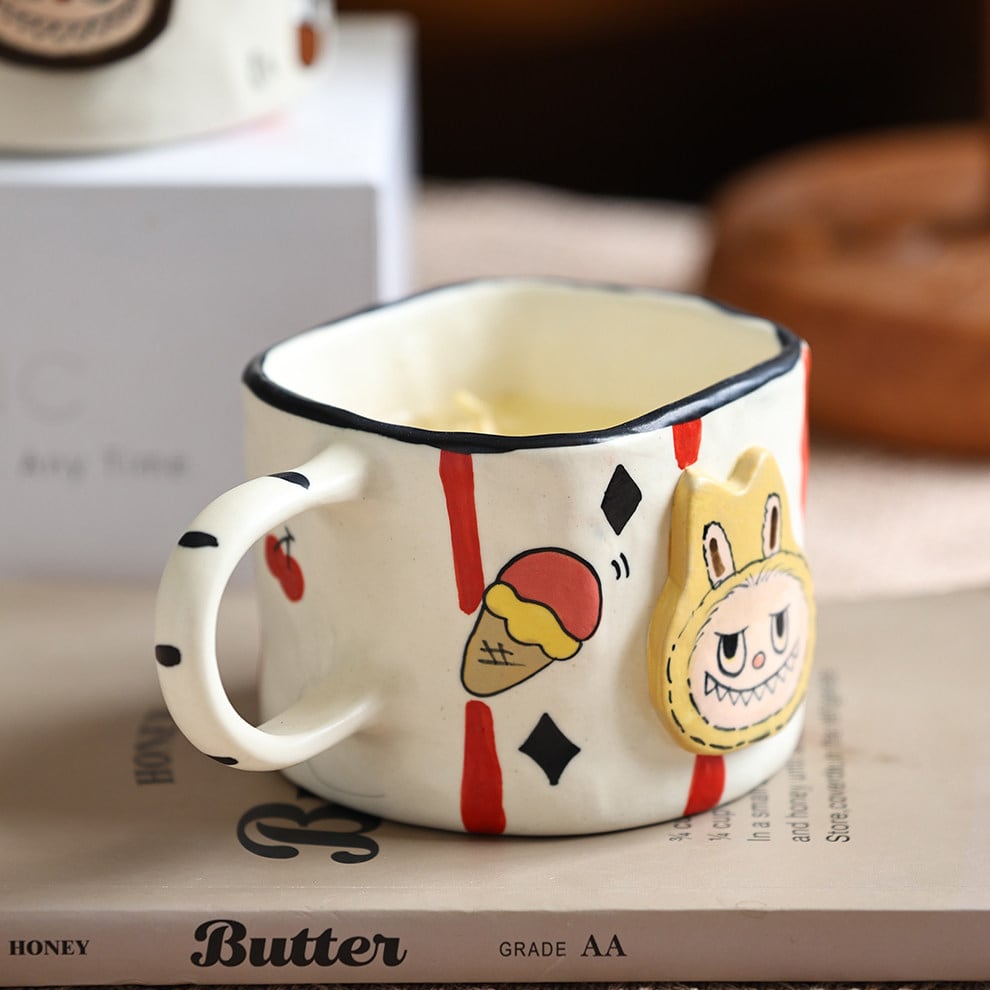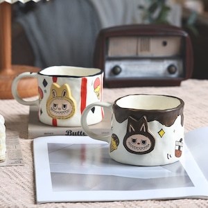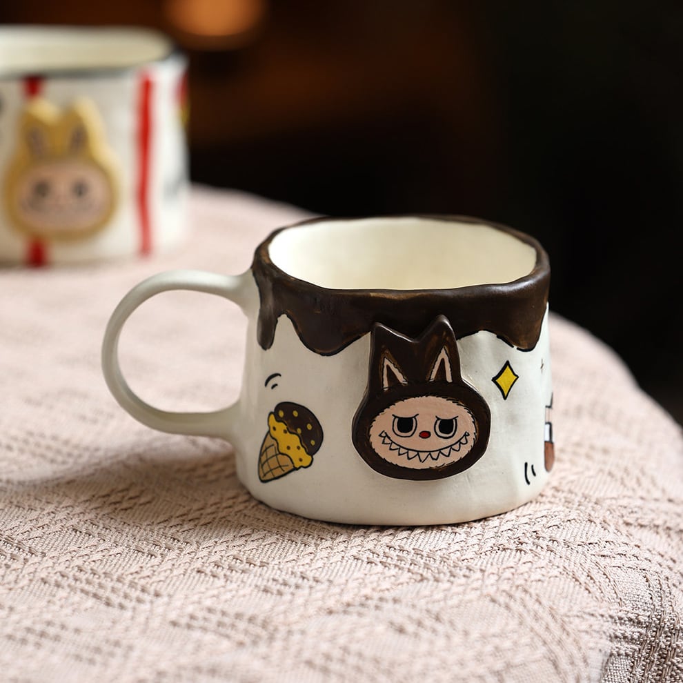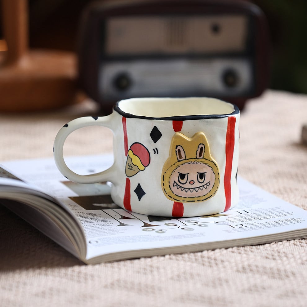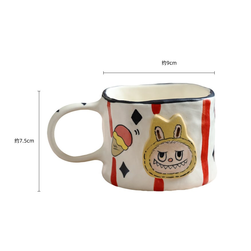 オフィスでほっこり。スクエア型がユニーク!labubu ラブブの陶器マグカップ|アートのような可愛さ オフィスギフトにも 大人可愛いラブブデザイン