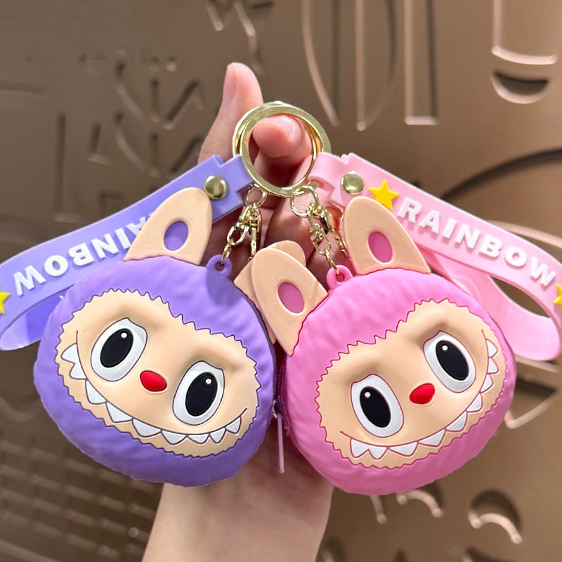 【柔らかくて丈夫】超実用!Labubu ソフトシリコン 小銭入れチャーム - キーホルダーとしても使える、へたらない可愛い収納 バッグにぶら下げるだけで癒される