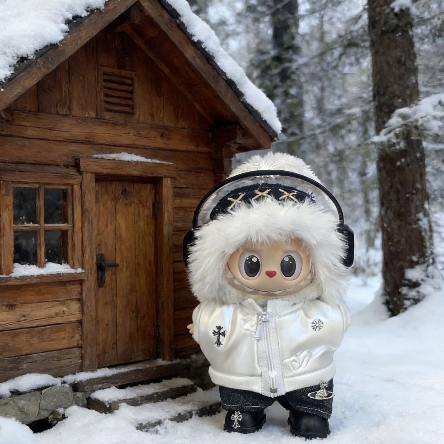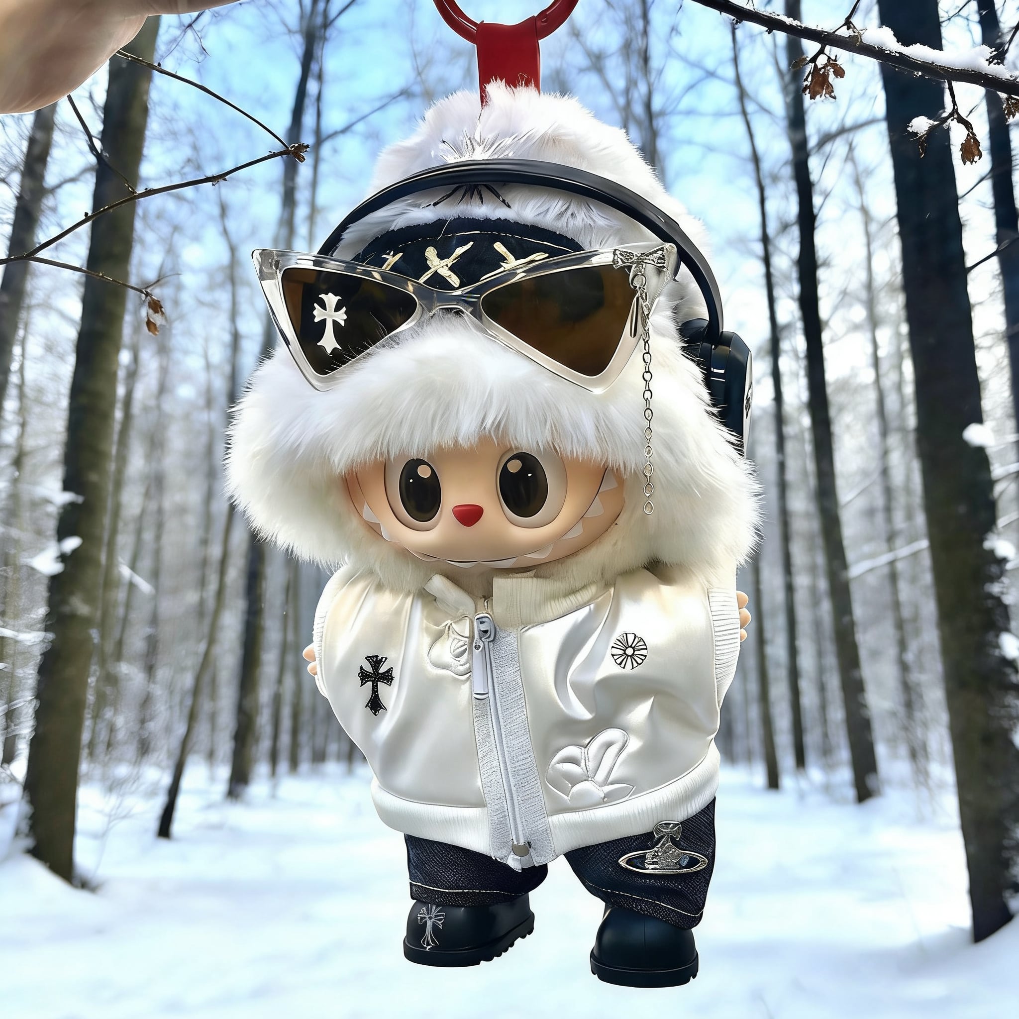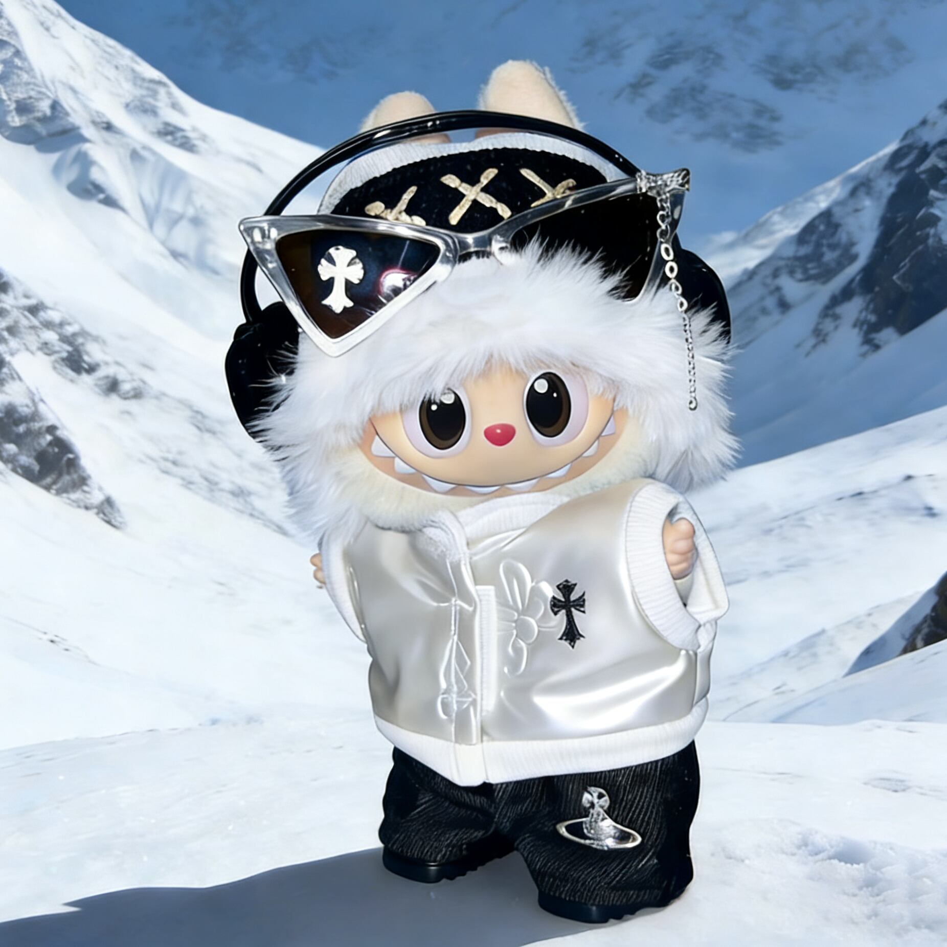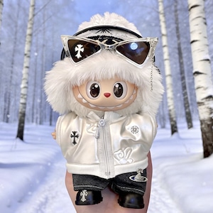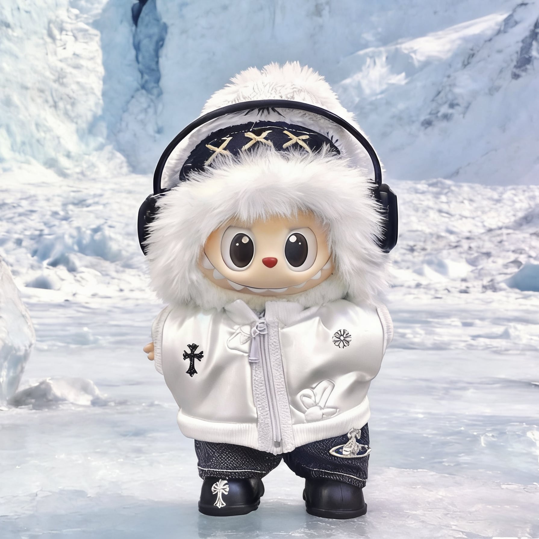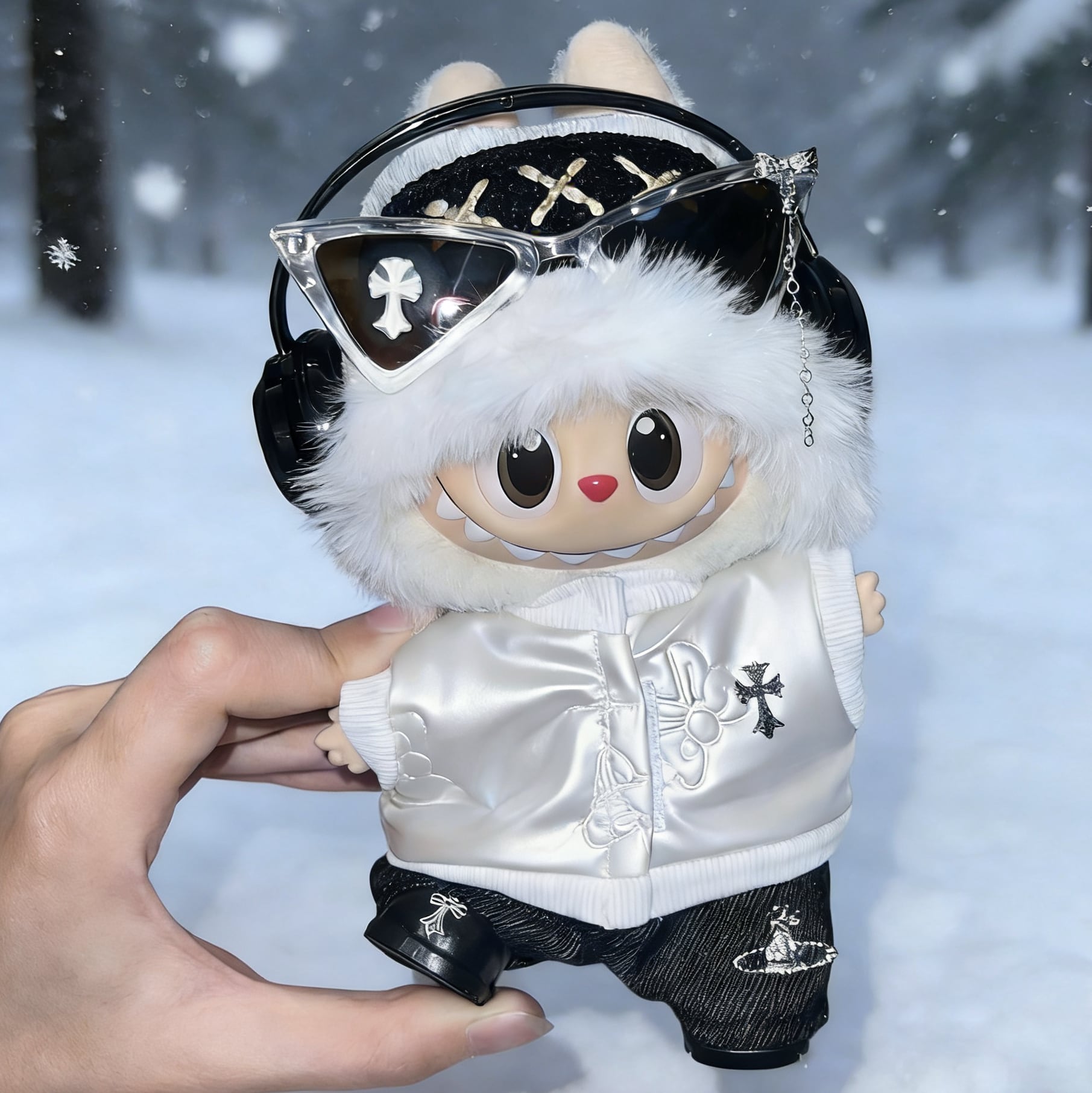 可愛すぎる!冬限定 シルバーコーデ♡ Labubu 冬のふわふわ帽子コーデ シルバープレス加工 全6点 17cm人形用 まるごとコーデ フルセット おしゃれ 可愛い
