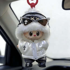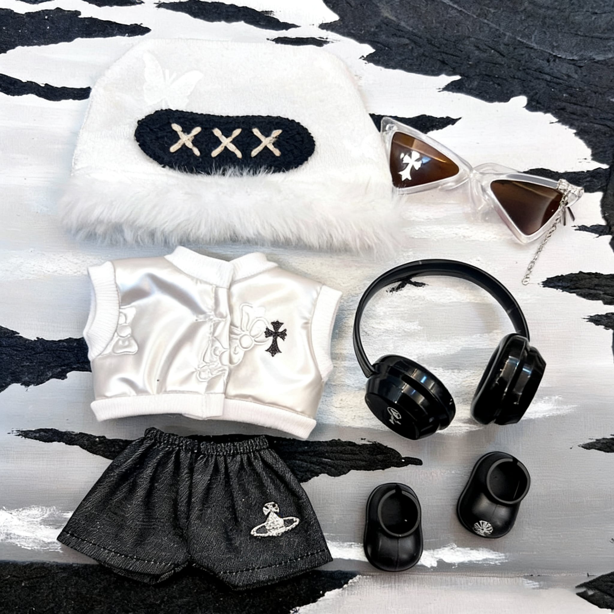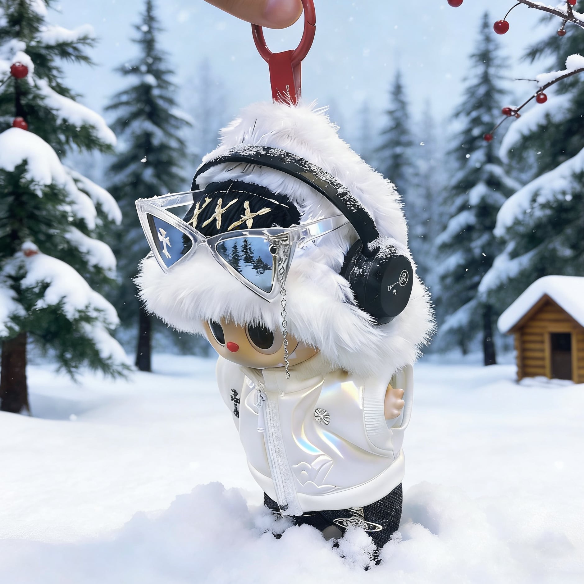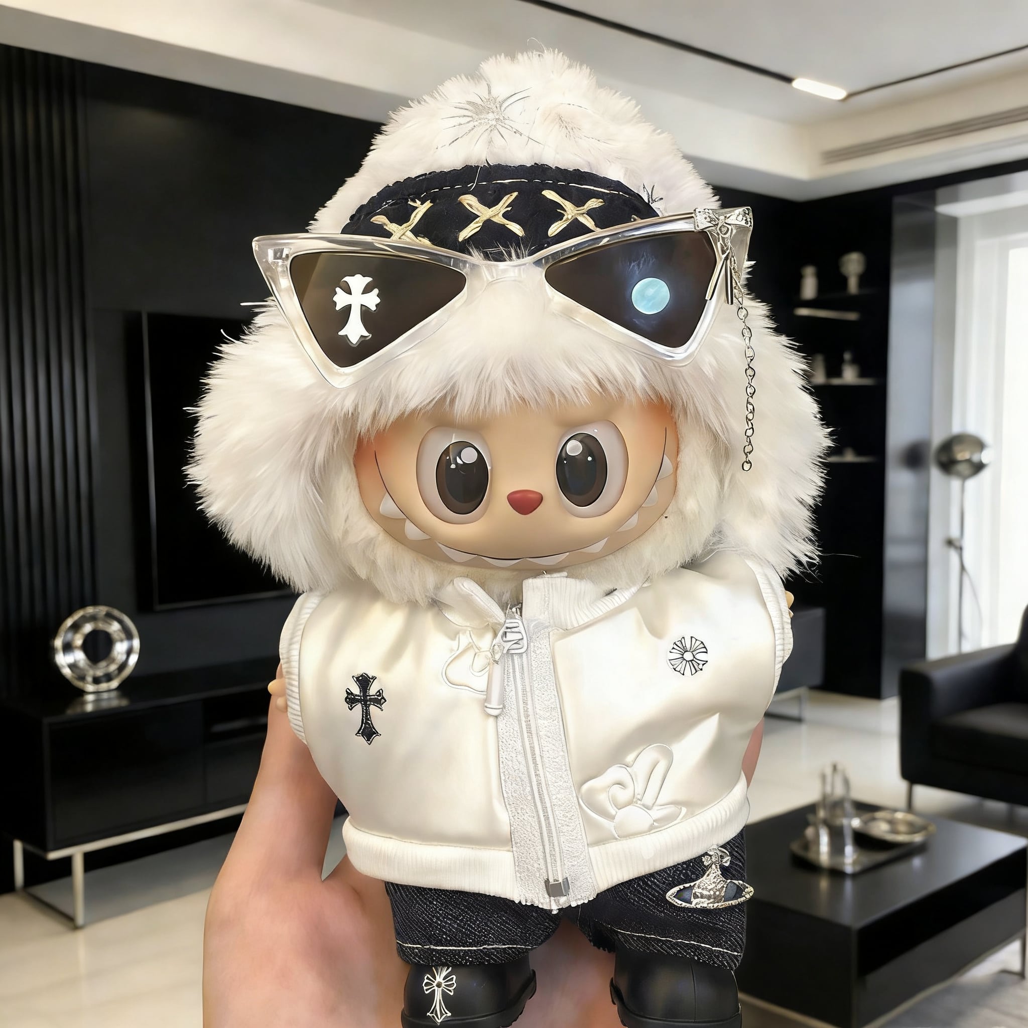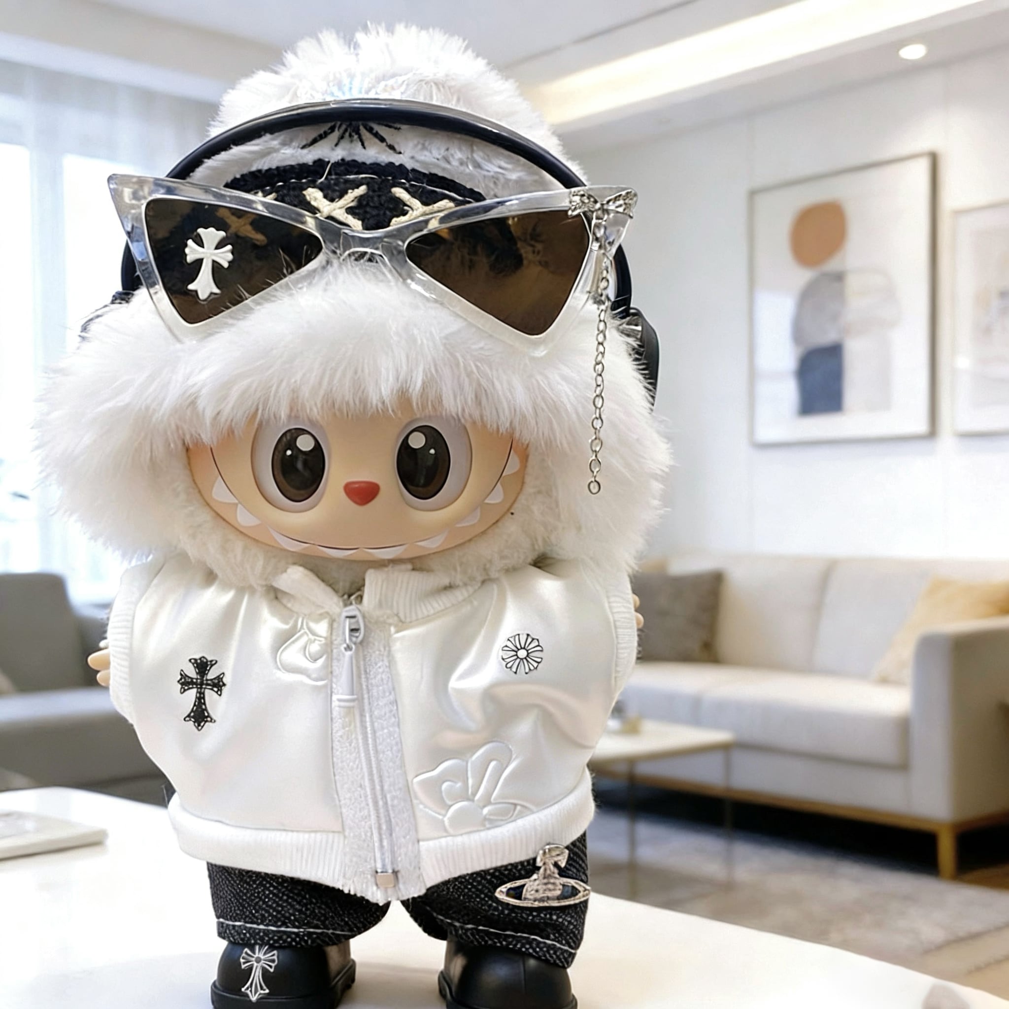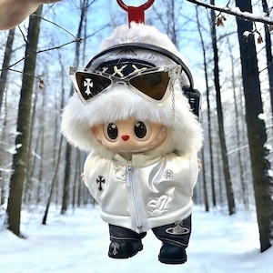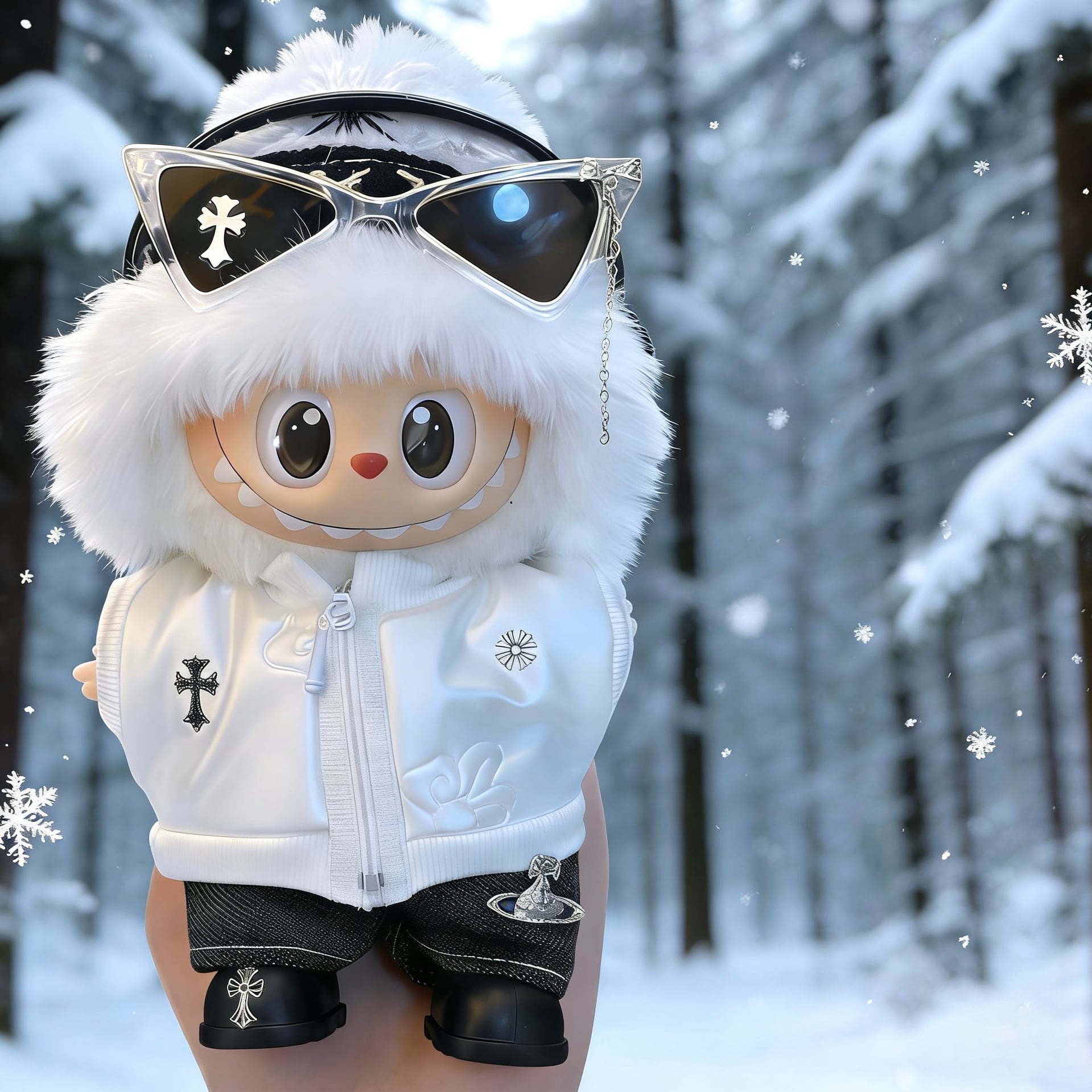 可愛すぎる!冬限定 シルバーコーデ♡ Labubu 冬のふわふわ帽子コーデ シルバープレス加工 全6点 17cm人形用 まるごとコーデ フルセット おしゃれ 可愛い