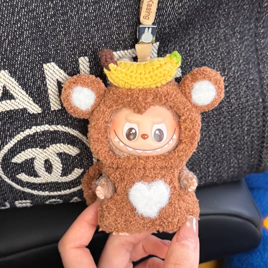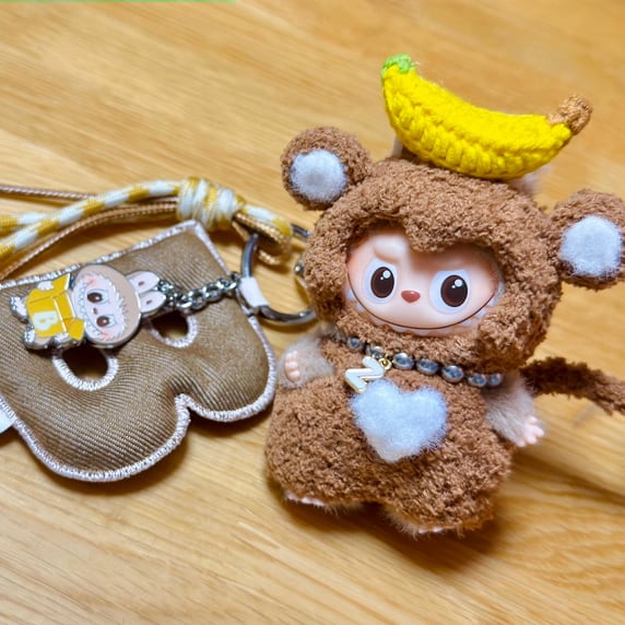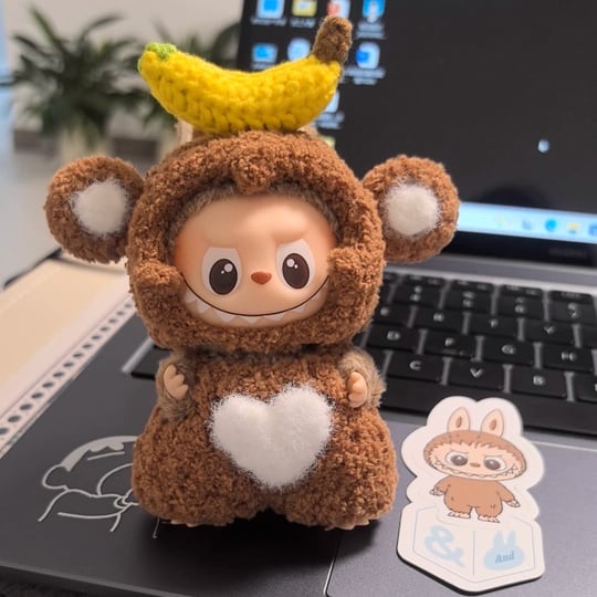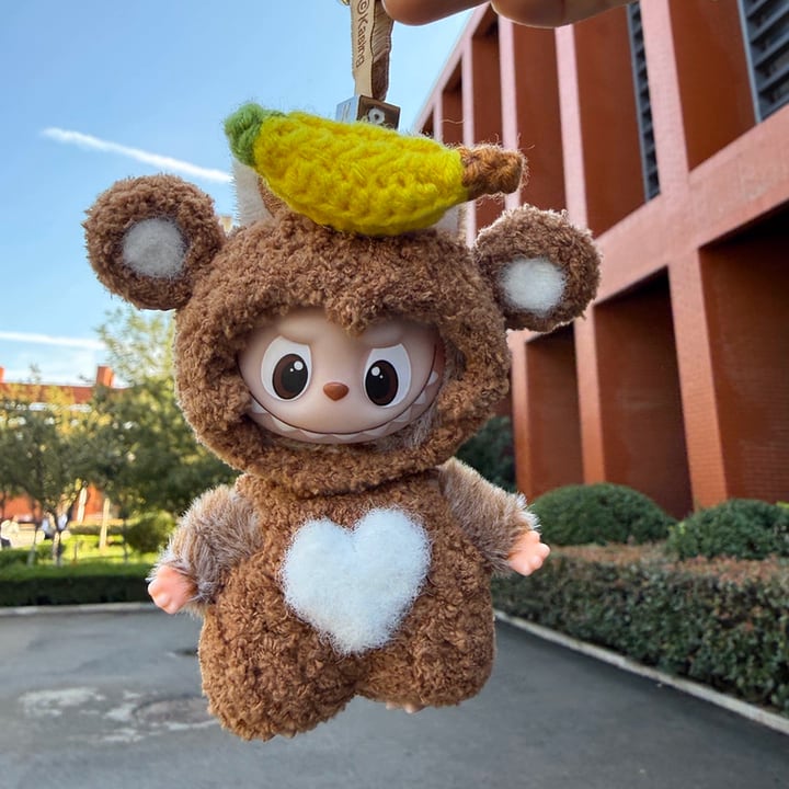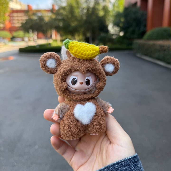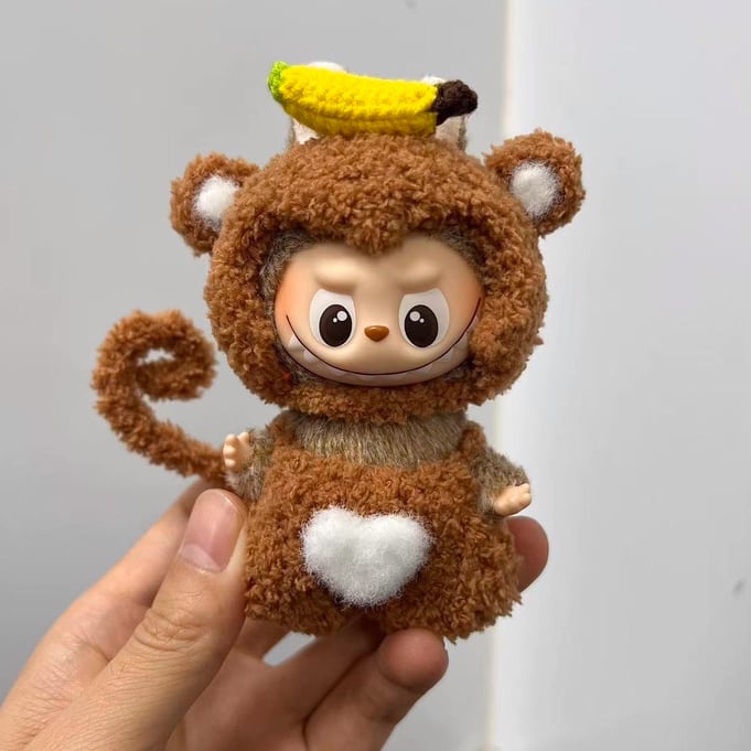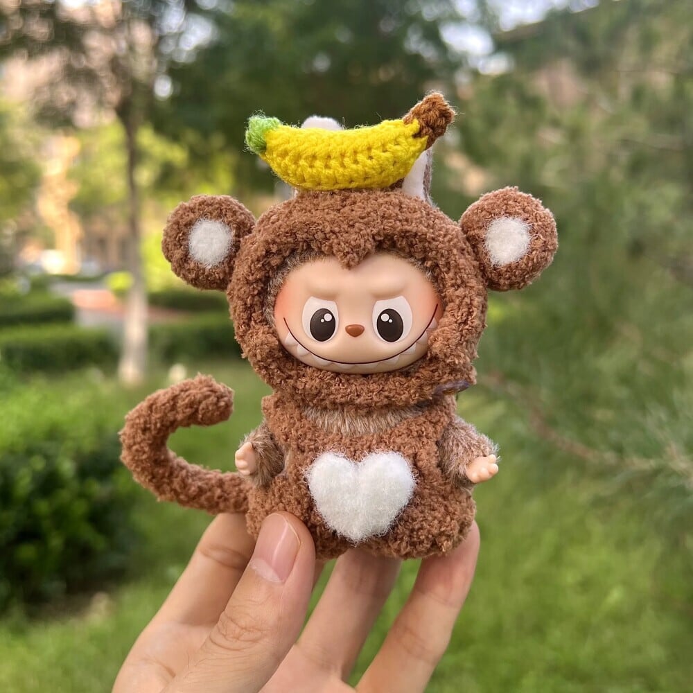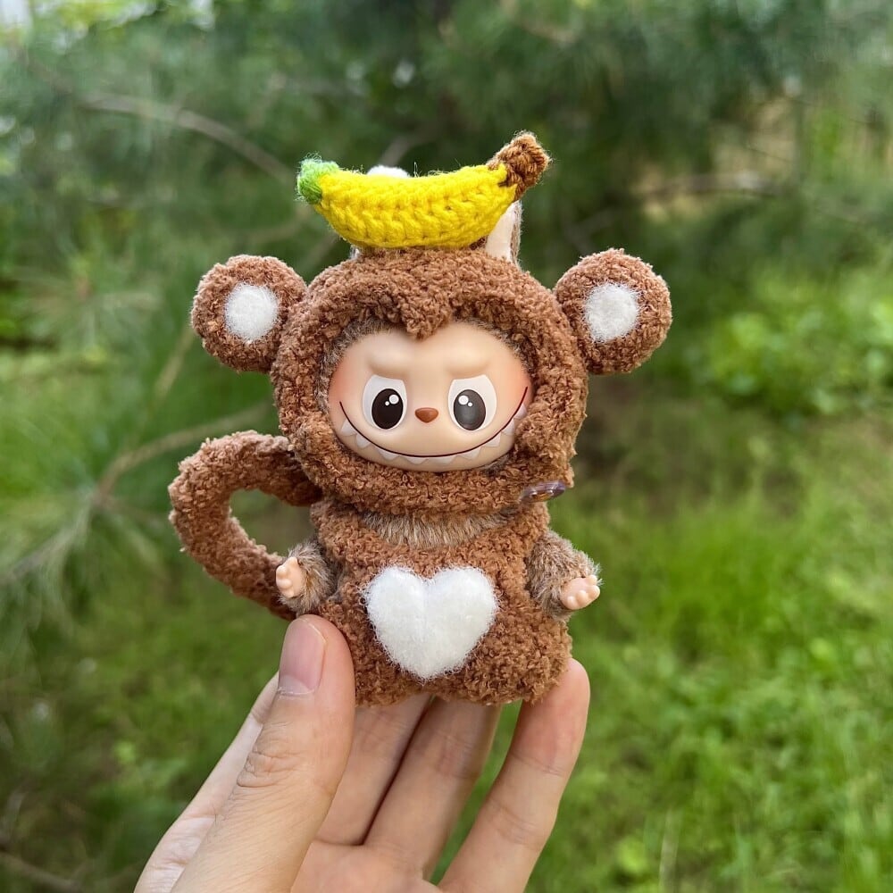 たまらない可愛さ!Labubu 4.0 お猿とバナナ デザイン フリースコーデセット(10cm用)立体デザインが可愛い ミニラブブ 着せ替えセット