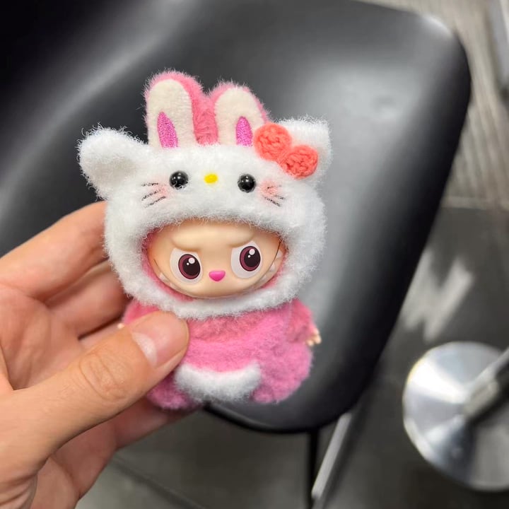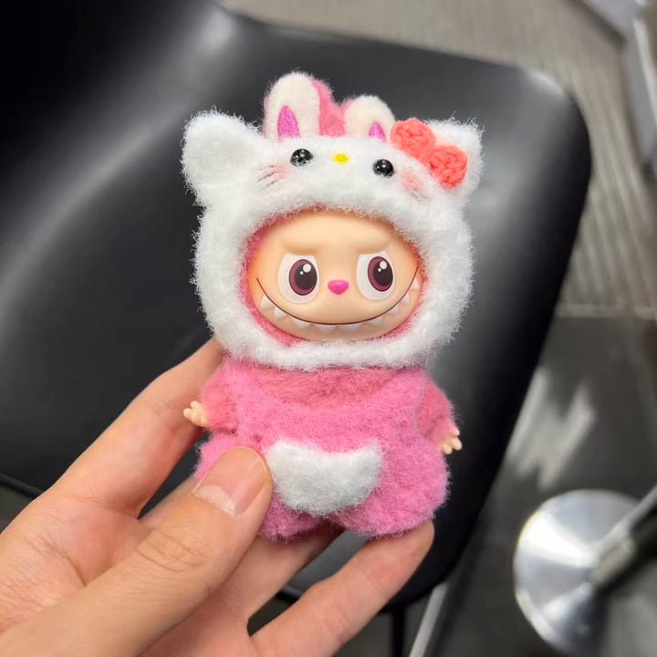 癒やし系の可愛さ!Labubu 4.0 猫ちゃん風 極上ニットコーデセット 10cm用 高いフィット感で可愛さ最大限 萌え専用フリース