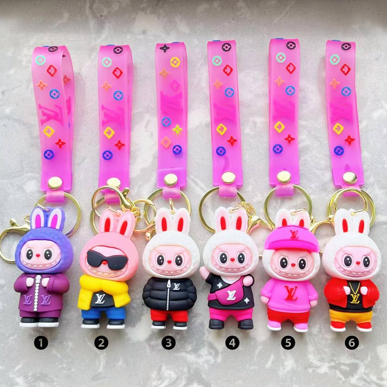 立体フィギュア labubu シリコンキーホルダー - 柔らかい バッグチャーム かわいい アクセサリー シリコン製 かわいいデザイン キーホルダー バッグ飾り トレンド小物