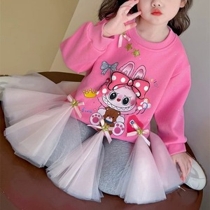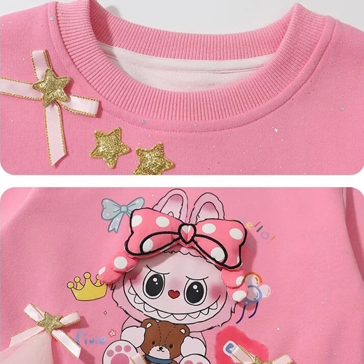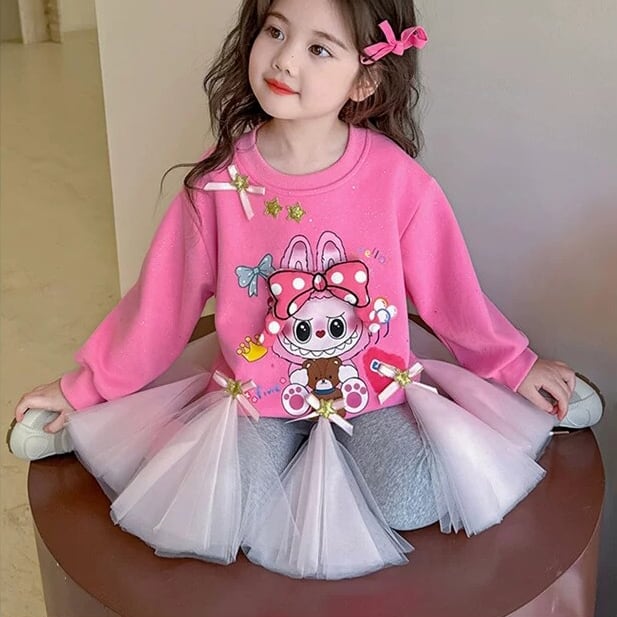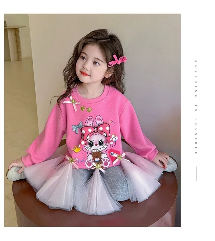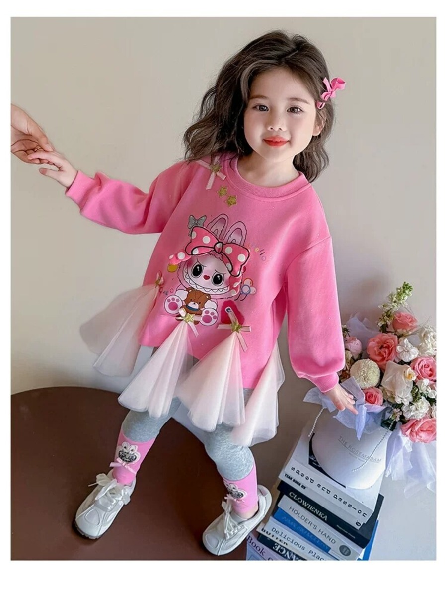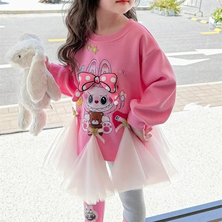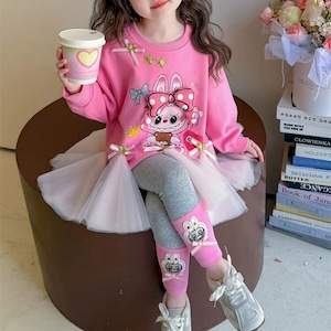 【ワンピース&レギンス セットアップ】甘かわいい labubu ラブブ 子供服 セット - 女の子 パーカーワンピース レギンス 立体リボン 90〜140cm 春 秋 女の子 普段着