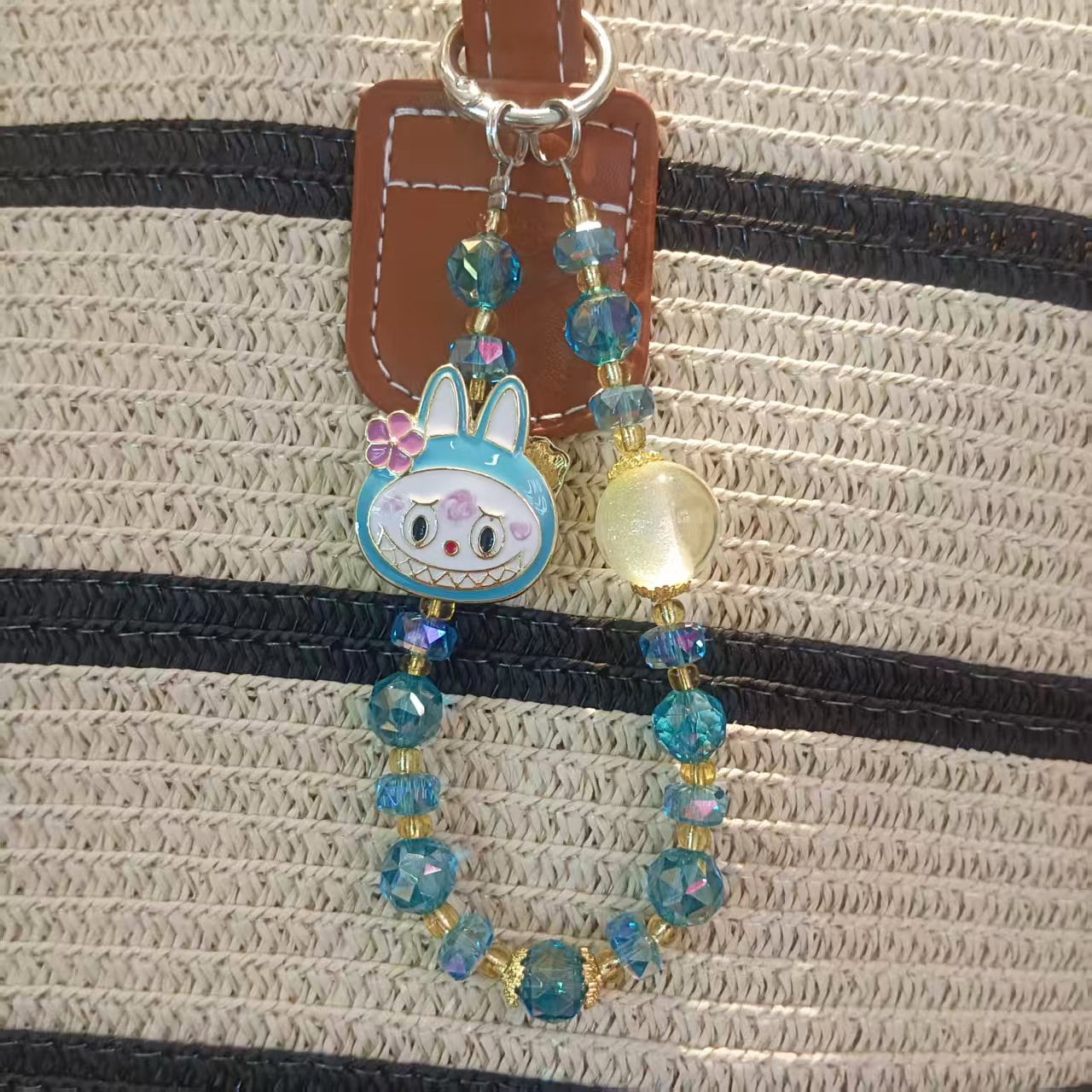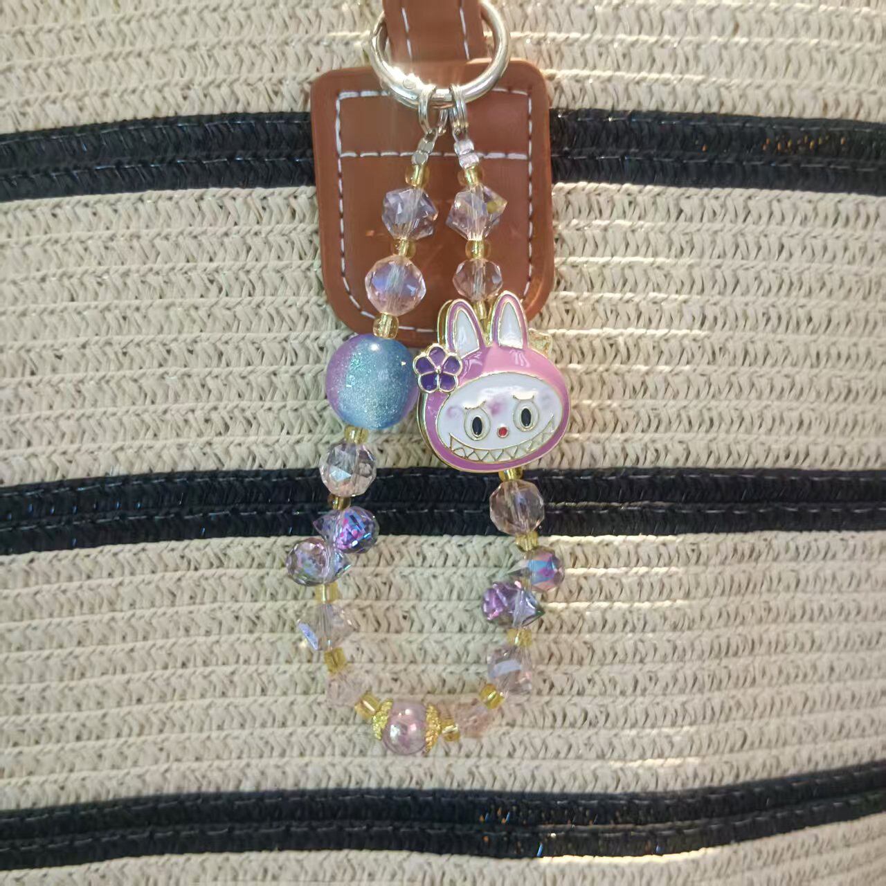 本格的な滴油加工!labubu ラブブ 高級合金滴油チャーム キラキラ水晶ビーズ アクセサリー 5色展開 携帯ストラップ・バッグチャーム・キーホルダー 3役として