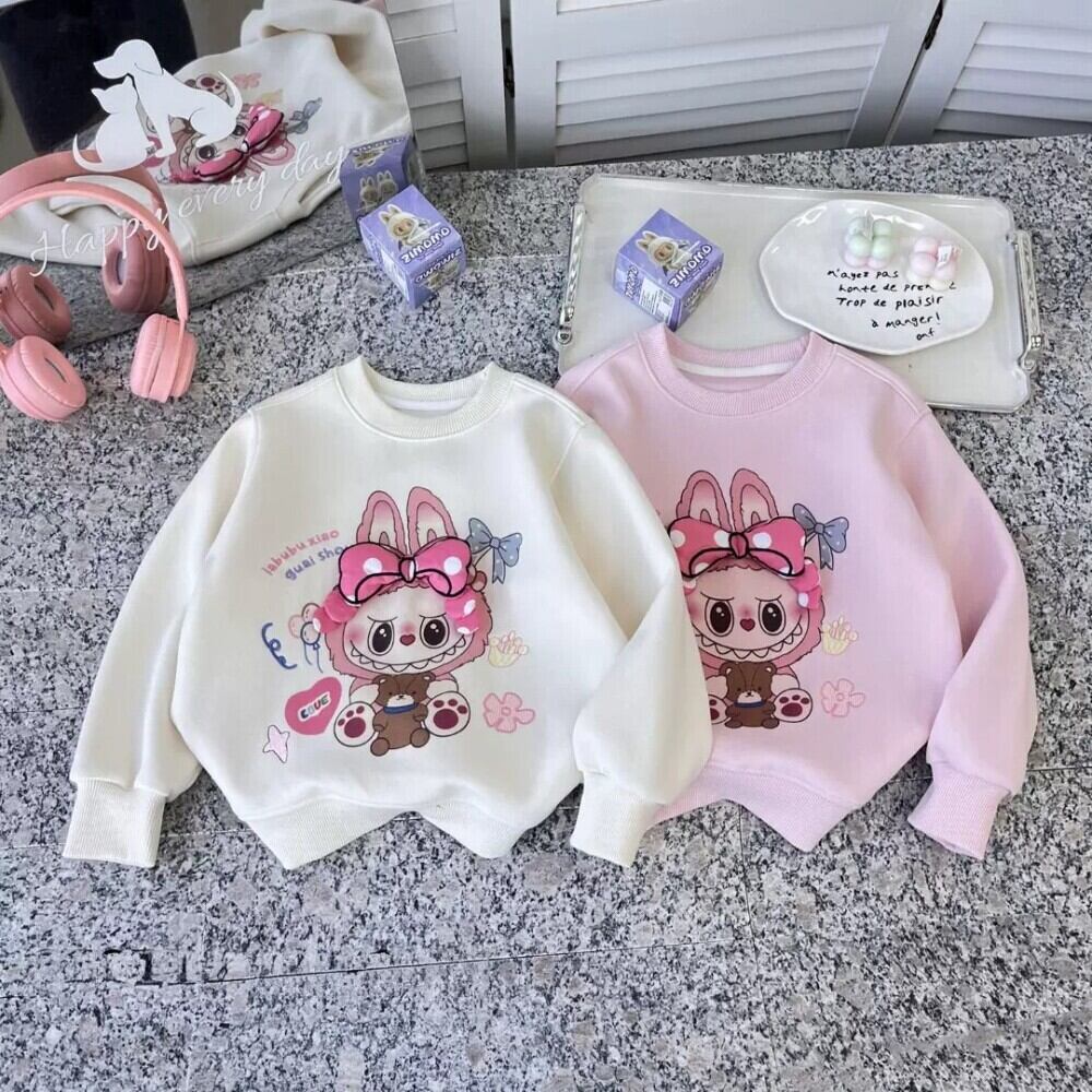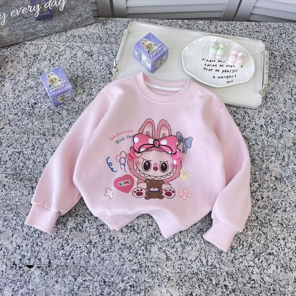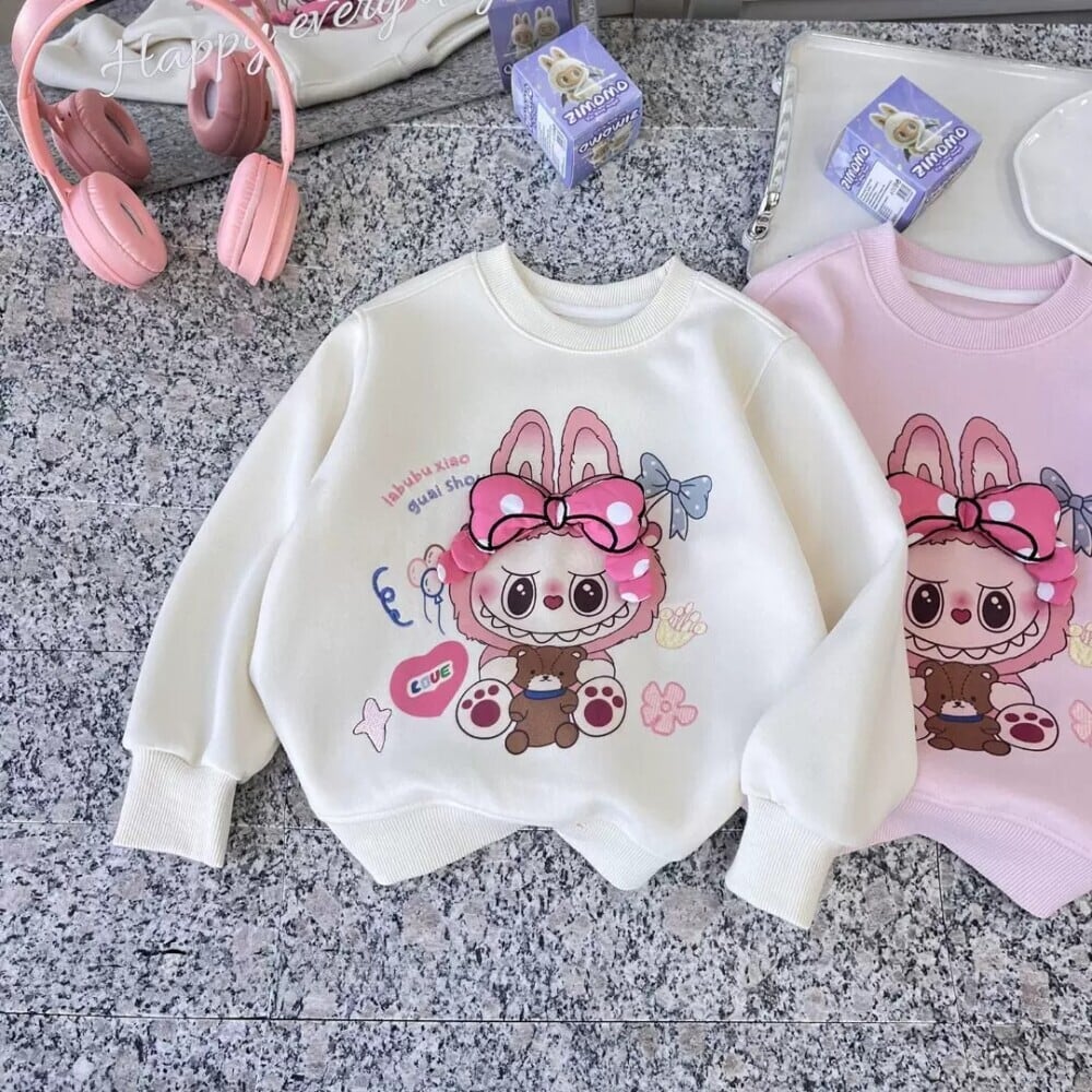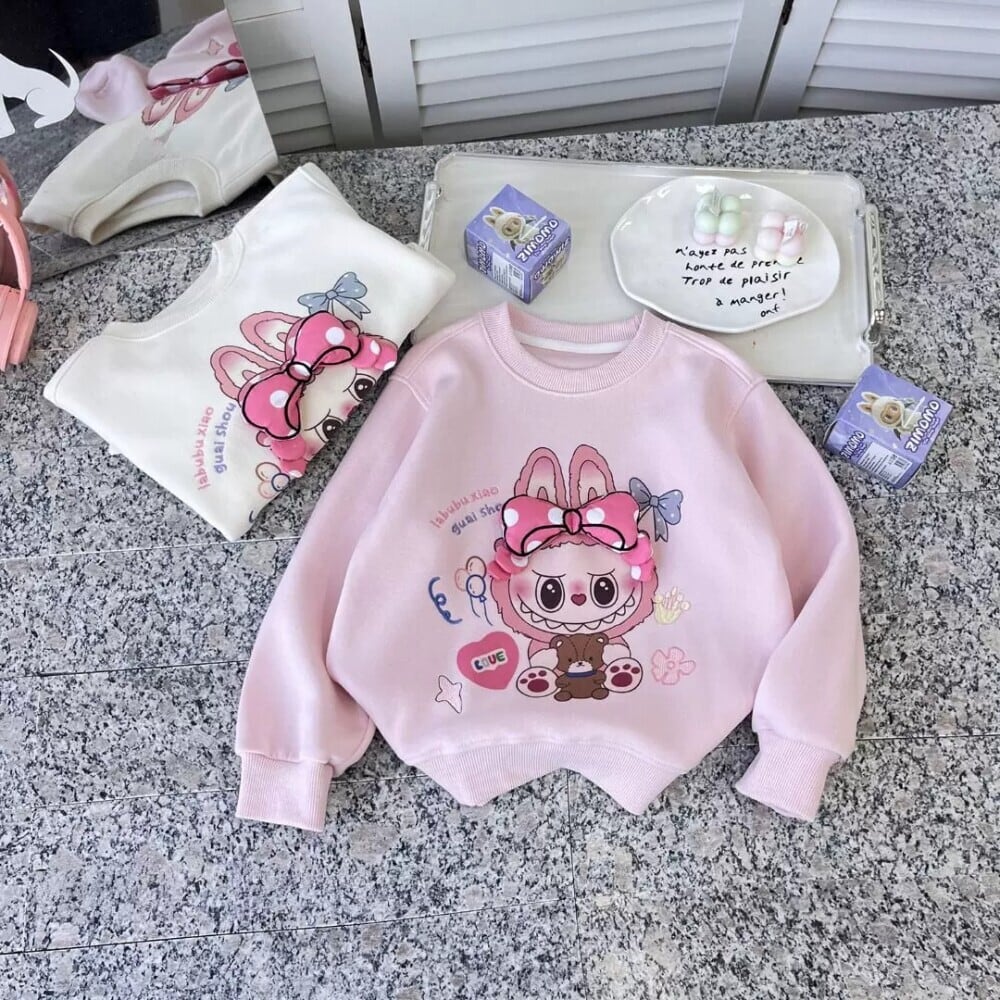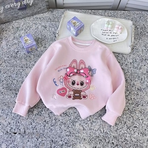 めっちゃ可愛い立体リボン!labubu ラブブ柄 女の子パーカー 110-150cm 春・秋 トレンドトップス 丸首 子供服 デイリーコーデに簡単おしゃれアップ