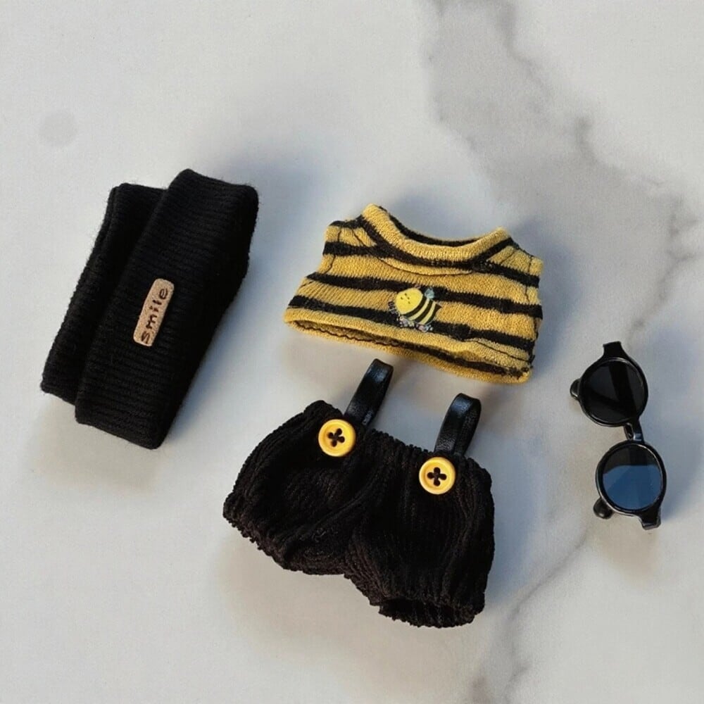 Labubu 10cm 4.0対応 ミツバチ3点セット+サングラス+イエローブーツ 5点フルコーデ 着せ替え服 ぬいぐるみ用 可愛い おしゃれ 高品質 ハチ