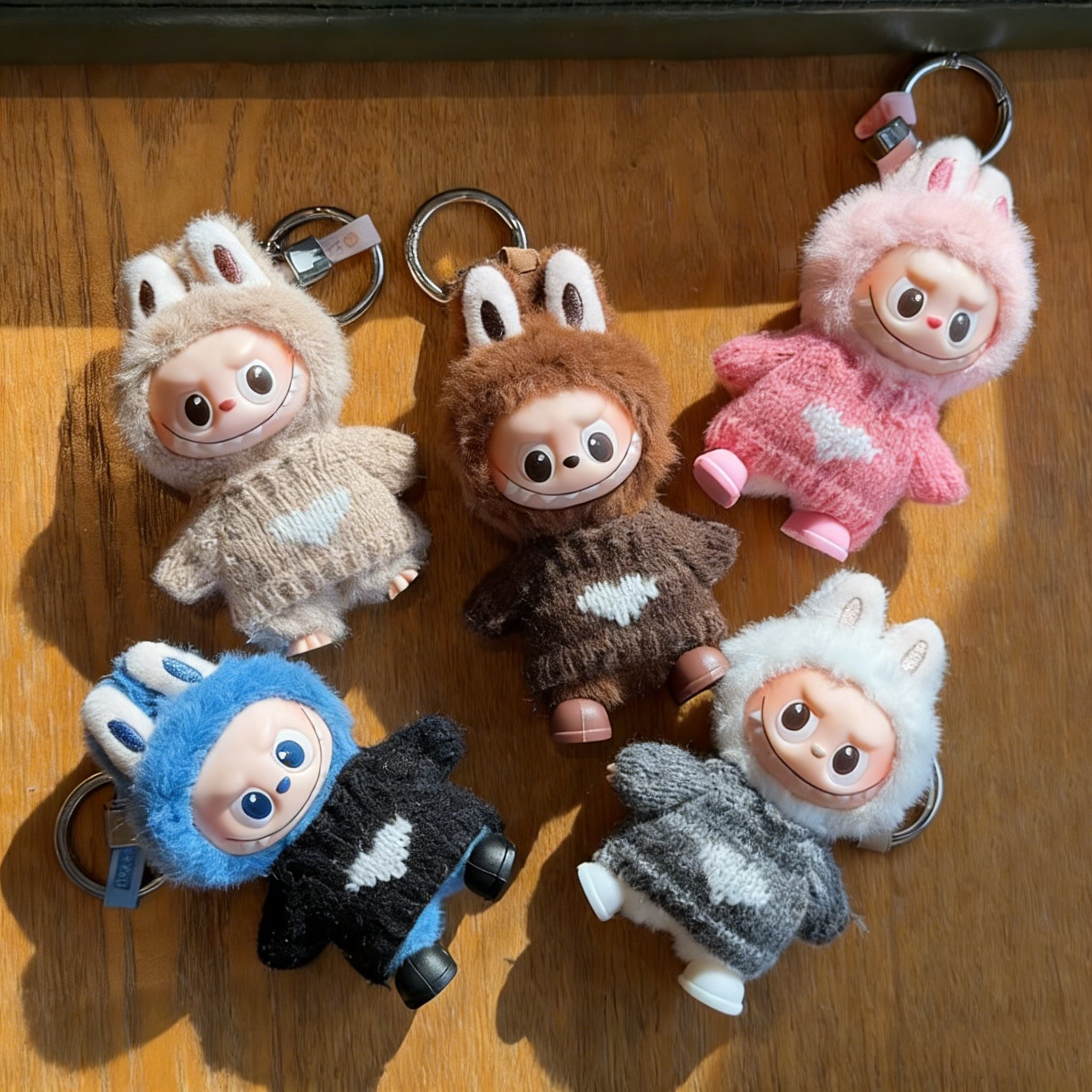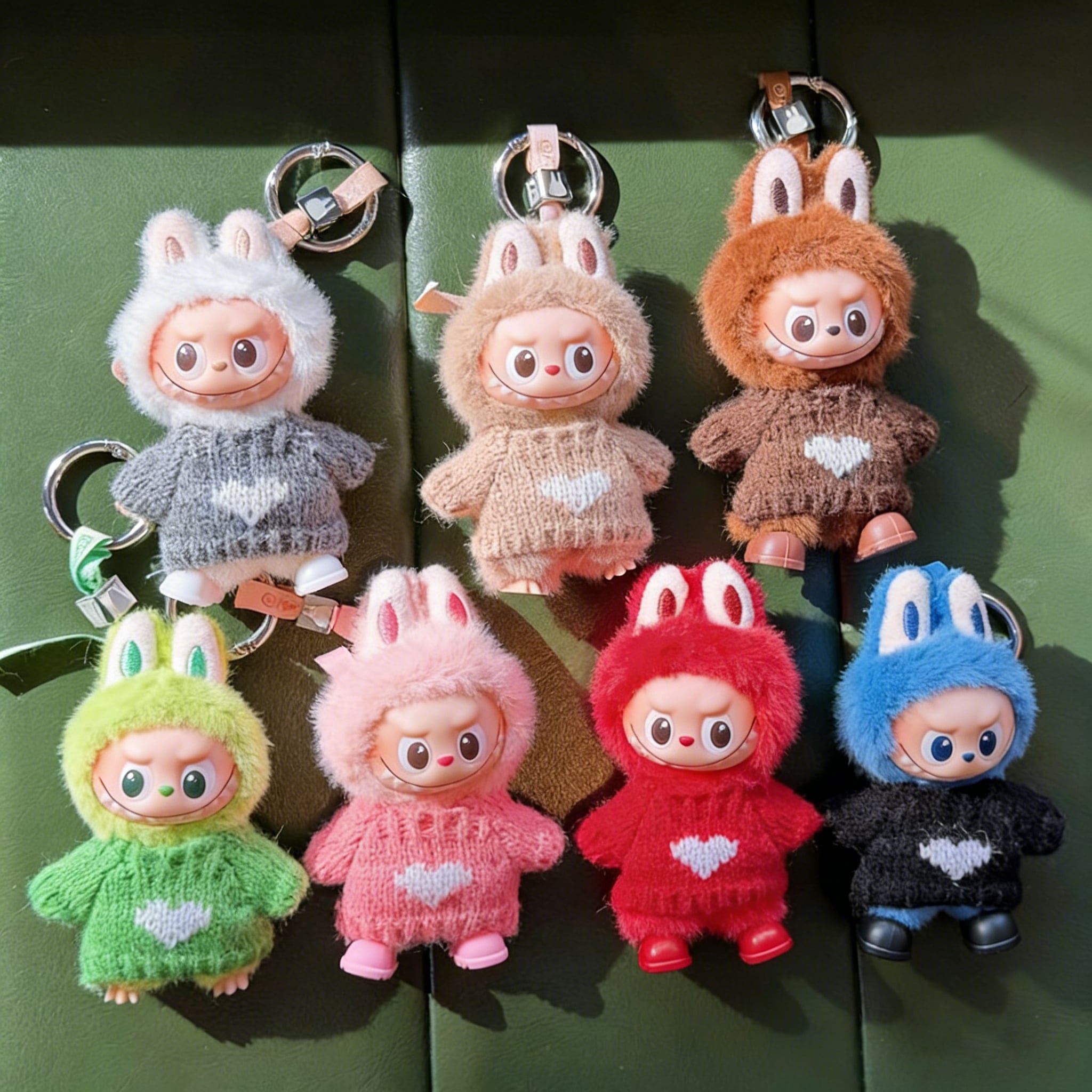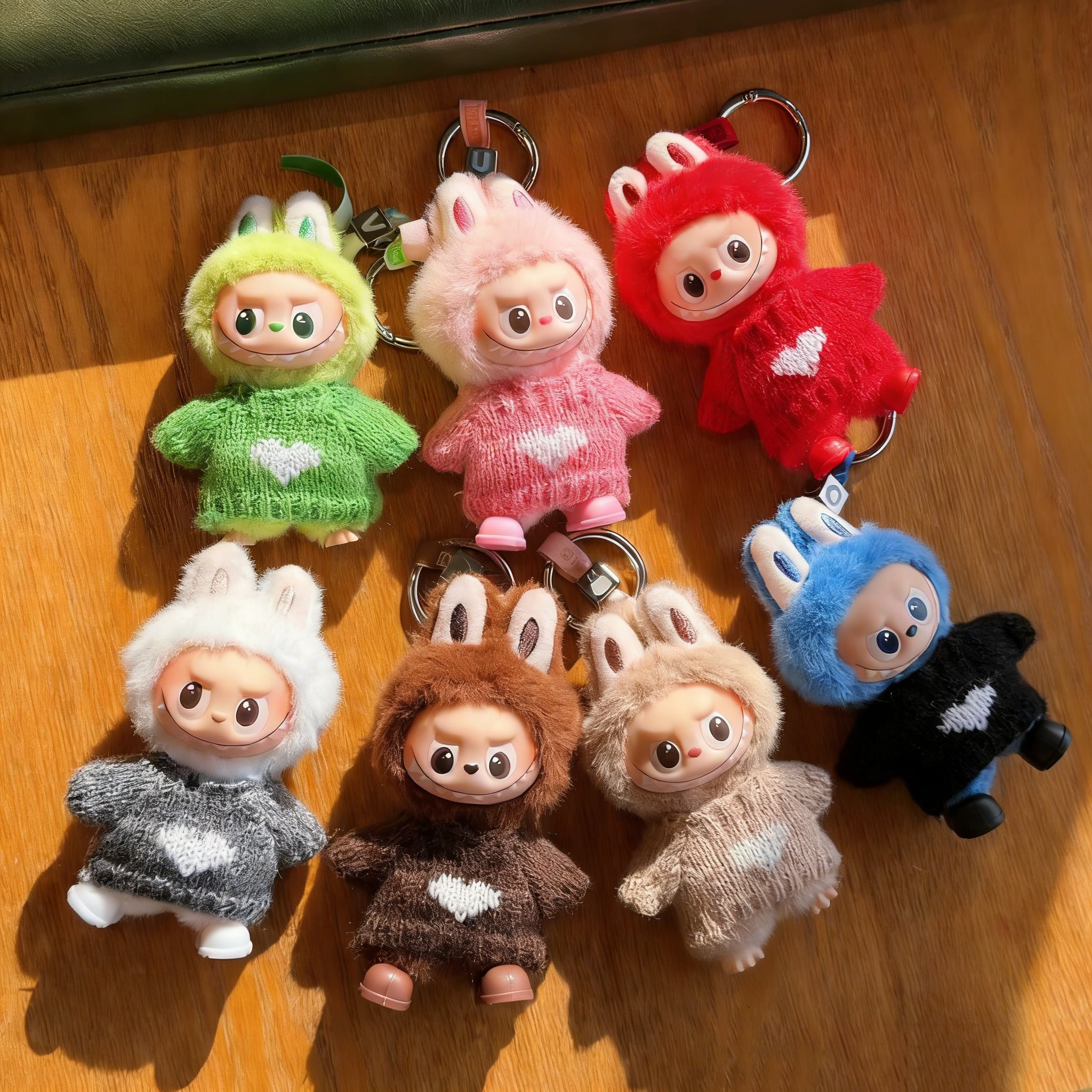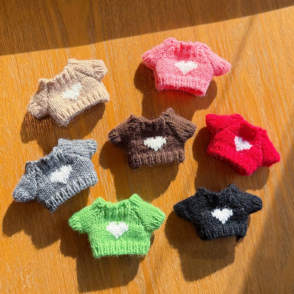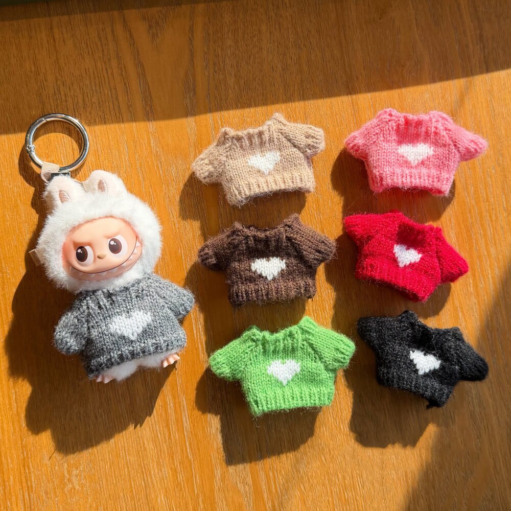 激安!おしゃれ 萌えコーデ!Labubu 10cm 4.0 ハートニット 7カラー ふわふわ柔らかセーター 可愛い着せ替え ぬいぐるみ服 ラブブ