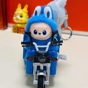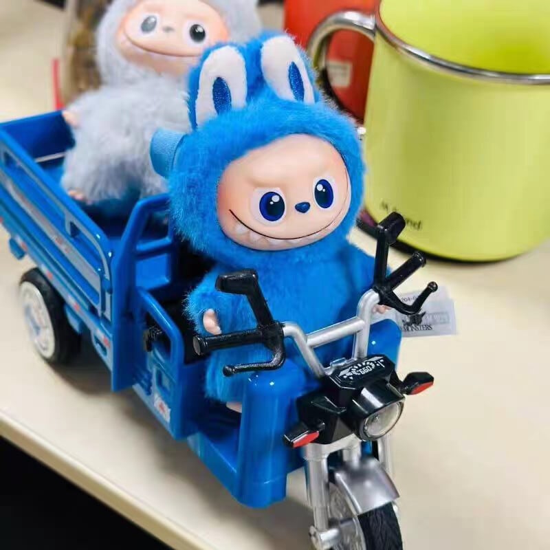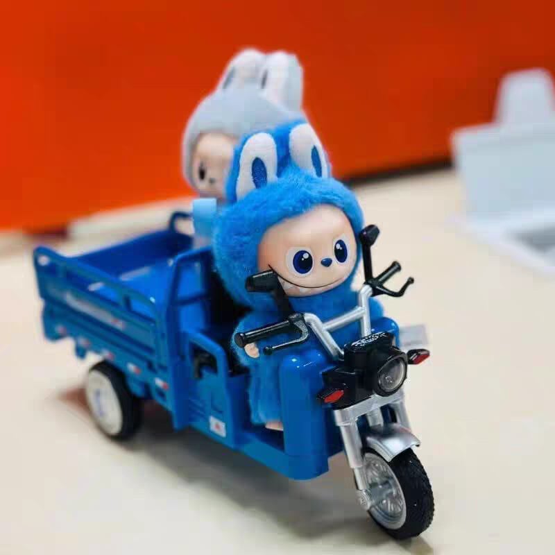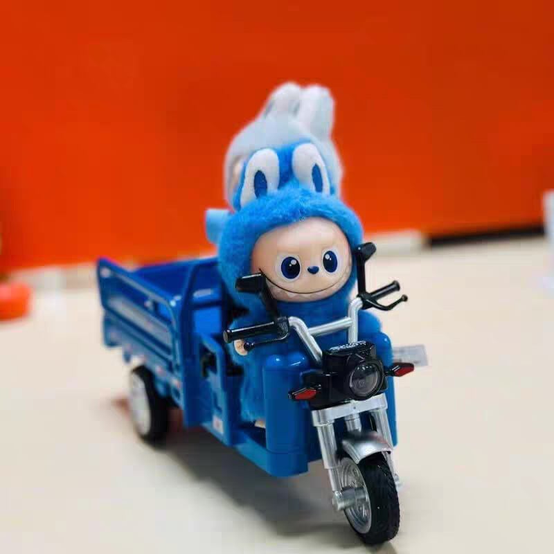 Labubu 10cm 4.0対応 合金製ミニ三輪車 ブルー/赤 フォトジェニック 可愛い ミニカー 撮影用小物 ぬいぐるみ用乗り物 ラブブ専用ビークル コレクション