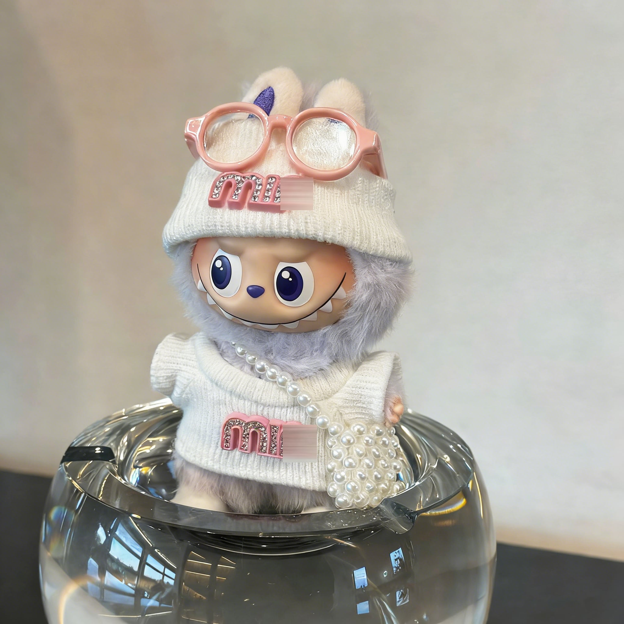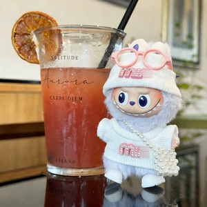 Labubu 10cm 4.0対応 甘め華やかフルセット キラキラロゴトップス+パールバッグ付き 着せ替え服 ぬいぐるみ用 可愛い おしゃれ ラブブ4.0 ギフトにも