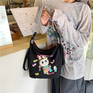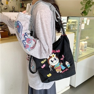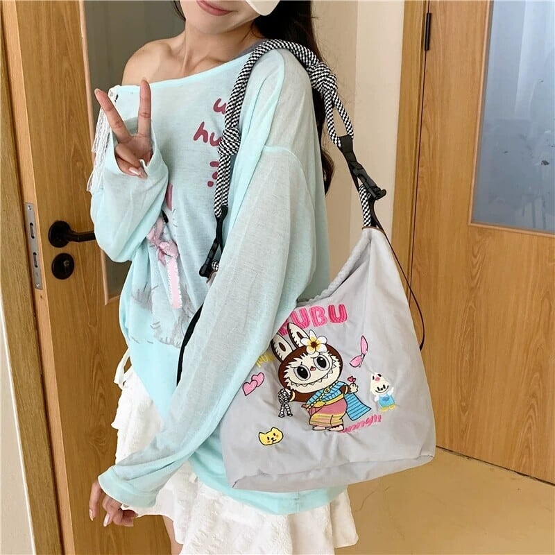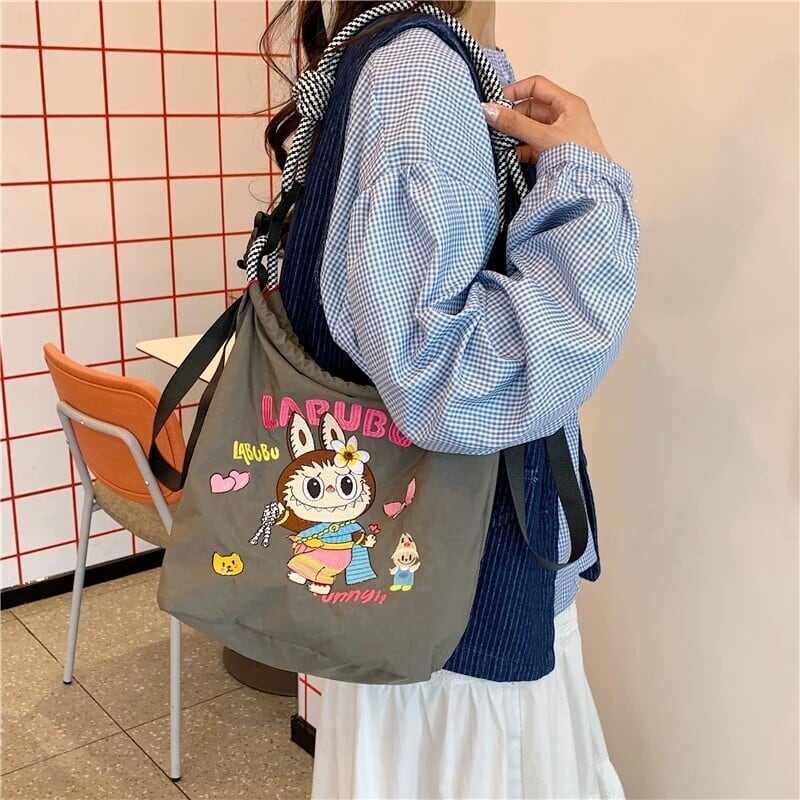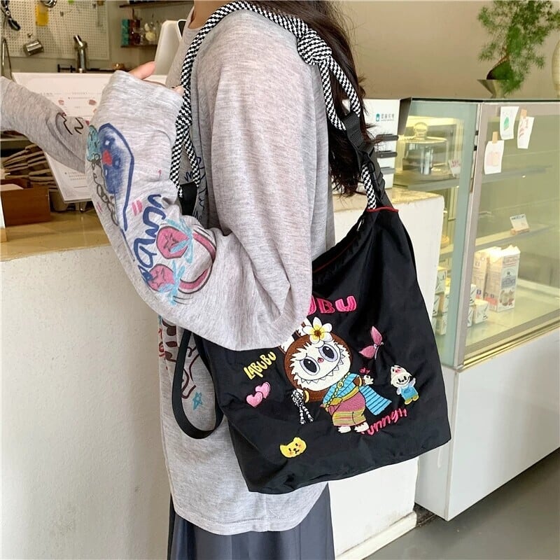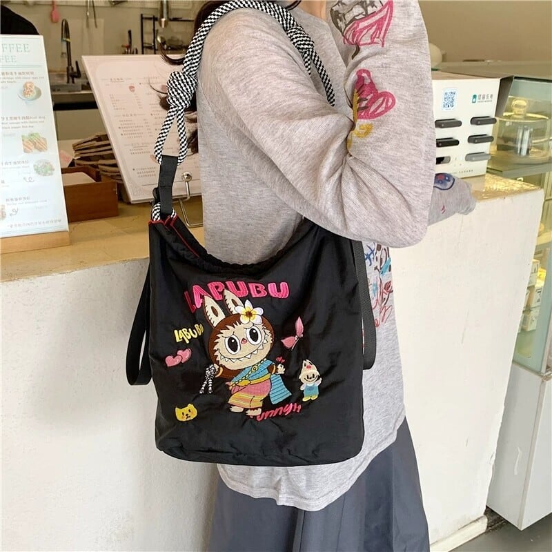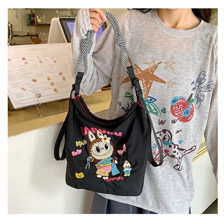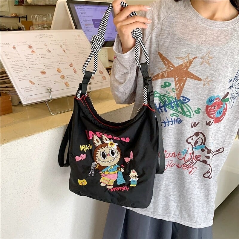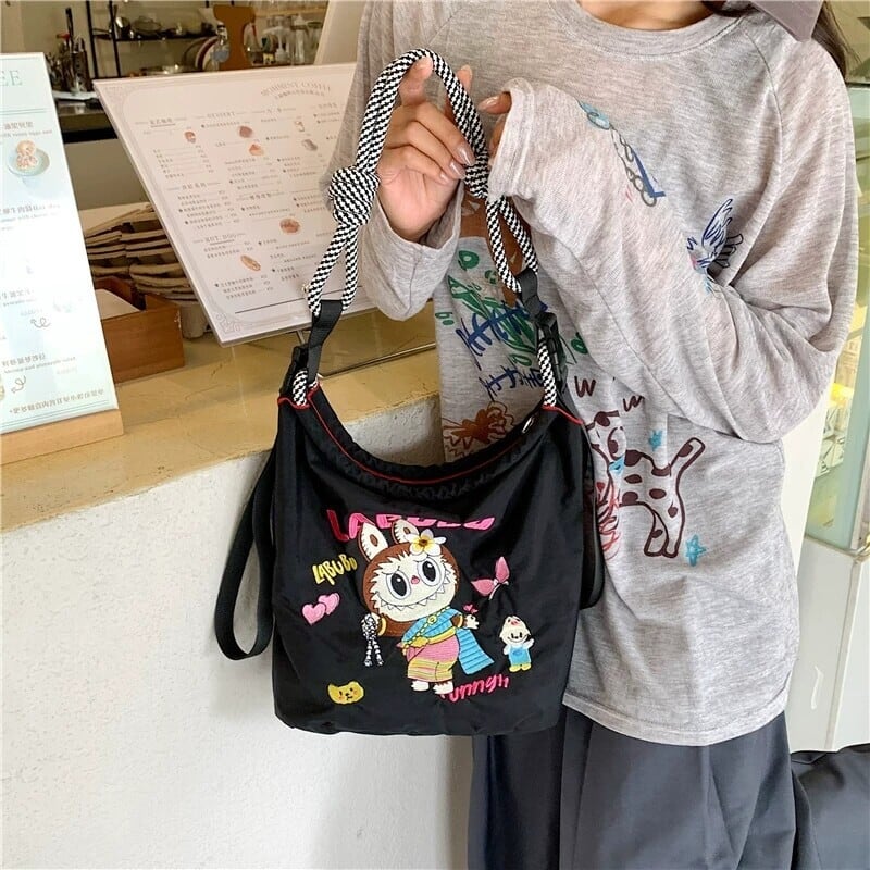【タイ限定】Labubu エコ刺繍ショルダーバッグ 超軽量 可愛い 全3色展開 実用的 デイリー使いにぴったり レディース ショルダーバッグ コレクション