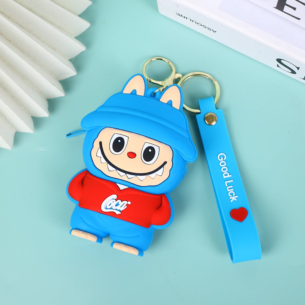 ファスナー付き!labubu ラブブ ソフトシリコン コインケース キーチェーン付き 小物収納 小銭入れ バッグチャーム 可愛い 実用的 携帯便利 プレゼントにも
