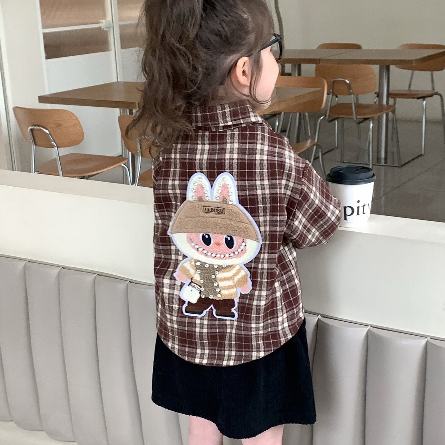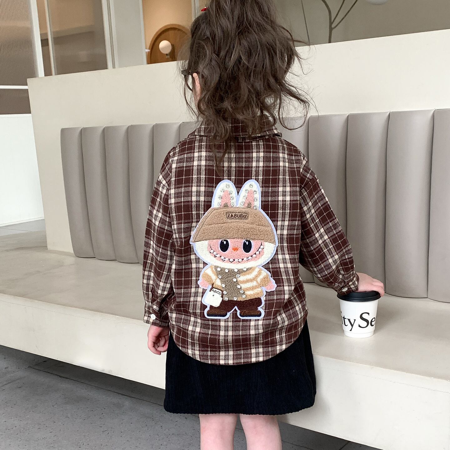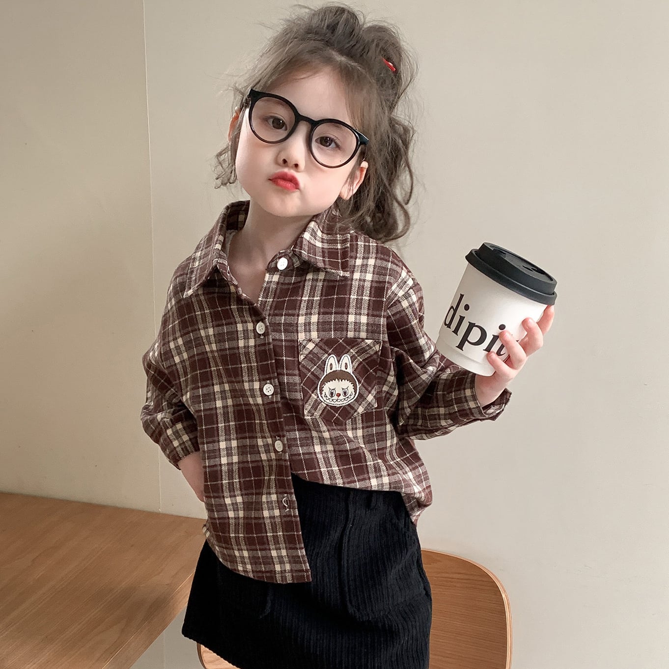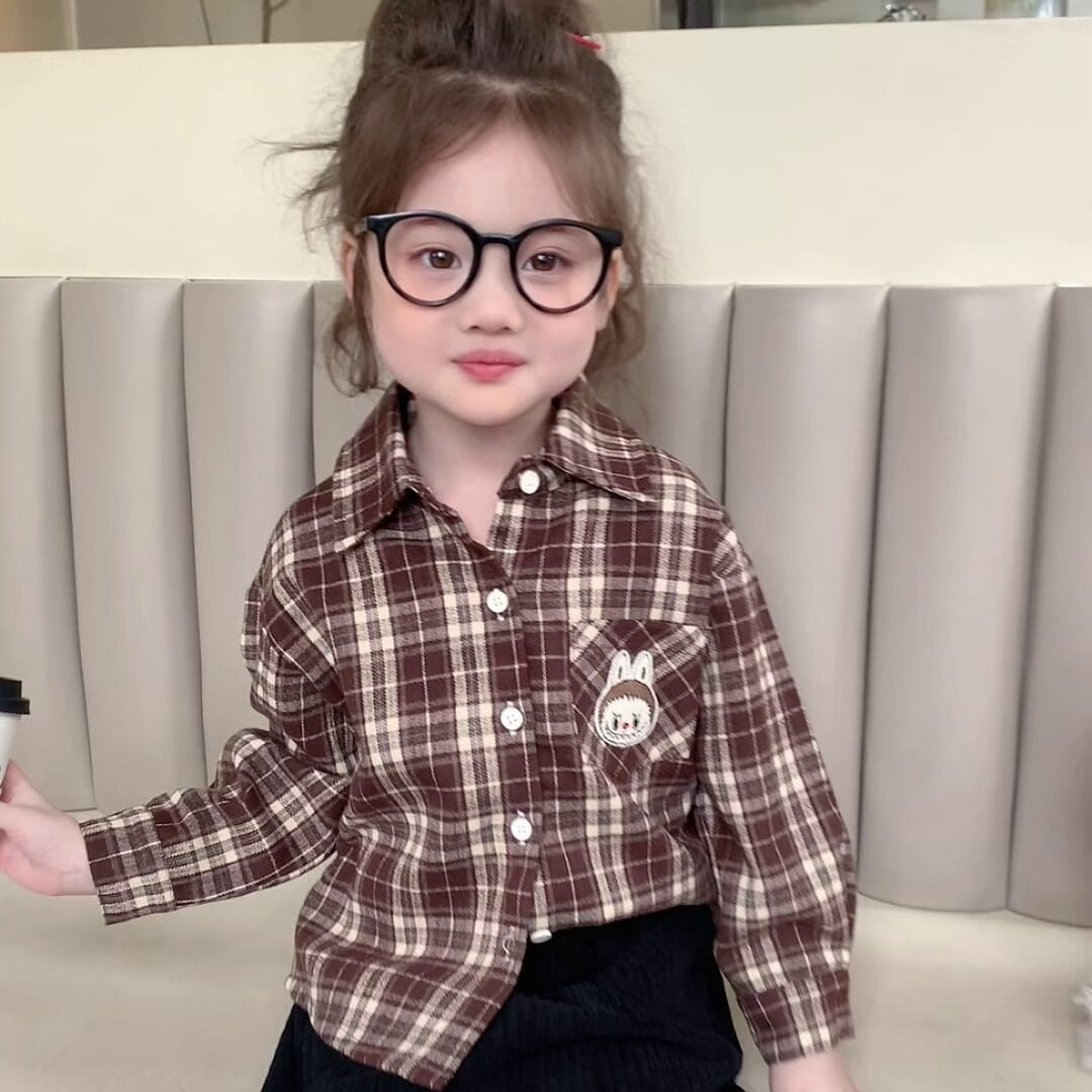 Labubu ラブブ キッズ ソフトチェックシャツ ブラウン系 軽量&肌触り良好 春の新作 カジュアルウェア 90-140cm