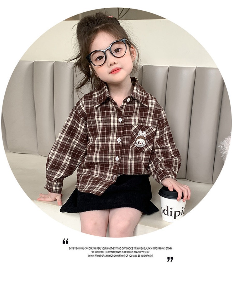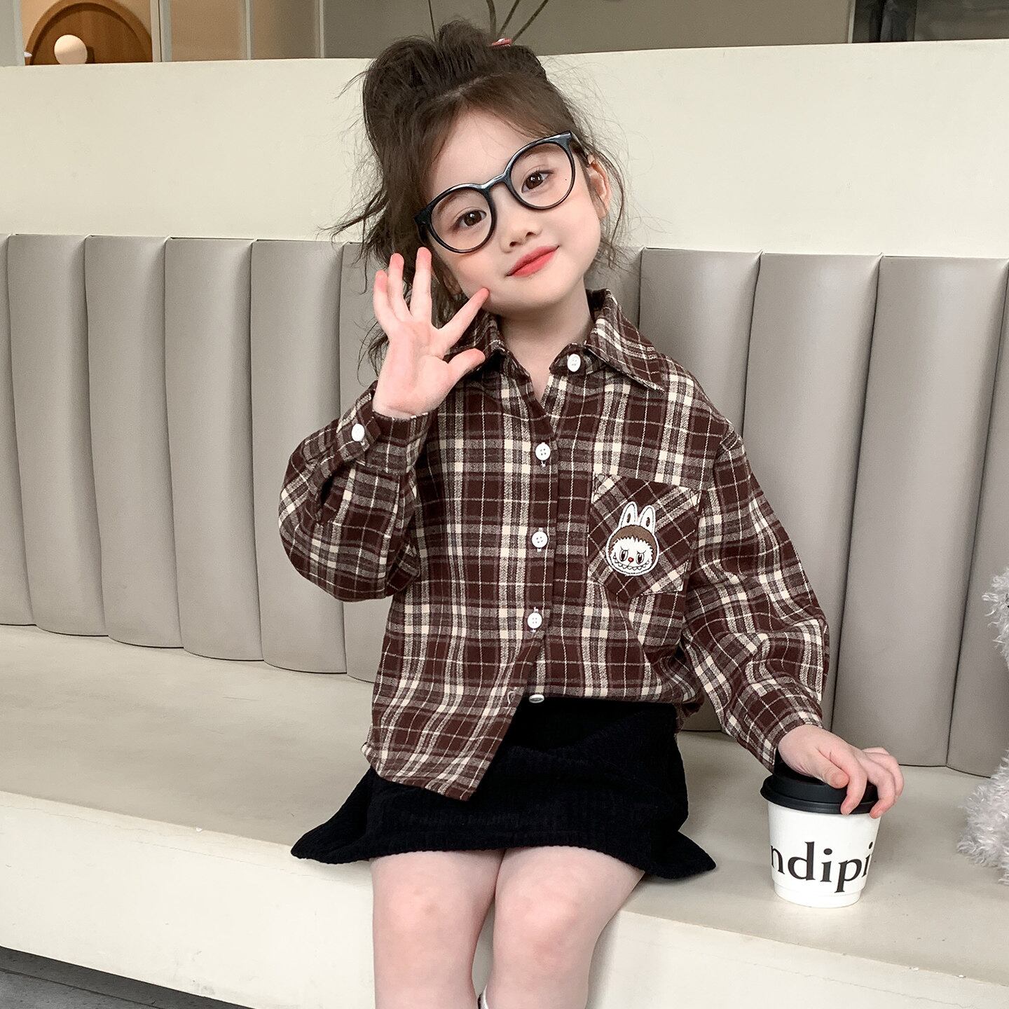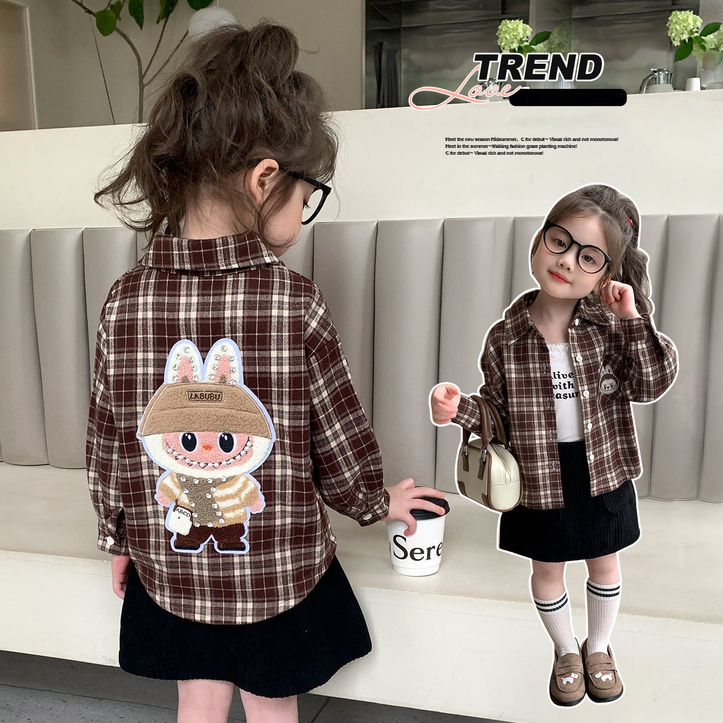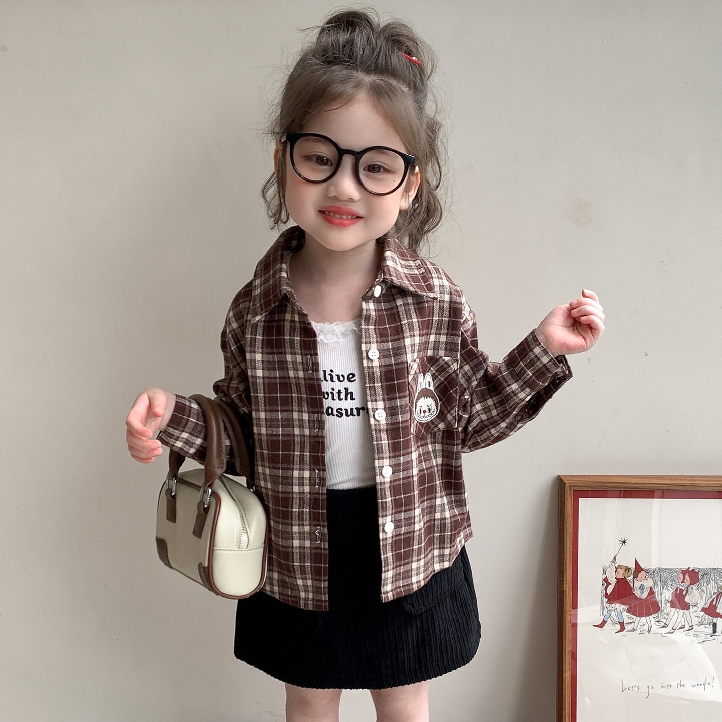Labubu ラブブ キッズ ソフトチェックシャツ ブラウン系 軽量&肌触り良好 春の新作 カジュアルウェア 90-140cm