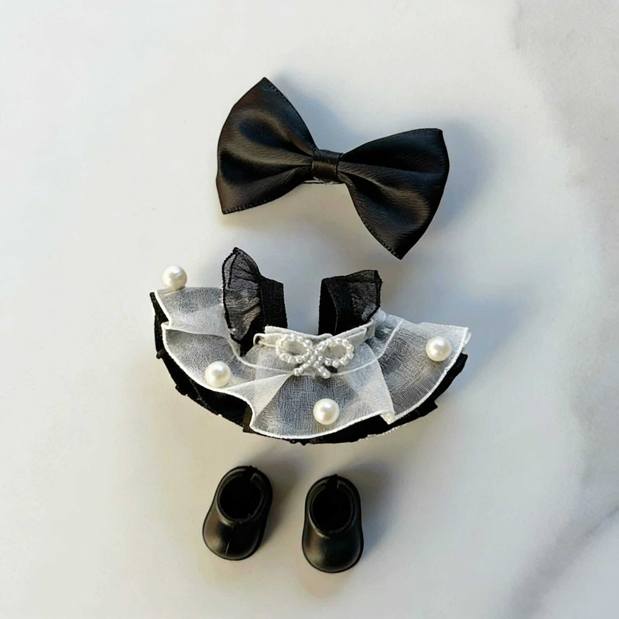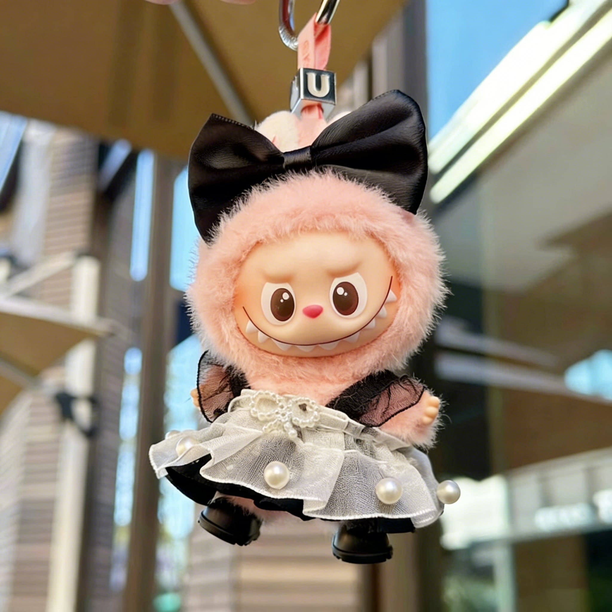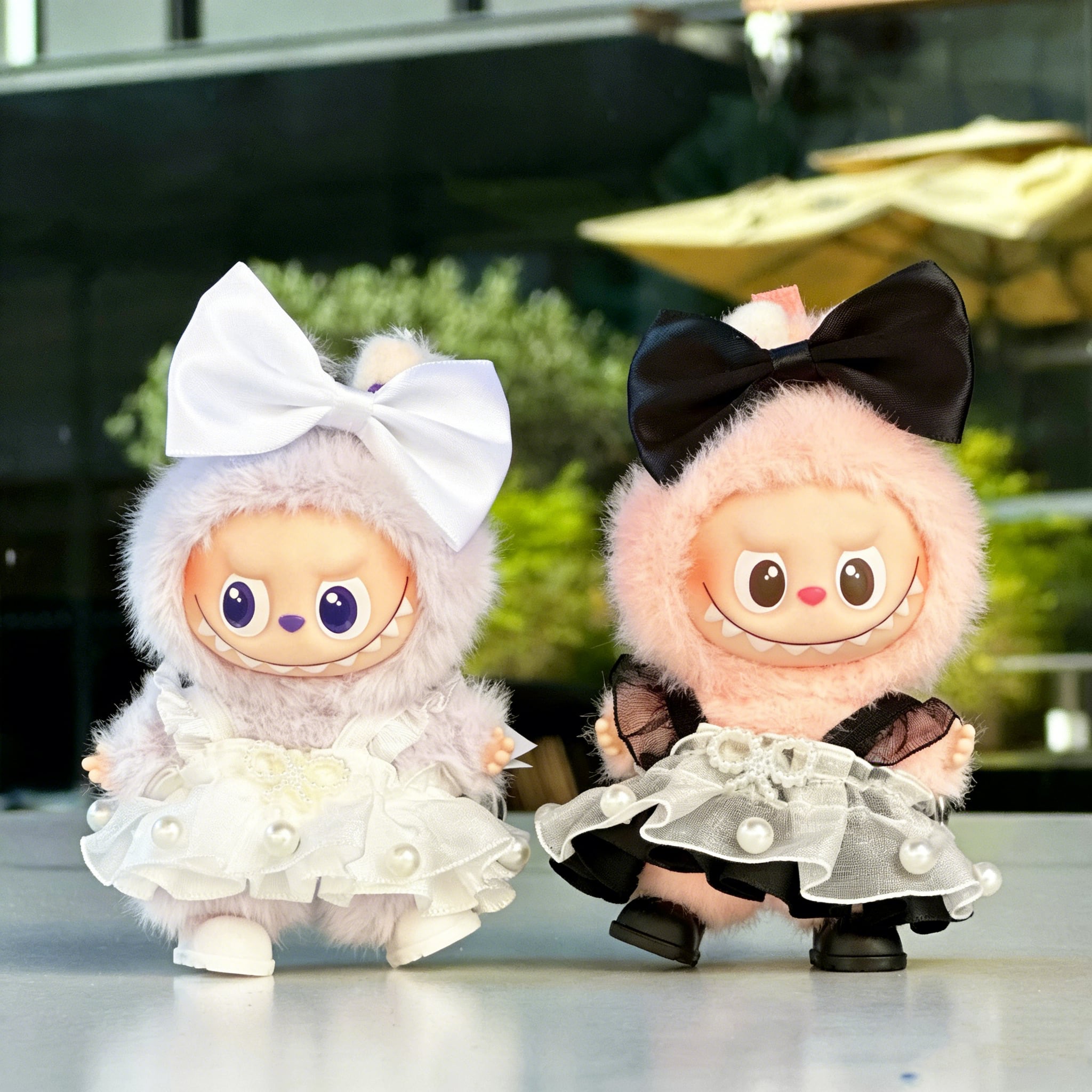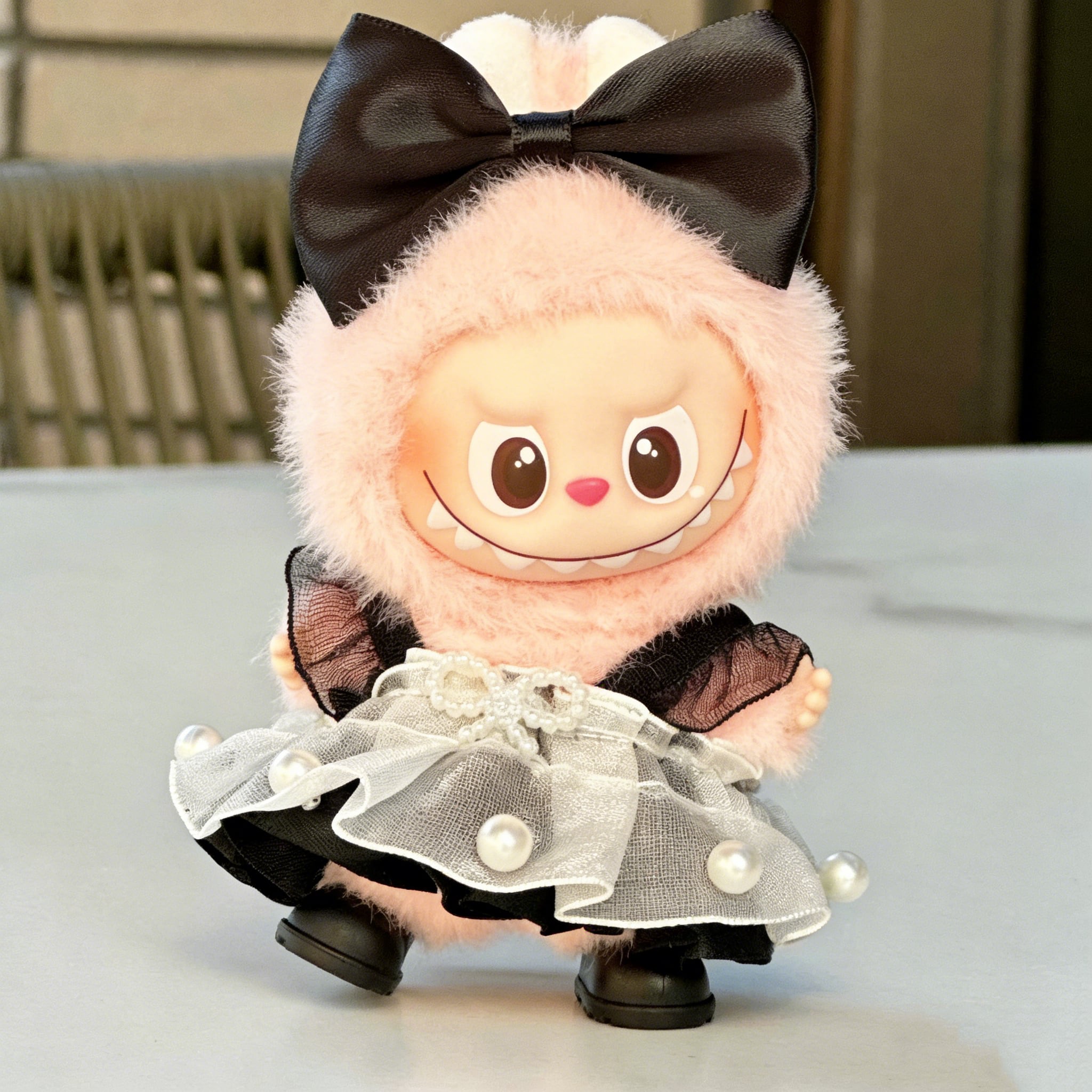 Labubu 甘めコーデ!ラブブ 4.0 10cmサイズ 春の新作!リボンとパールが可愛いチュールスカートセット 靴付き 甘くて可愛いお嬢様風